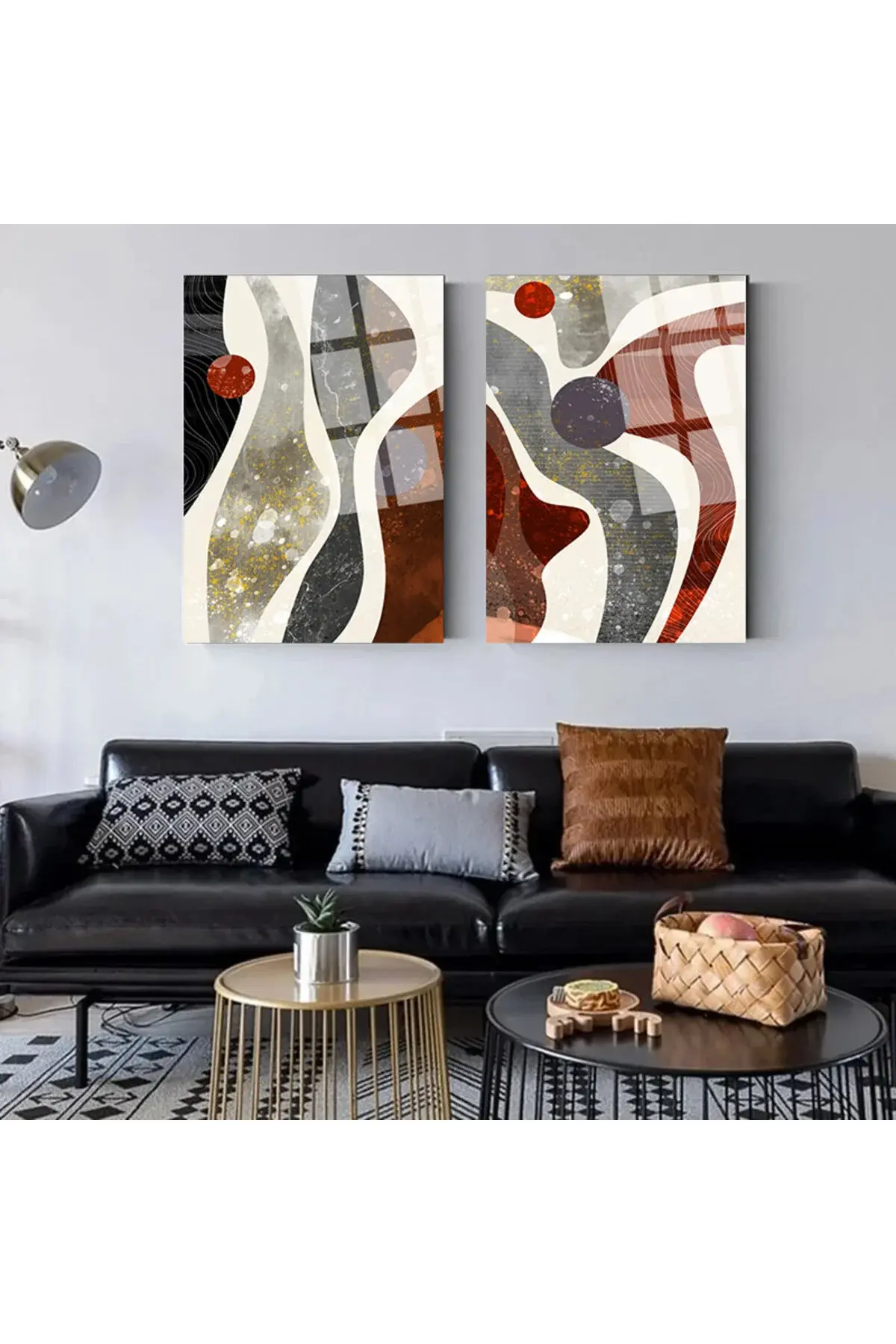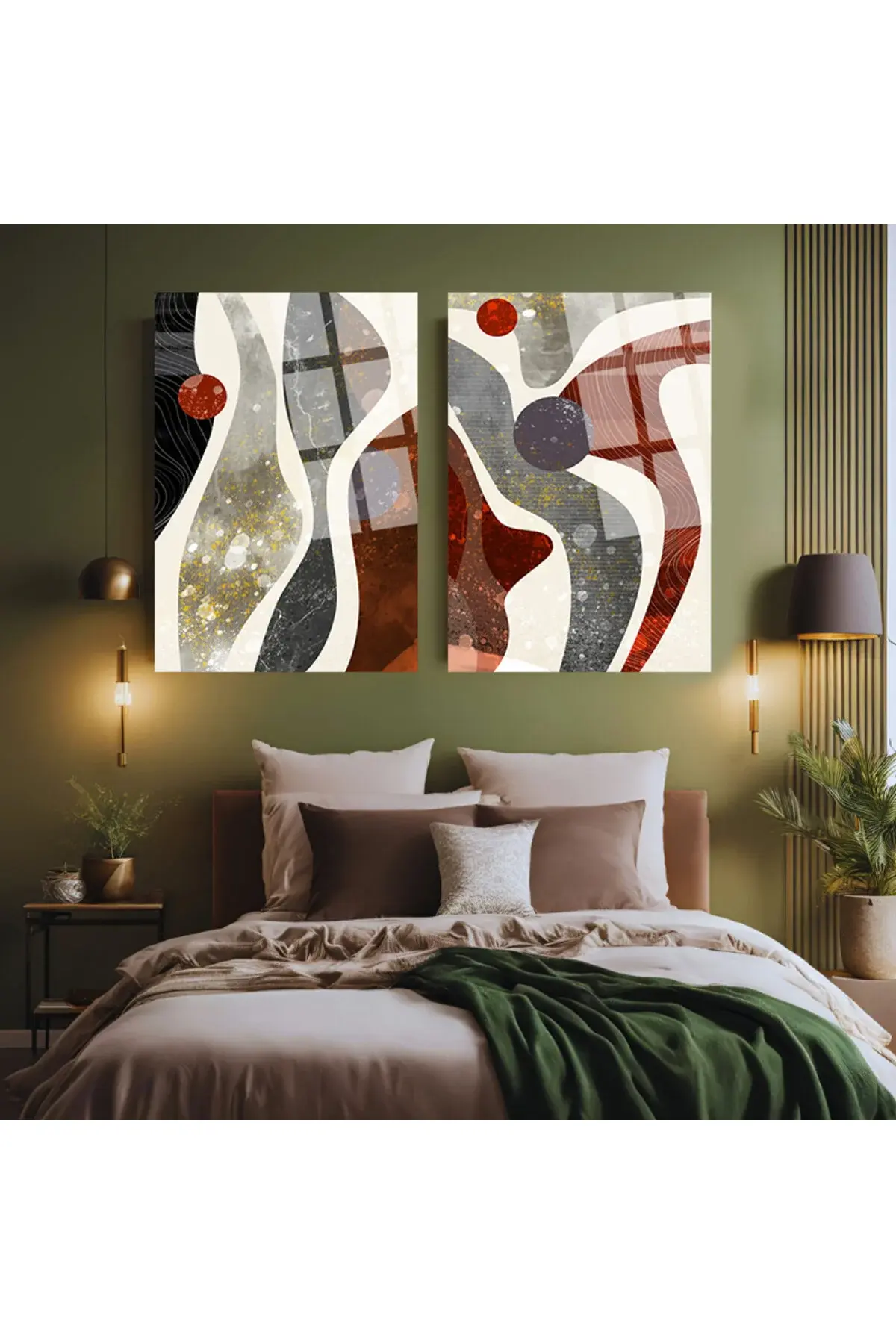 2 Lİ HARİKA RENK UYUMU SOYUT SET CAM TABLO KIRILMAZ CAM TABLO ULTRA CANLI RENKLER Kırmızı