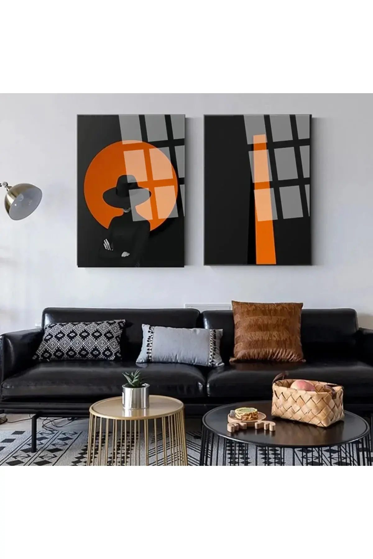 2 Lİ KADIN SOYUT TABLO SET CAM TABLO KIRILMAZ CAM TABLO ULTRA CANLI RENKLER Siyah