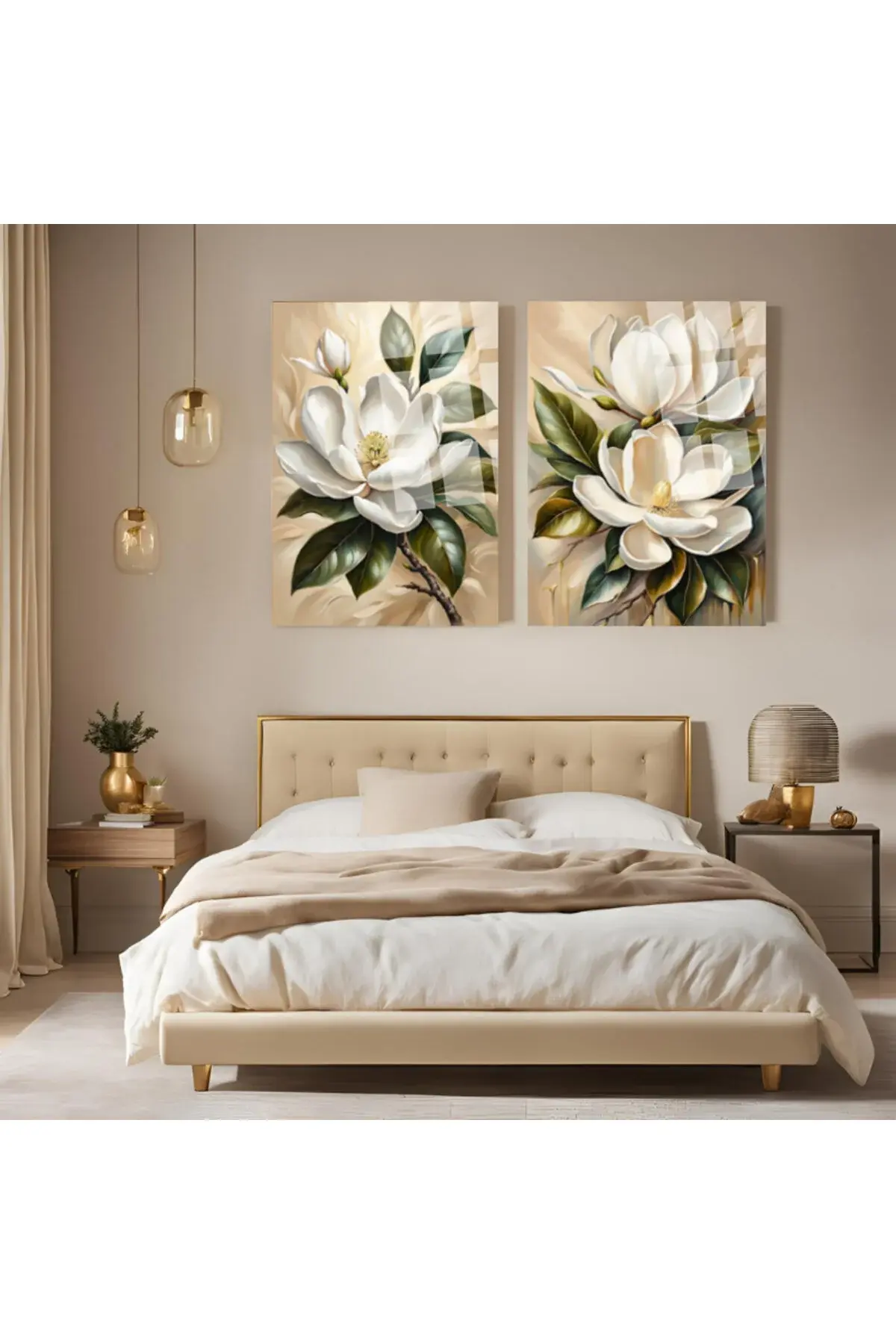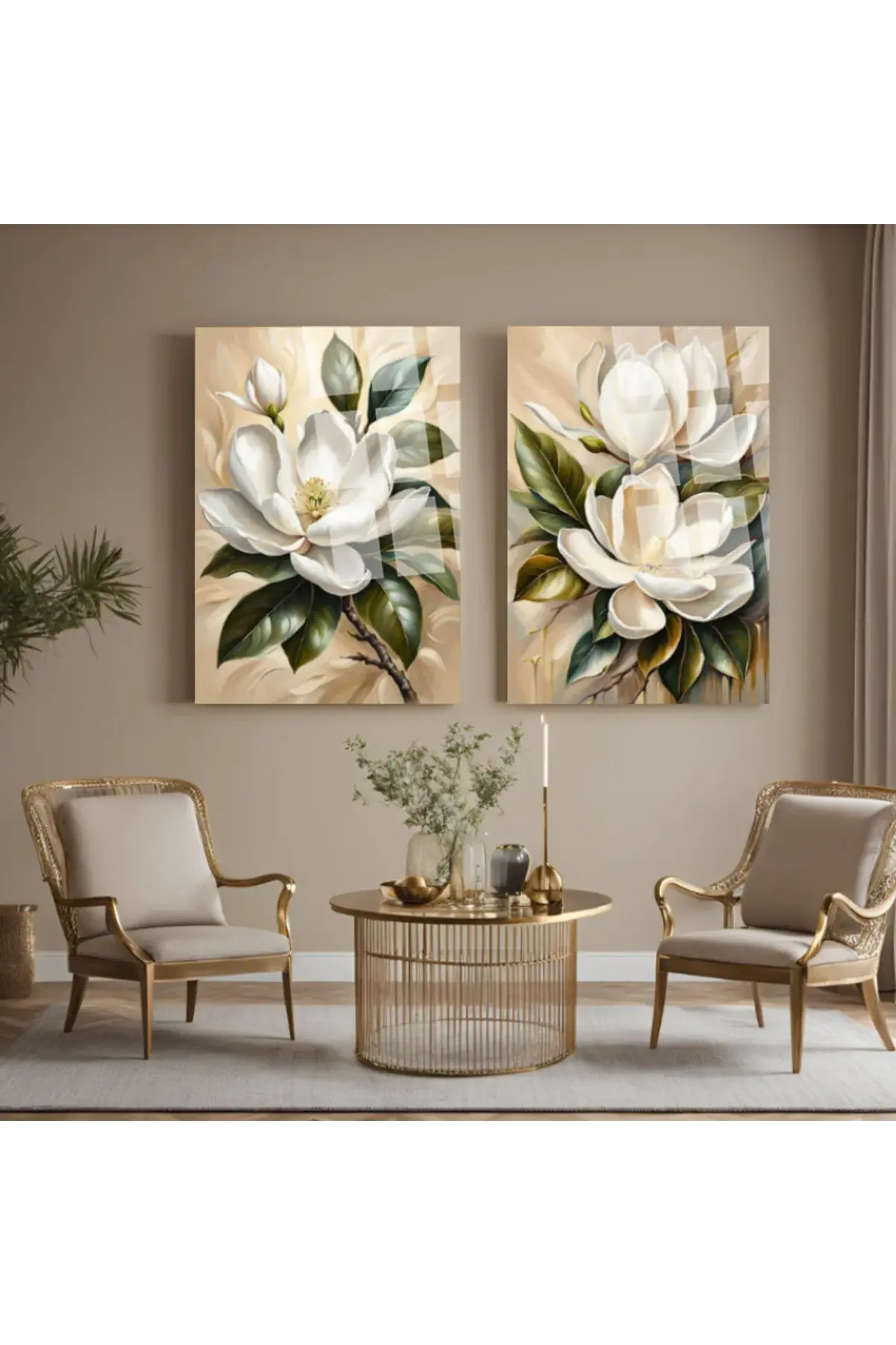 2 Lİ KREM RENK ÇİÇEK TEMALI SET CAM TABLO KIRILMAZ CAM TABLO ULTRA CANLI RENKLER Krem