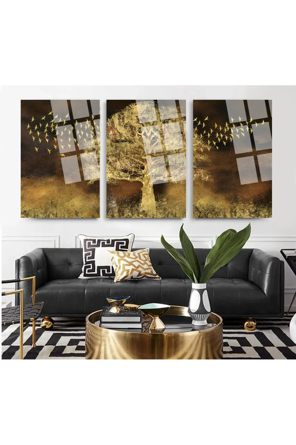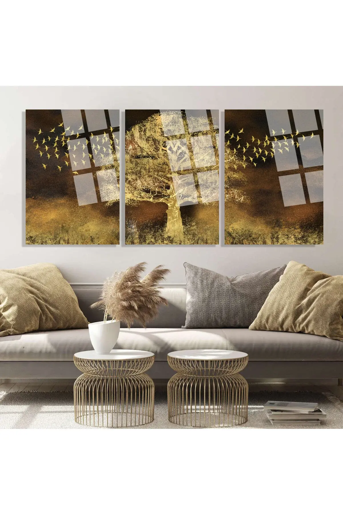 3 LÜ AĞAÇ PARÇALI SET TABLO KIRILMAZ LÜKS CAM TABLO EV HEDİYESİ Kahverengi