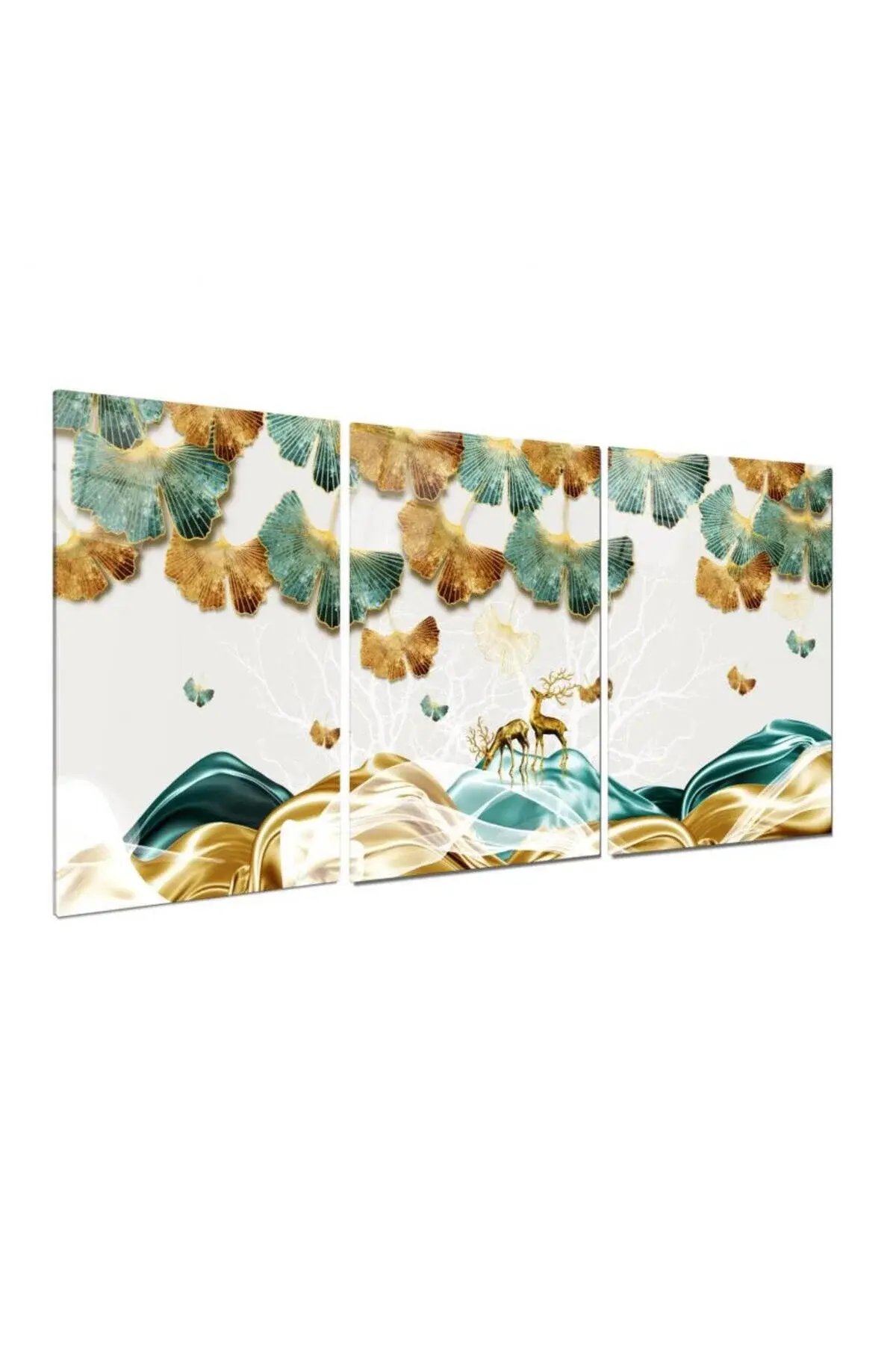 3 LÜ DOĞA MODERN TASARIM KIRILMAZ CAM TABLO LÜKS TABLO EV HEDİYESİ Beyaz