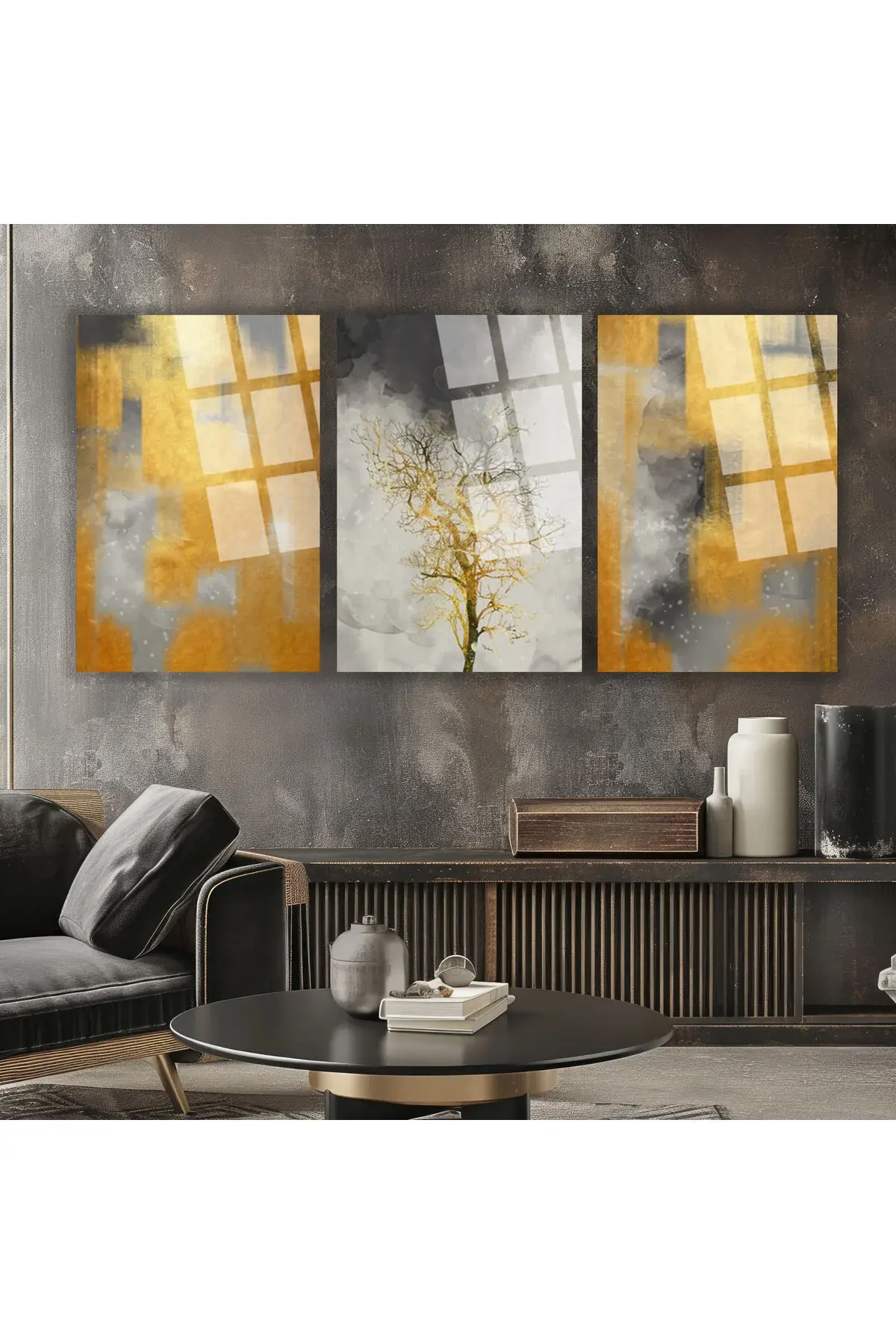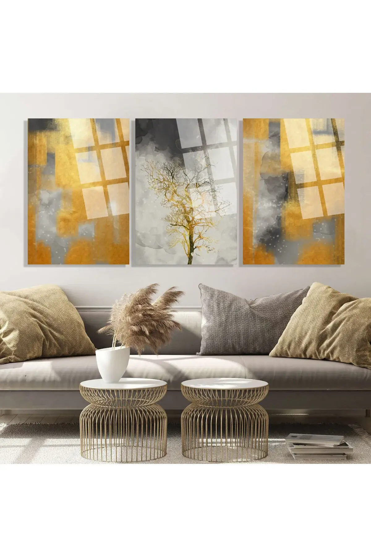 3 LÜ HARİKA RENK UYUMU BOHEM ODASI TABLOSU KIRILMAZ CAM TABLO LÜKS TABLO EV HEDİYESİ Turuncu