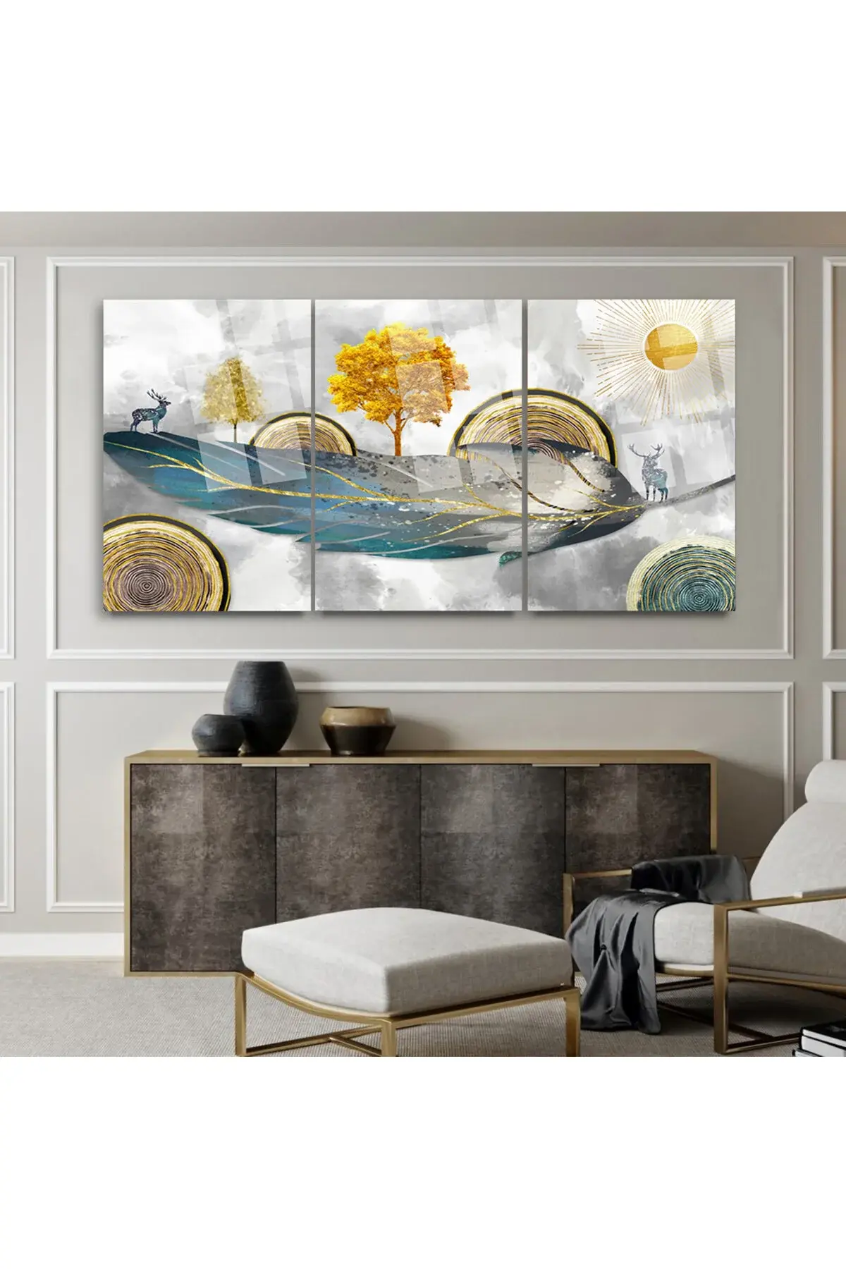 3 LÜ HARİKA UYUM MANZARA VE MODERN TABLO PARÇALI SET TABLO KIRILMAZ LÜKS CAM TABLO EV HEDİYESİ Bej