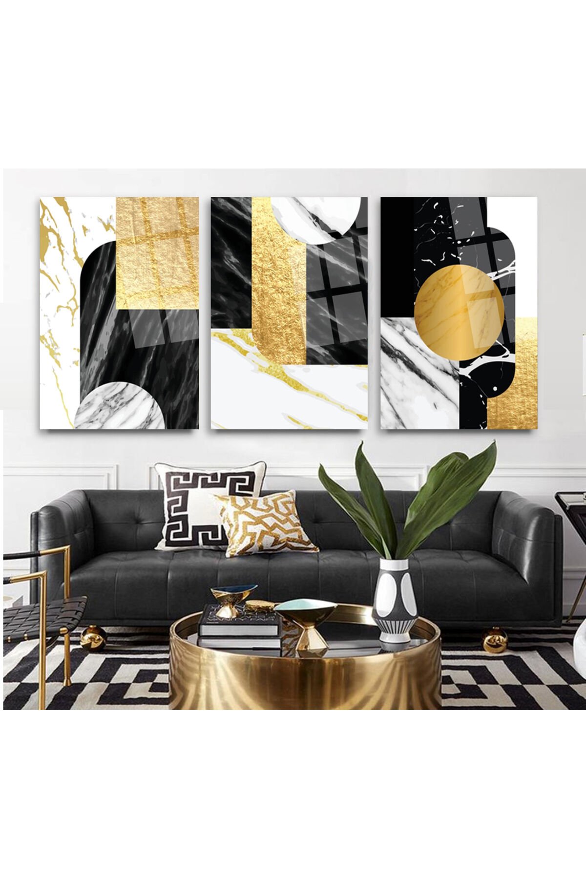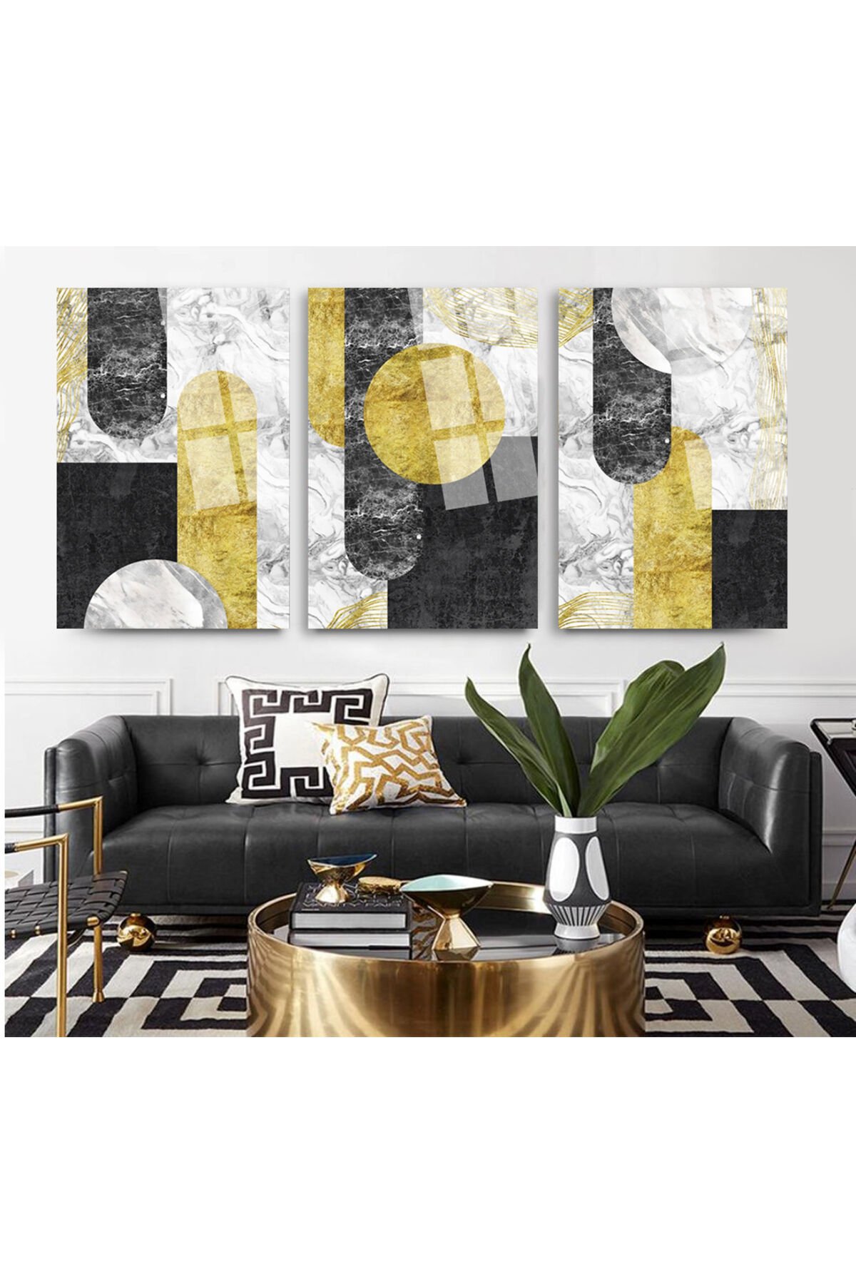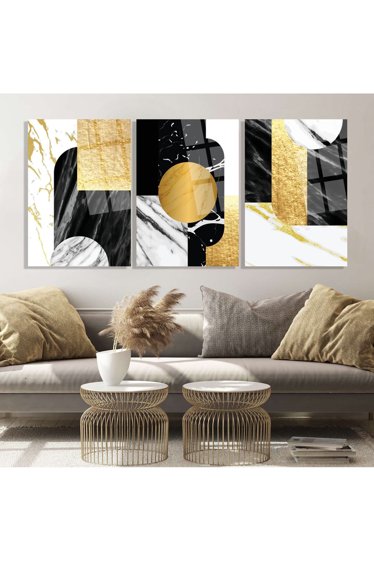 3 LÜ MERMER GEOMETRİK TASARIMLI HARİKA CAM TABLO SETİ SALON TABLOSU EV HEDİYESİ KIRILMAZ CAM Gri