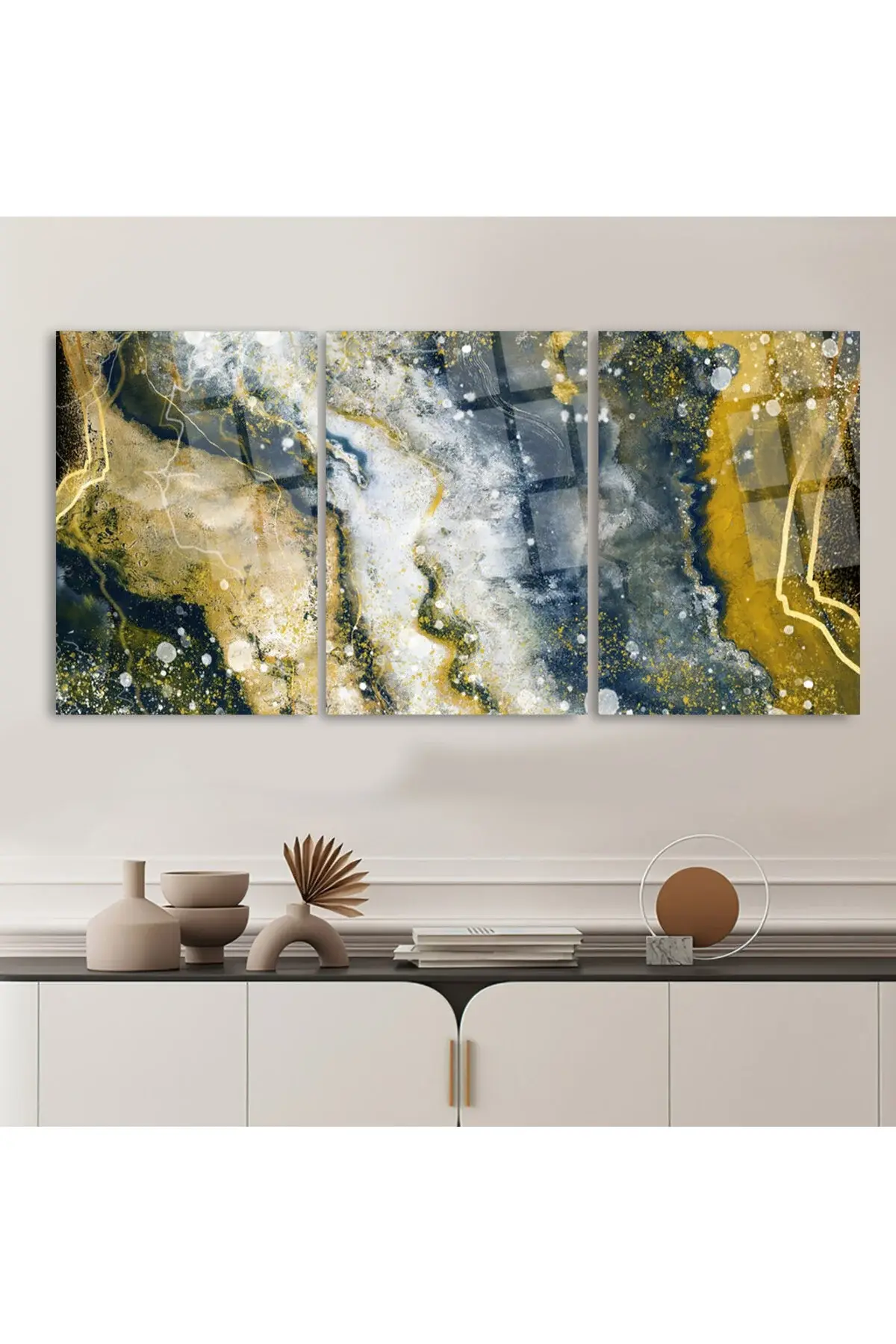 3 LÜ PARILDAYAN ALTIN SAÇAN MERMER TABLOSU PARÇALI SET TABLO KIRILMAZ LÜKS CAM TABLO EV HEDİYESİ Çok Renkli
