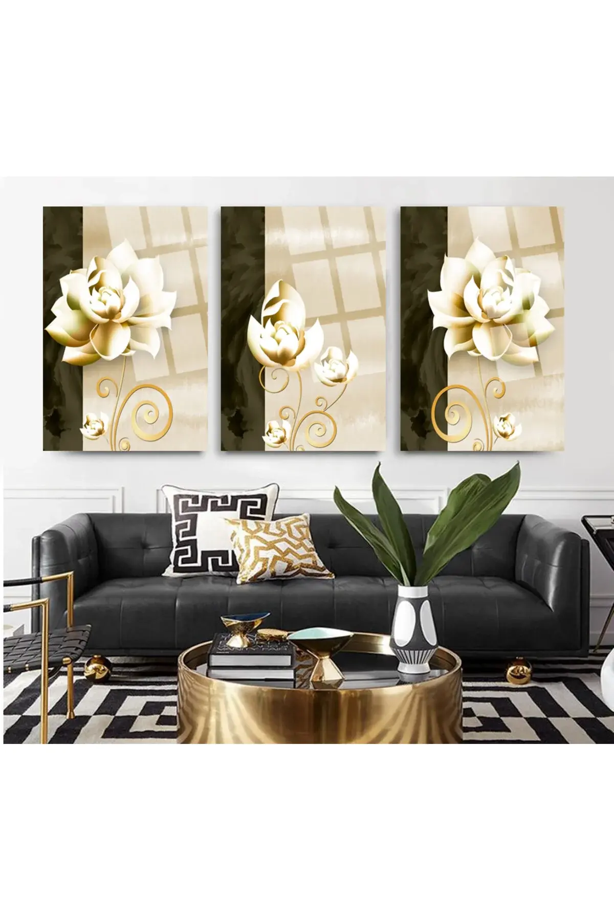 3 LÜ SET TABLO ÇİÇEK HARİKA RENK UYUMU KIRILMAZ LÜKS CAM TABLO EV HEDİYESİ Krem