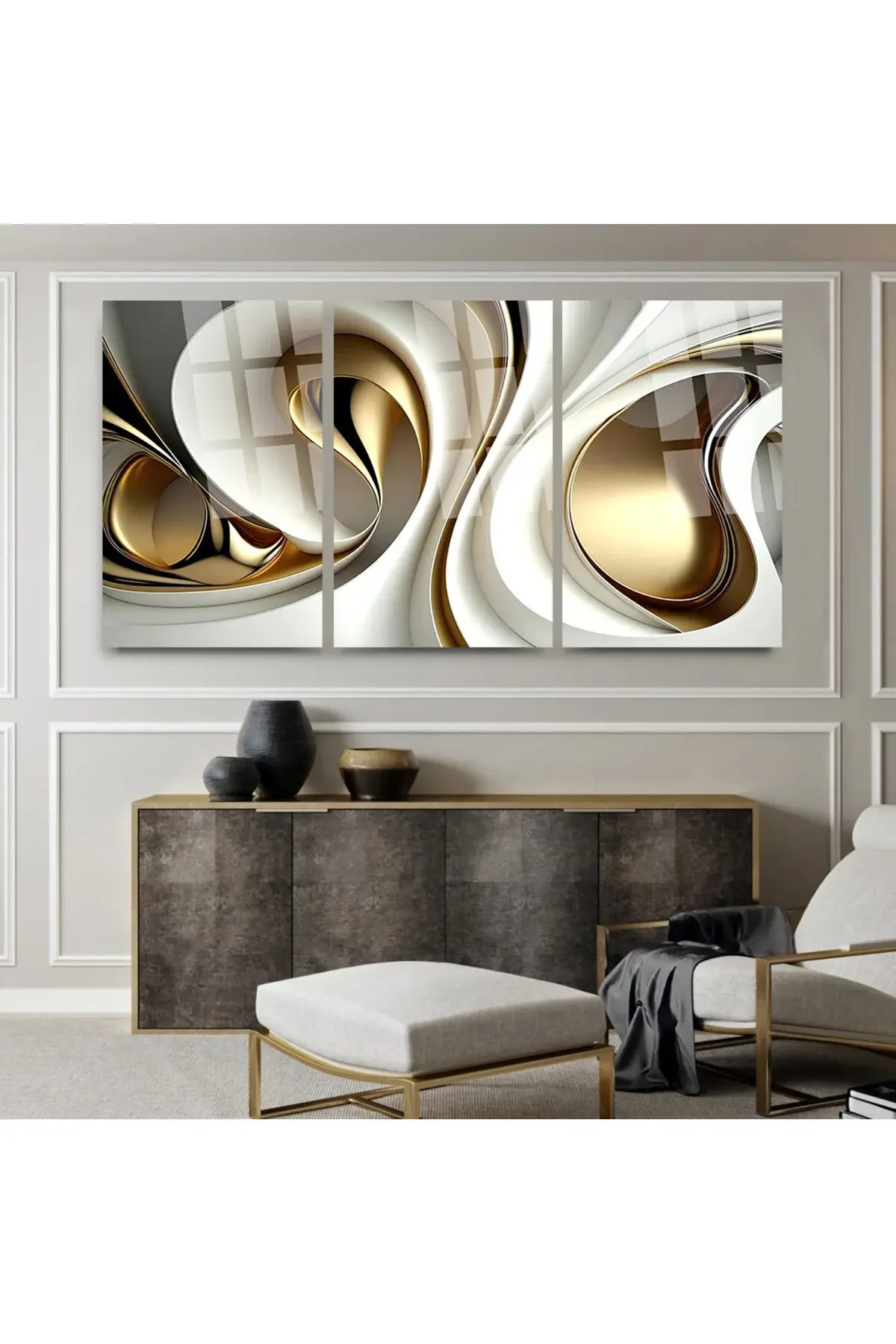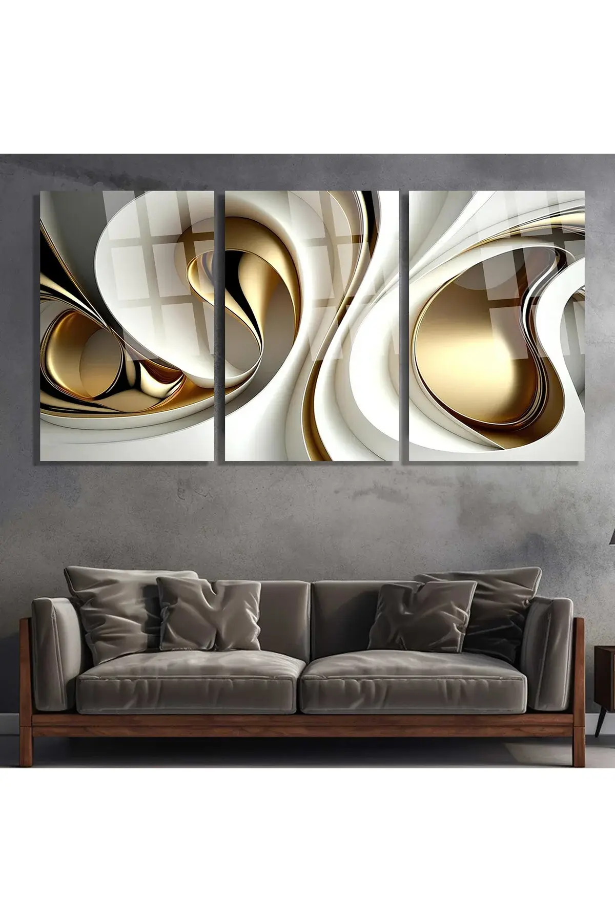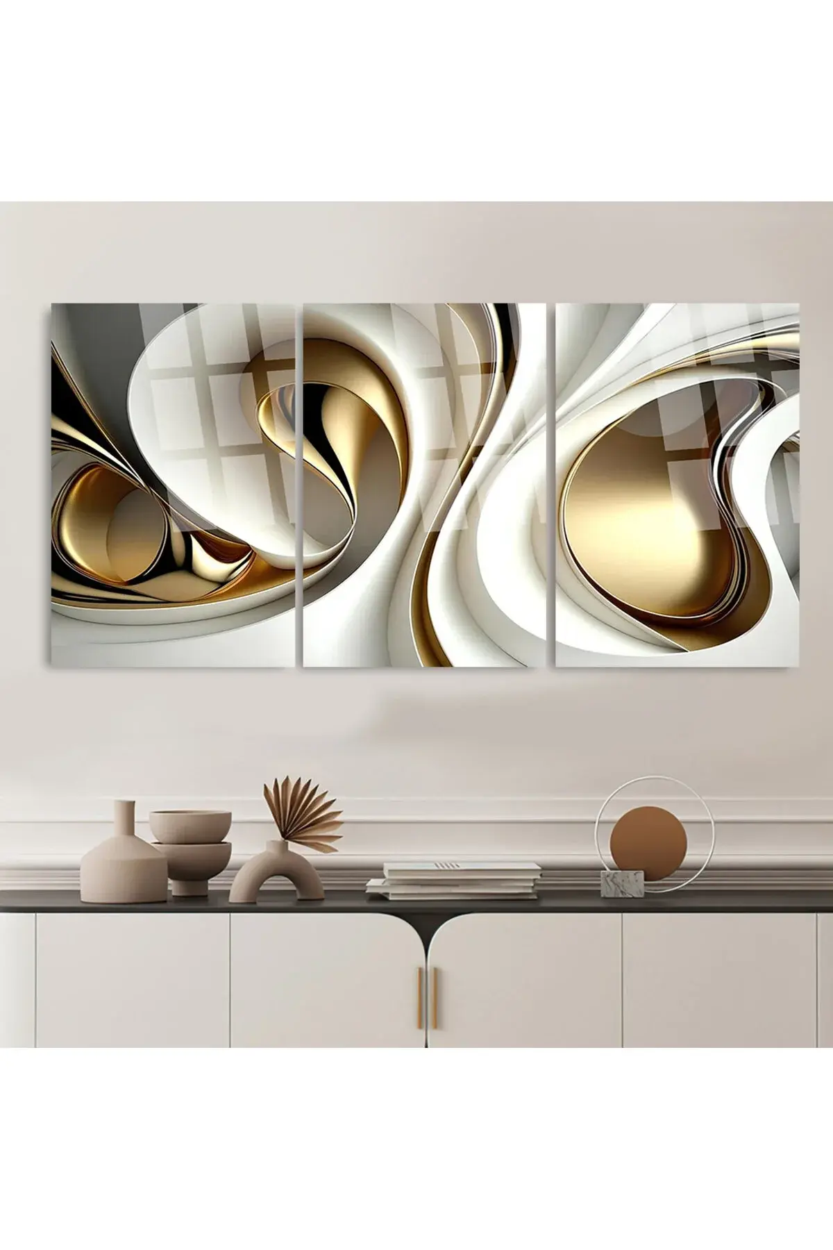 3 LÜ SOYUT GEOMETRİK TASARIM CAM TABLO KIRILMAZ CAM TABLO ULTRA CANLI RENKLER Krem