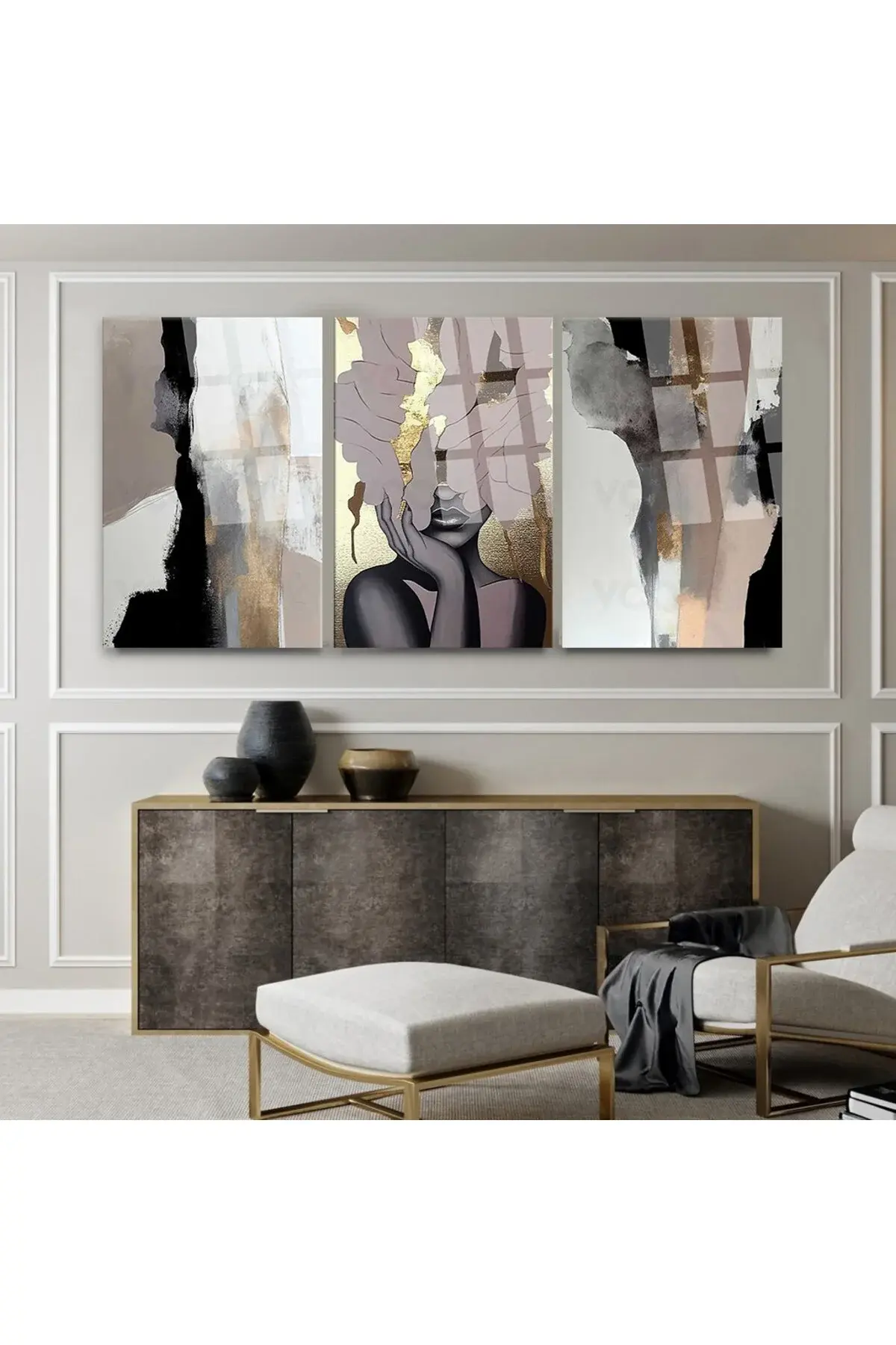 3 LÜ SOYUT MODERN CAM TABLO KIRILMAZ LÜKS EV HEDİYESİ TABLO Krem