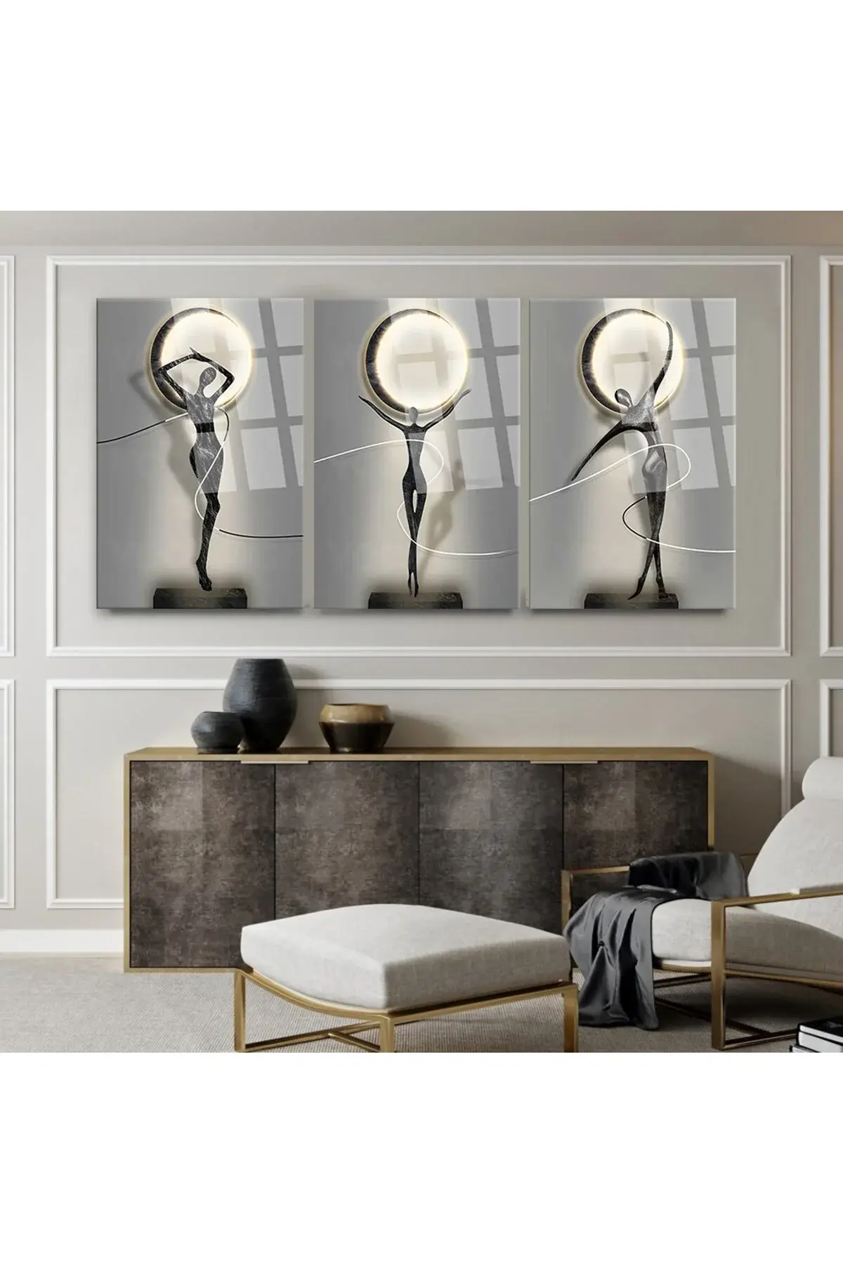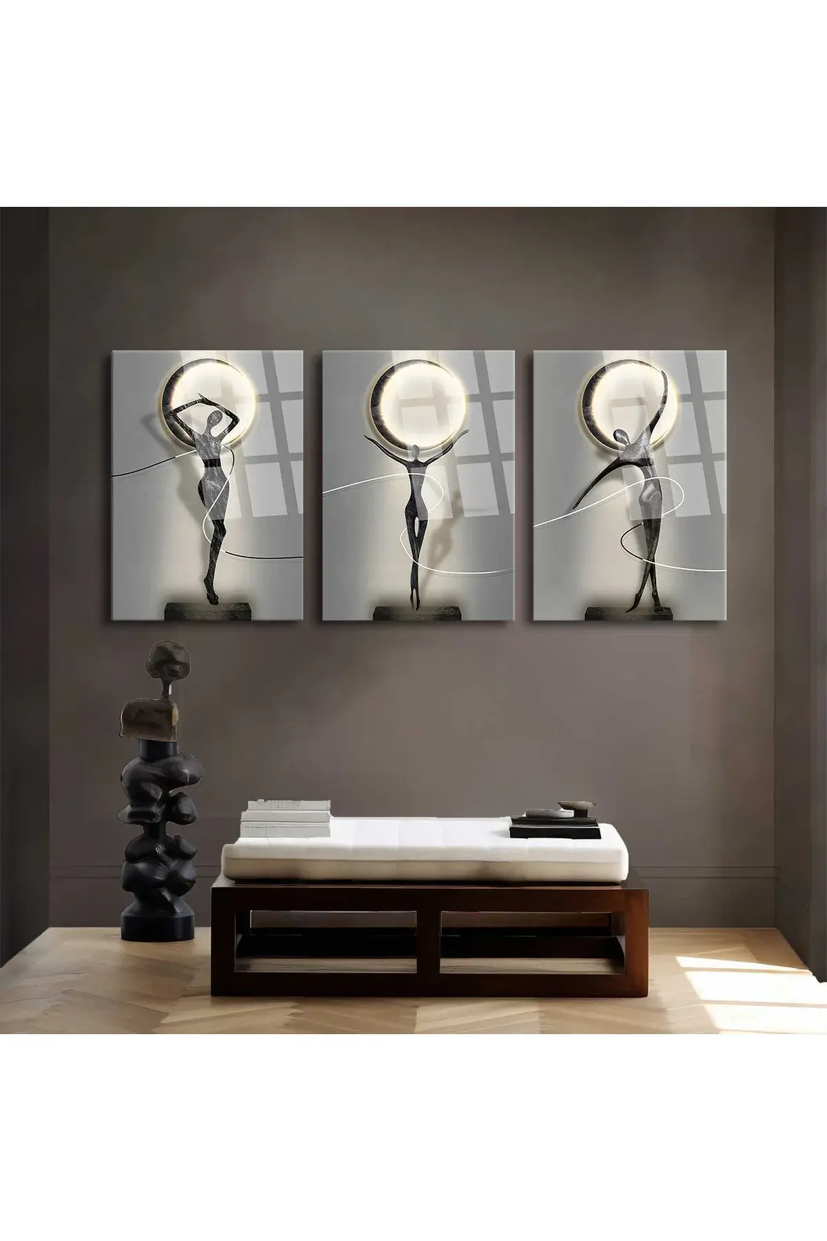 3 LÜ SOYUT MODERN KADIN CAM TABLO KIRILMAZ LÜKS EV HEDİYESİ TABLO Gri