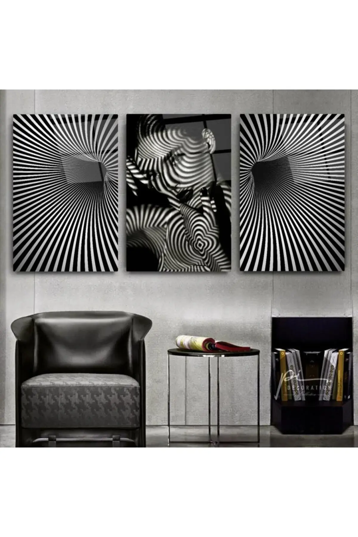 3 LÜ SOYUT SİYAH BEYAZ HARİKA UYUM KIRILMAZ CAM TABLO ULTRA CANLI RENKLİ MODERN EV HEDİYESİ Siyah