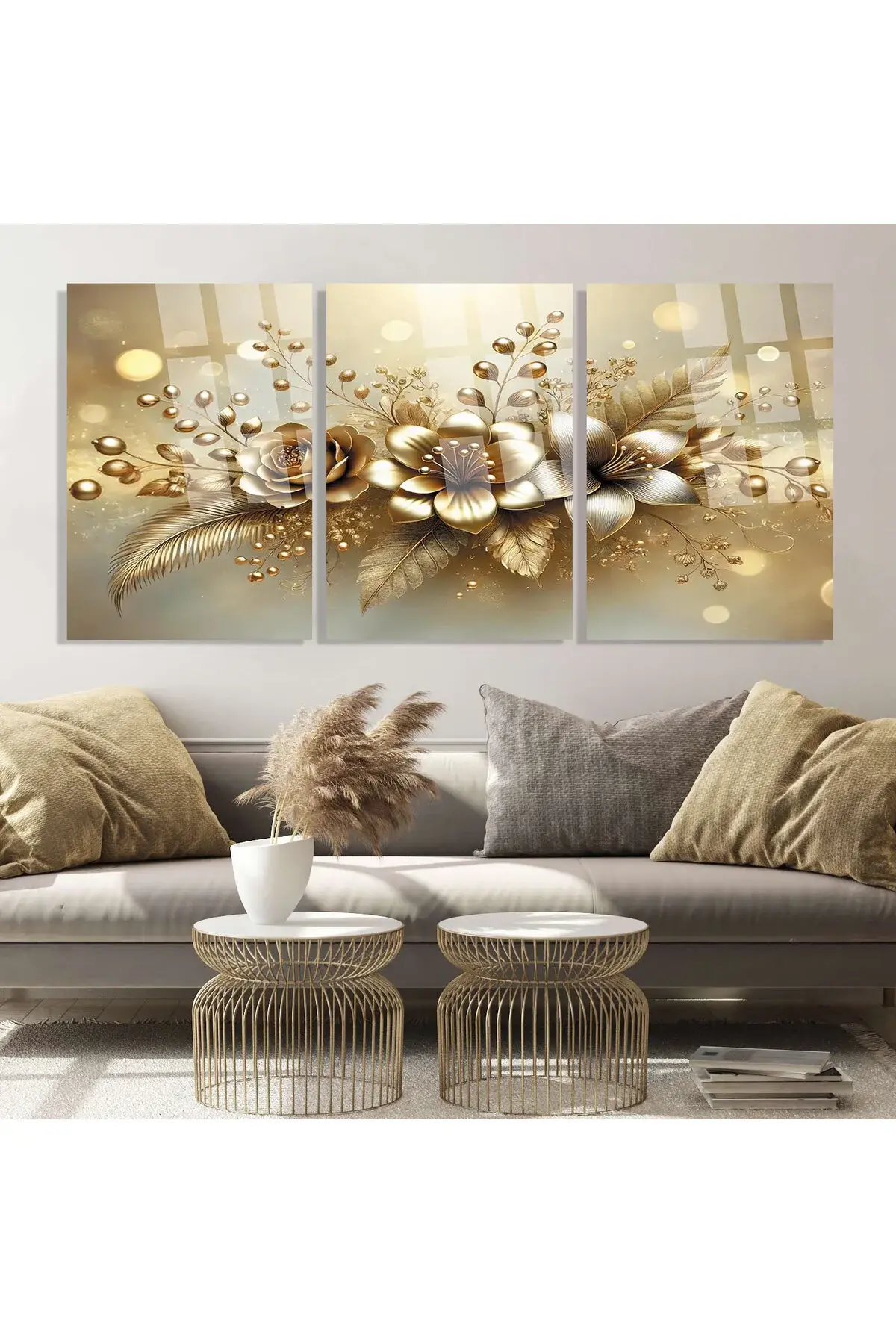 3 LÜ YENİ AÇAN ALTIN ÇİÇEKLER TASARIM CAM TABLO KIRILMAZ CAM TABLO ULTRA CANLI RENKLER Metalik