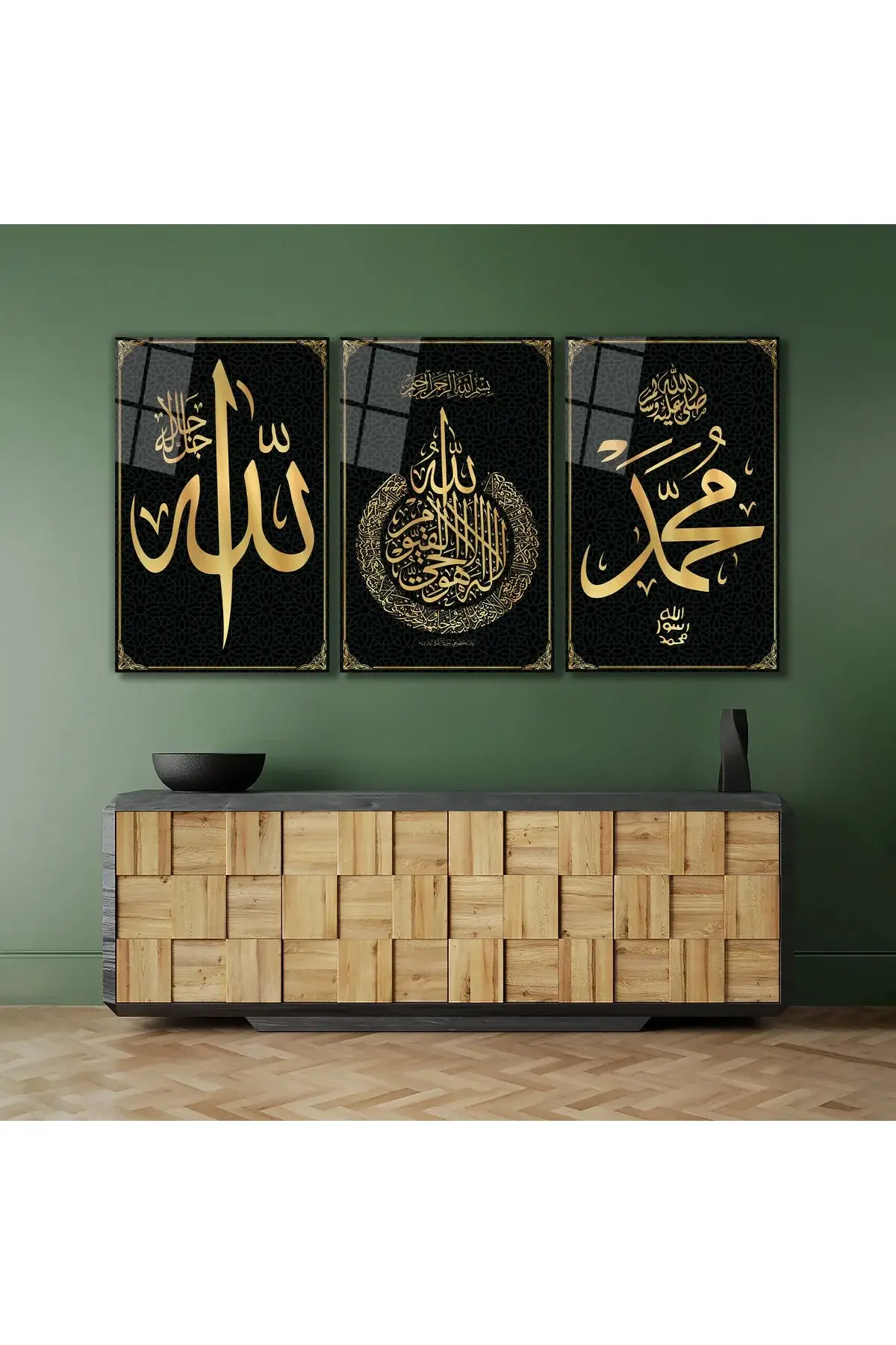 3 PARÇA DİNİ İSLAMİ KIRILMAZ CAM TABLO EV HEDİYESİ İŞ YERİ HEDİYESİ SET CAM TABLO