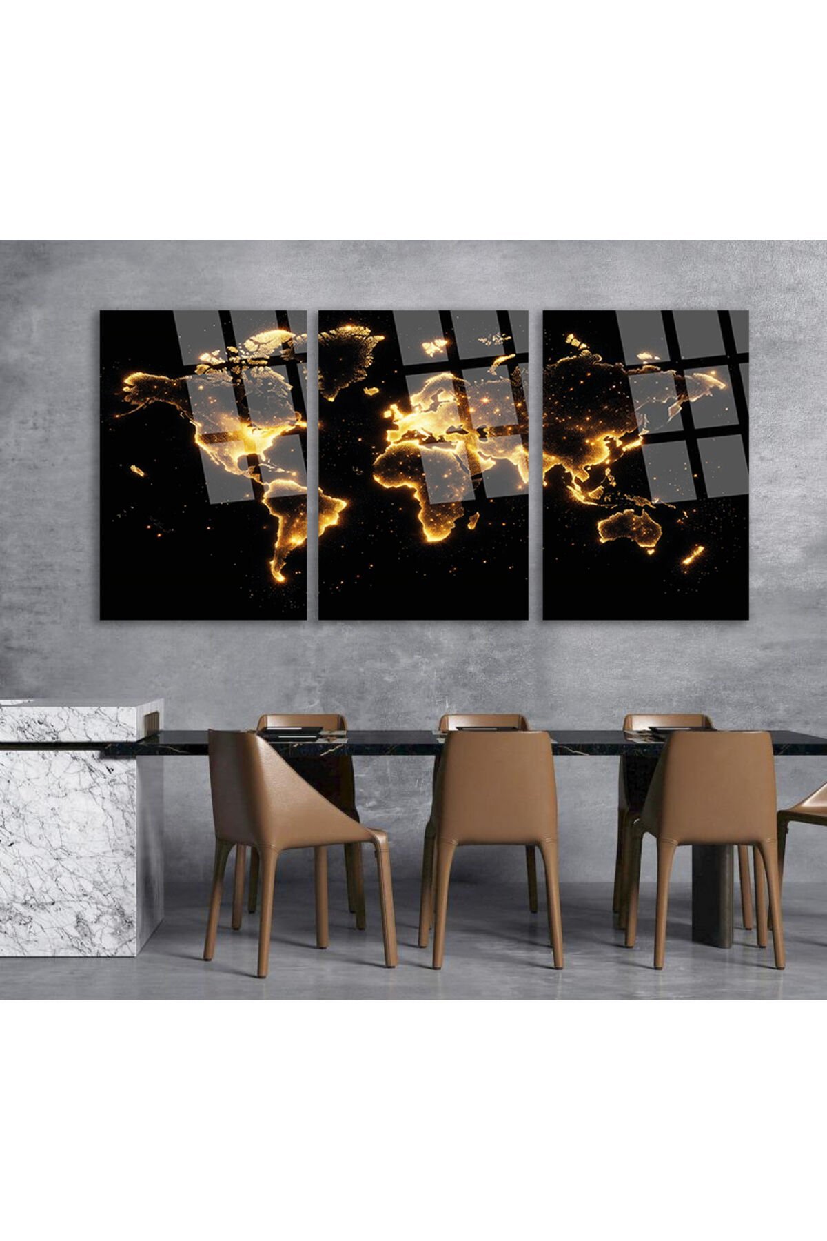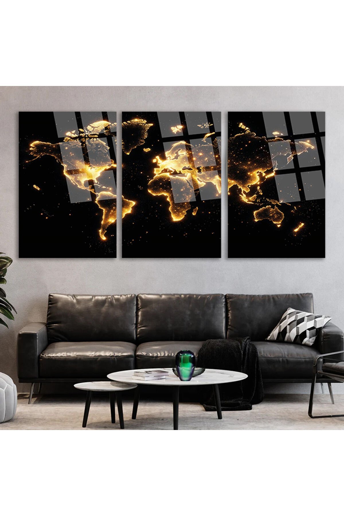 3 PARÇA IŞILDAYAN DÜNYA HARİTASI SET TABLO KIRILMAZ CAM TABLO EV HEDİYESİ İŞ YERİ HEDİYESİ