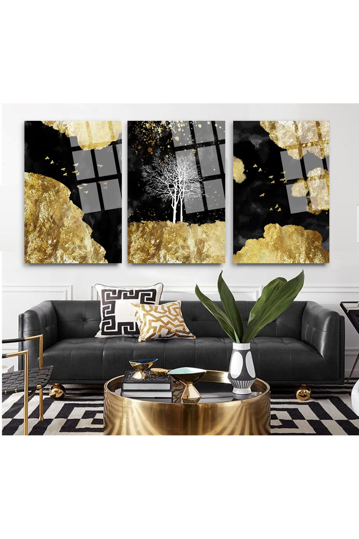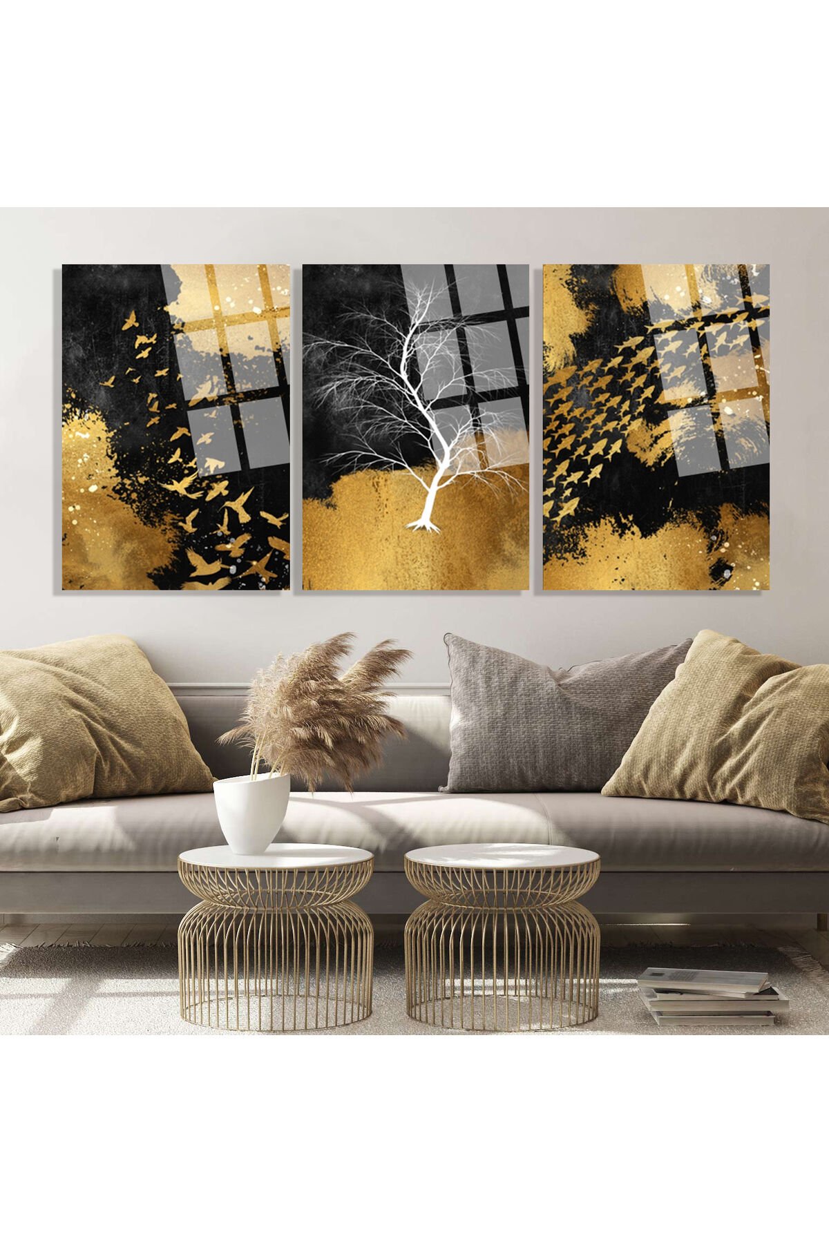 3 PARÇA TAKIM SET HALİNDE BEYAZ AĞAÇ TEMALI KIRILMAZ CAM TABLO EV HEDİYESİ