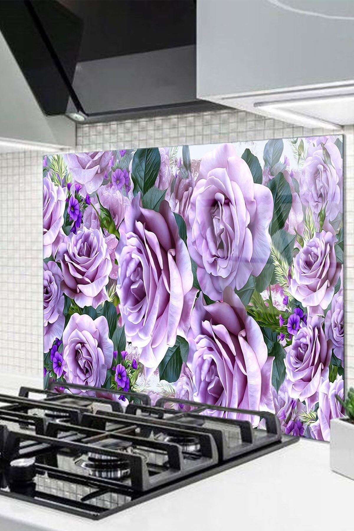 50x50 Cm Cam Ocak Arkası Koruyucu Tezgah Ankastre Arkası Koruyucu | Çiçek