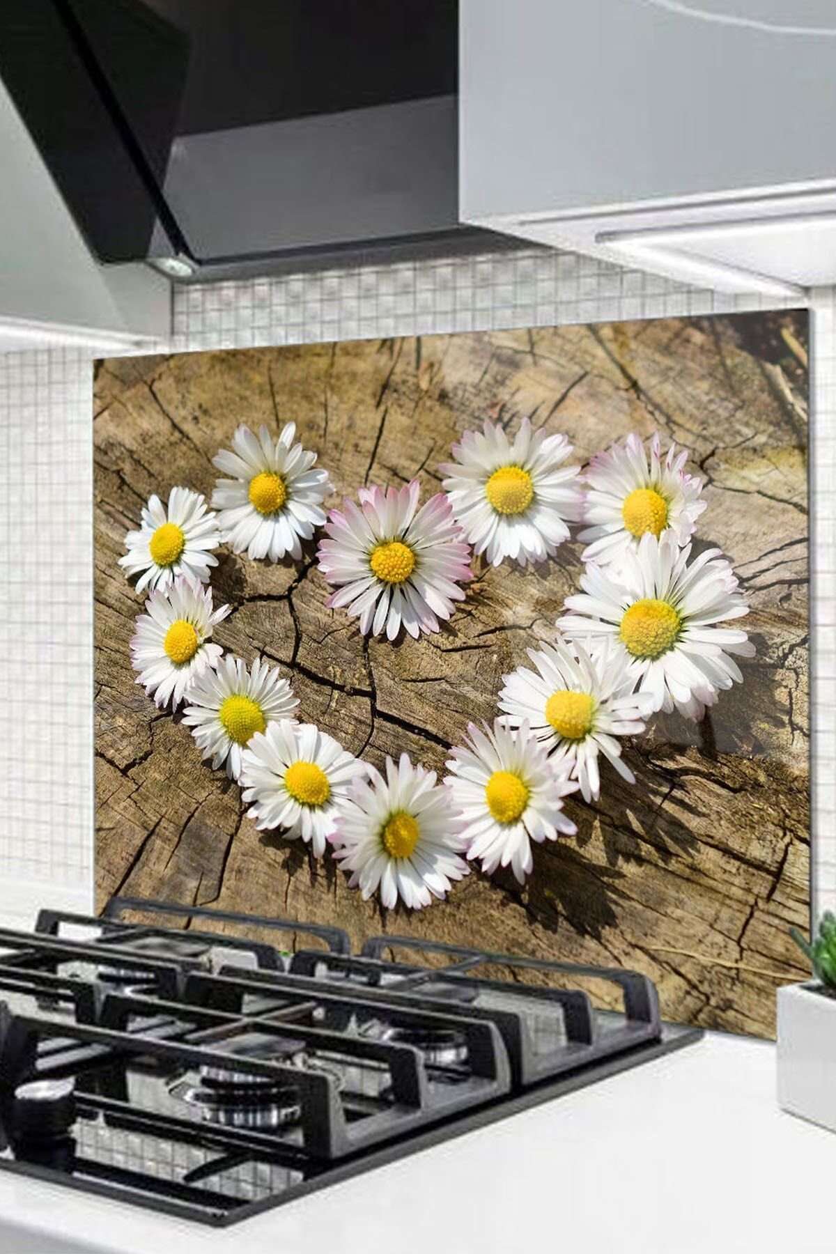 60x52 Cm Cam Ocak Arkası Koruyucu Tezgah Ankastre Arkası Koruyucu | Kalp