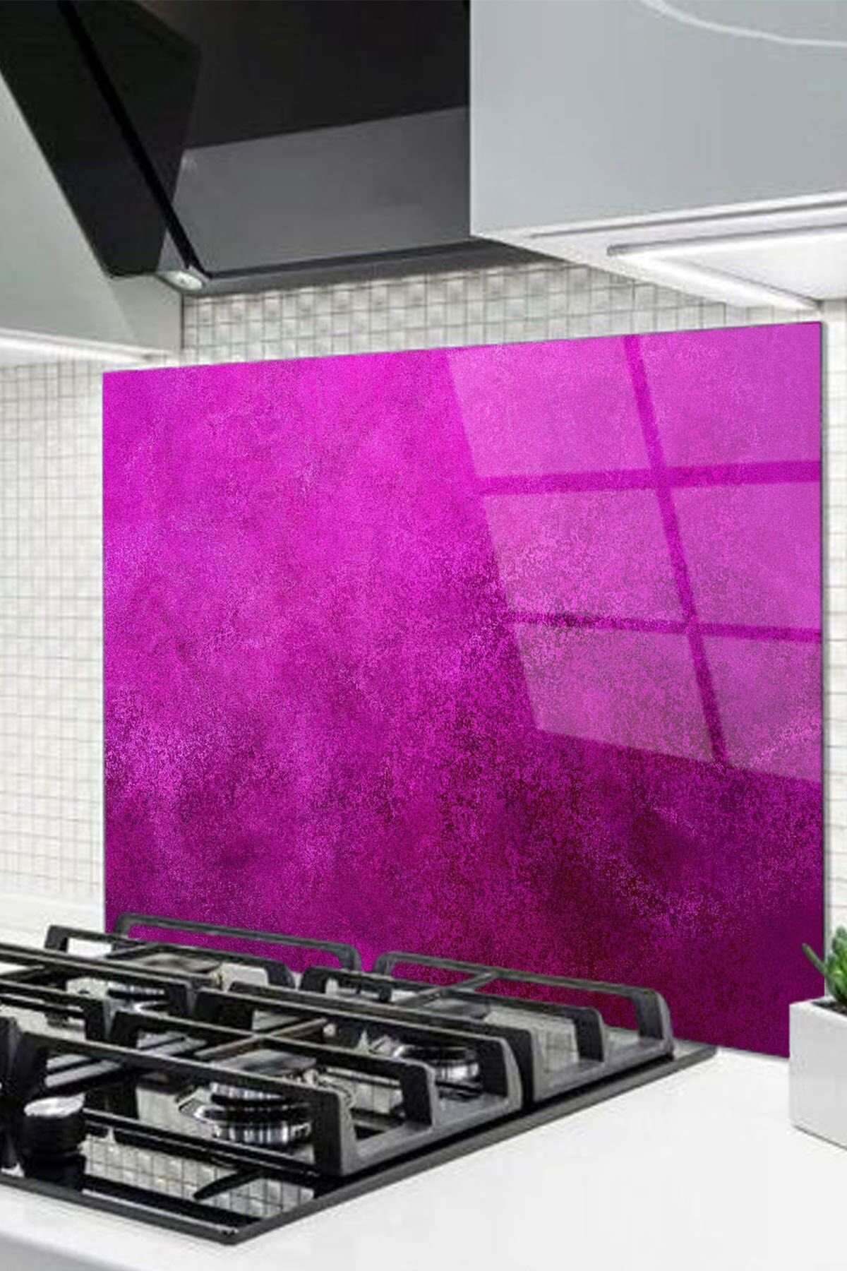 76x49,5 Cm Cam Ocak Arkası Koruyucu Tezgah Ankastre Arkası Koruyucu Fuşya