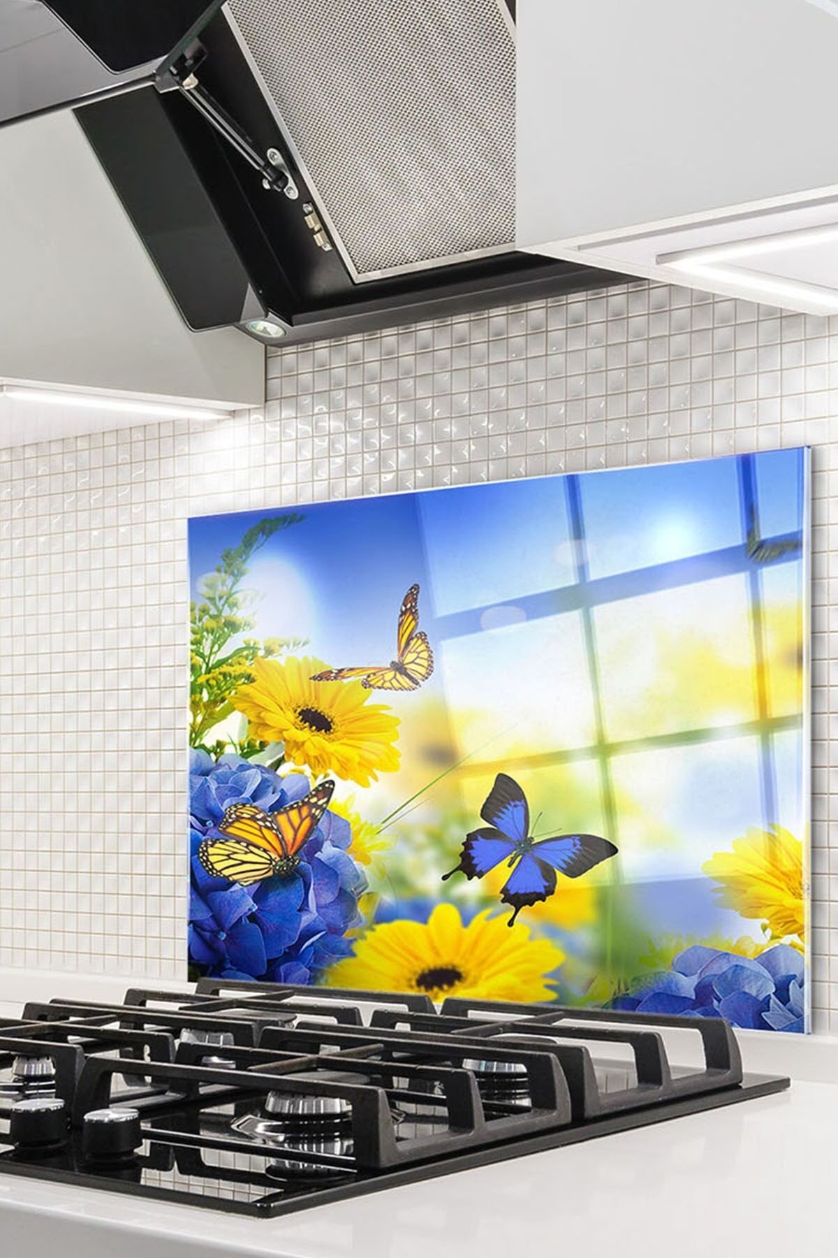 76x49,5 Cm Cam Ocak Arkası Koruyucu Tezgah Ankastre Arkası Koruyucu Kelebek