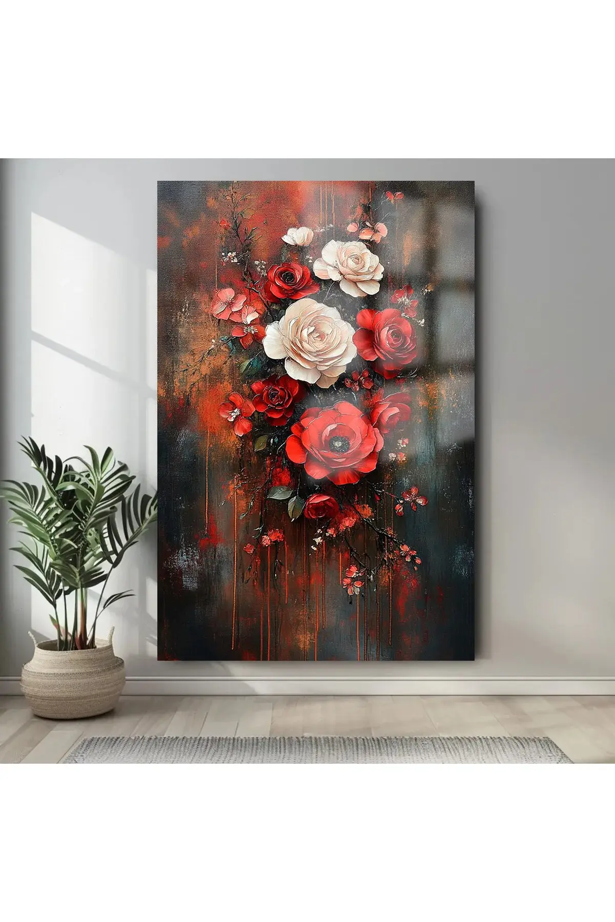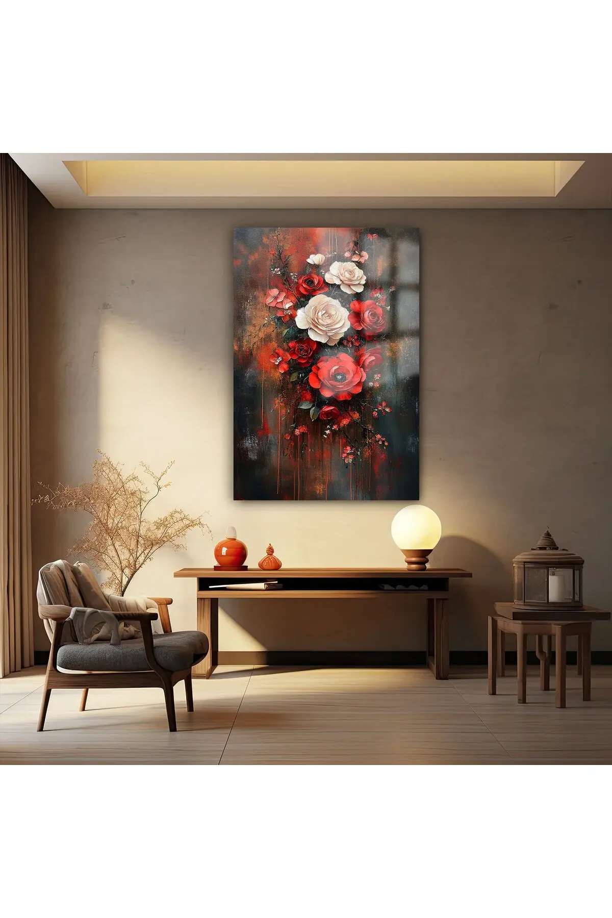 AÇAN ÇİÇEK CAM TABLO ULTRA CANLI RENKLİ KIRILMAZ CAM TABLO EV HEDİYESİ OFİS HEDİYESİ