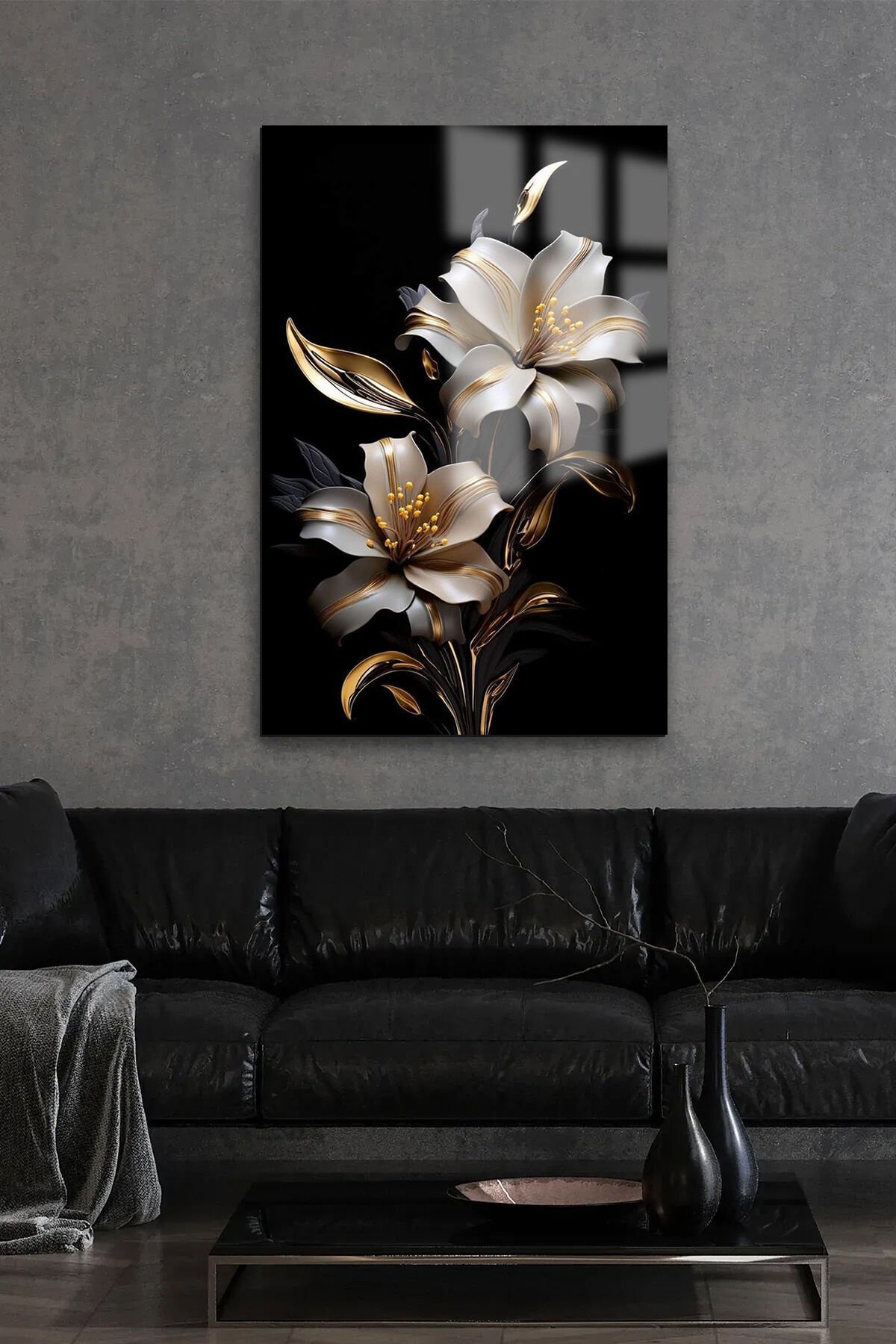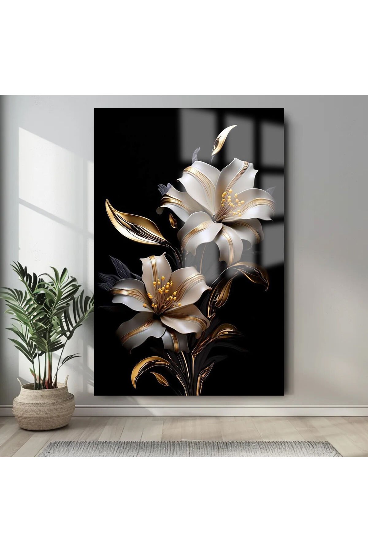 AÇAN IŞIK SAÇAN ÇİÇEK CAM TABLO ULTRA CANLI RENKLİ KIRILMAZ CAM TABLO EV HEDİYESİ OFİS HEDİYESİ