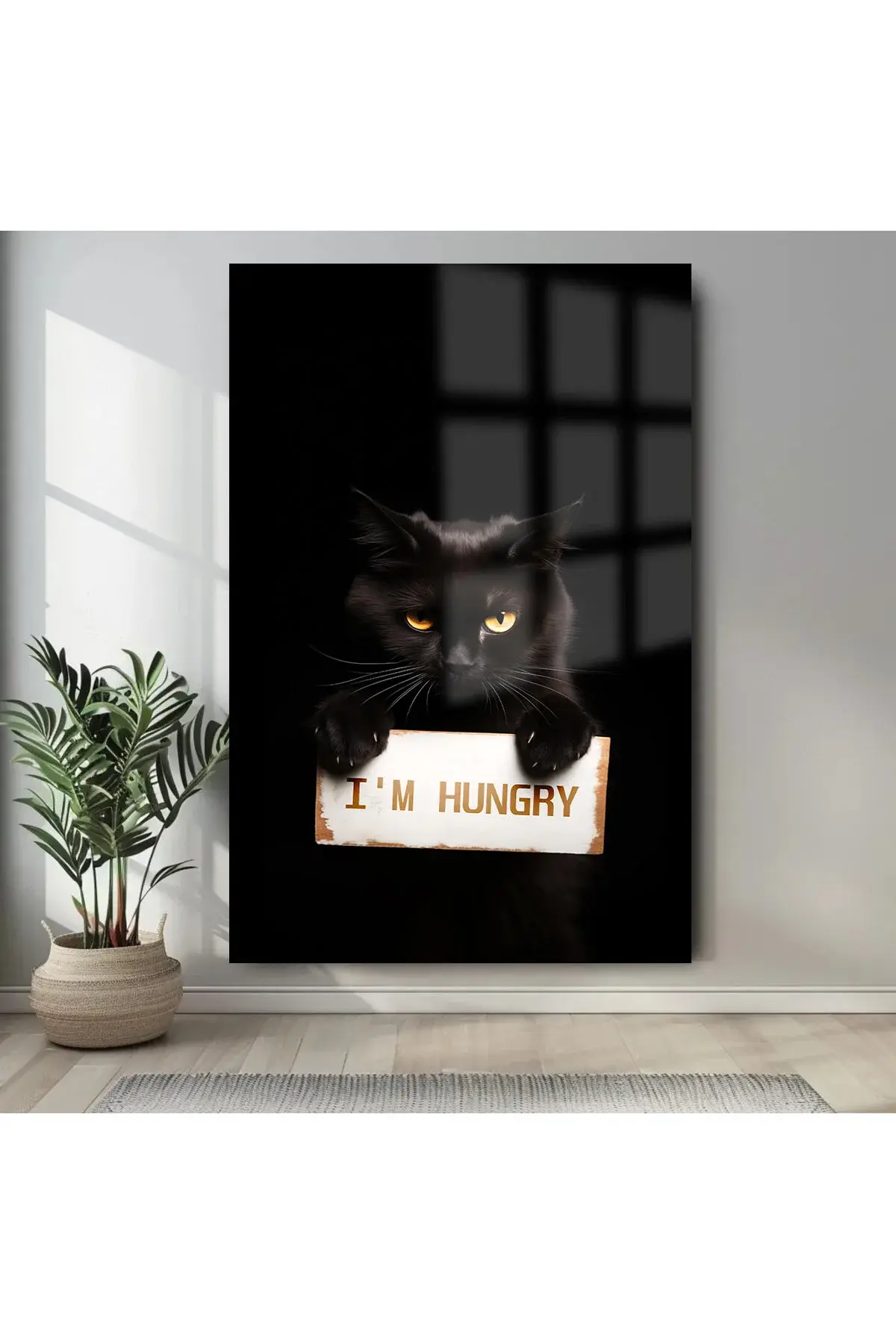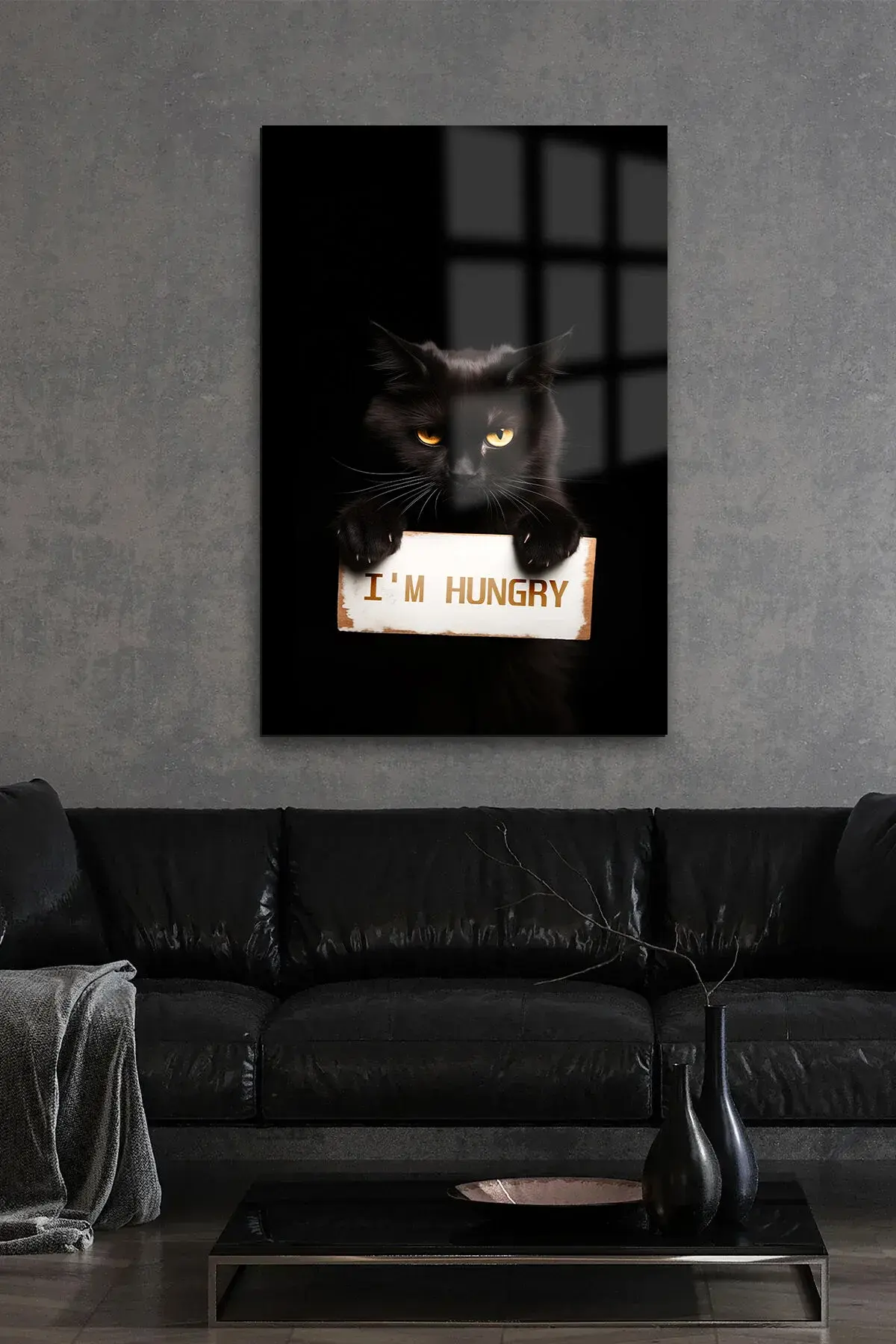 ACIK KEDİ İÇİN TASARIM CAM TABLO EV HEDİYESİ İŞ YERİ HEDİYESİ KIRILMAZ LÜKS MODERN TABLO Siyah