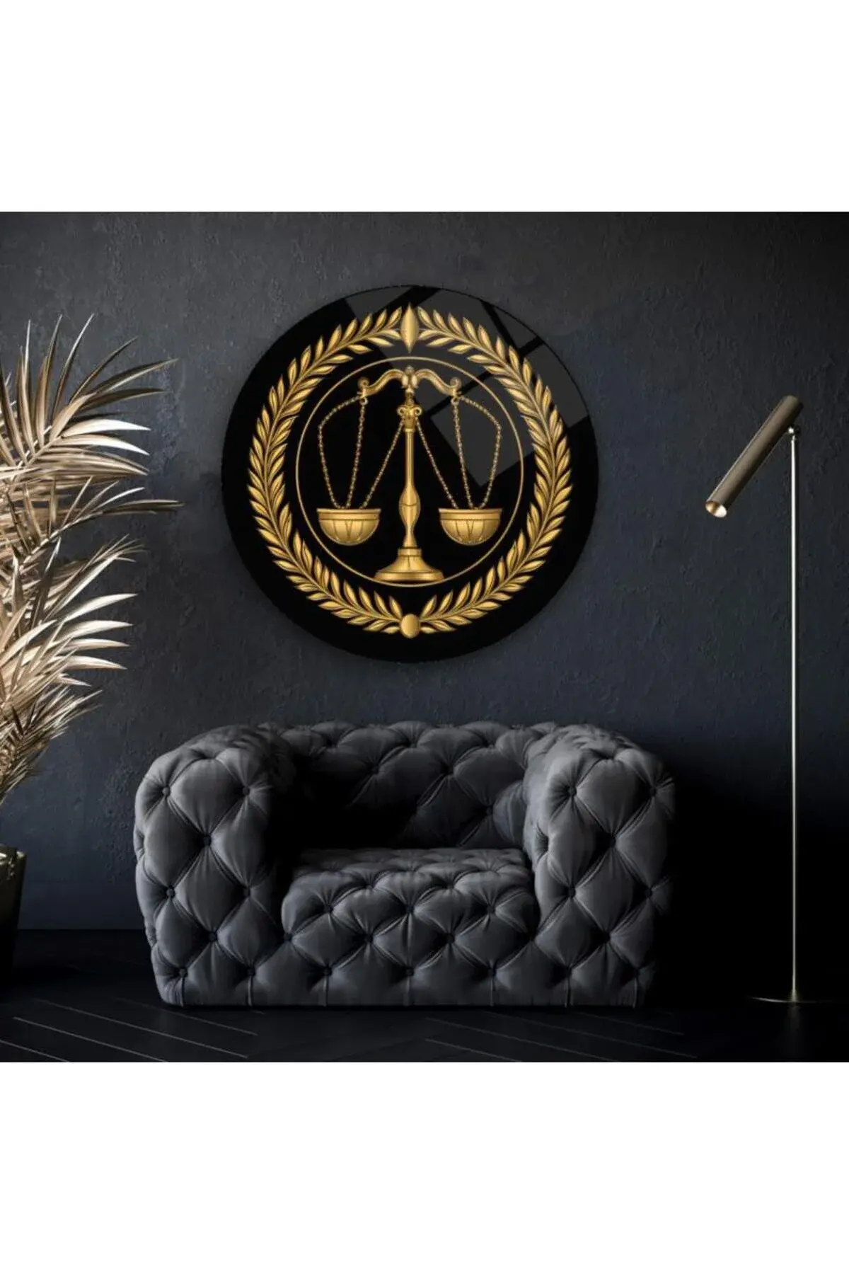 ADALET TERAZİSİ HUKUK TABLOSU HARİKA TASARIM YUVARLAK LÜKS CAM TABLO MODERN EV HEDİYESİ TABLO Siyah