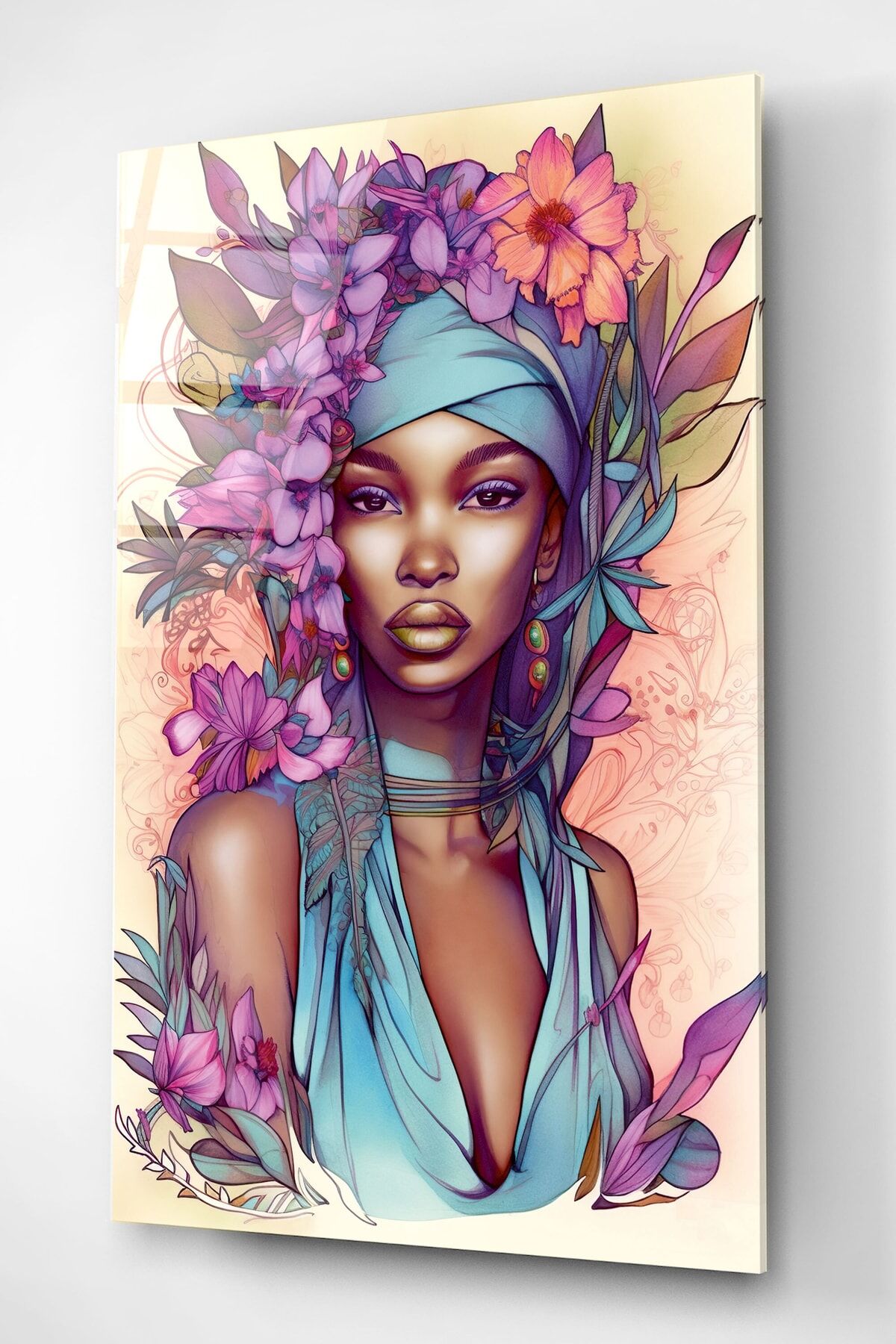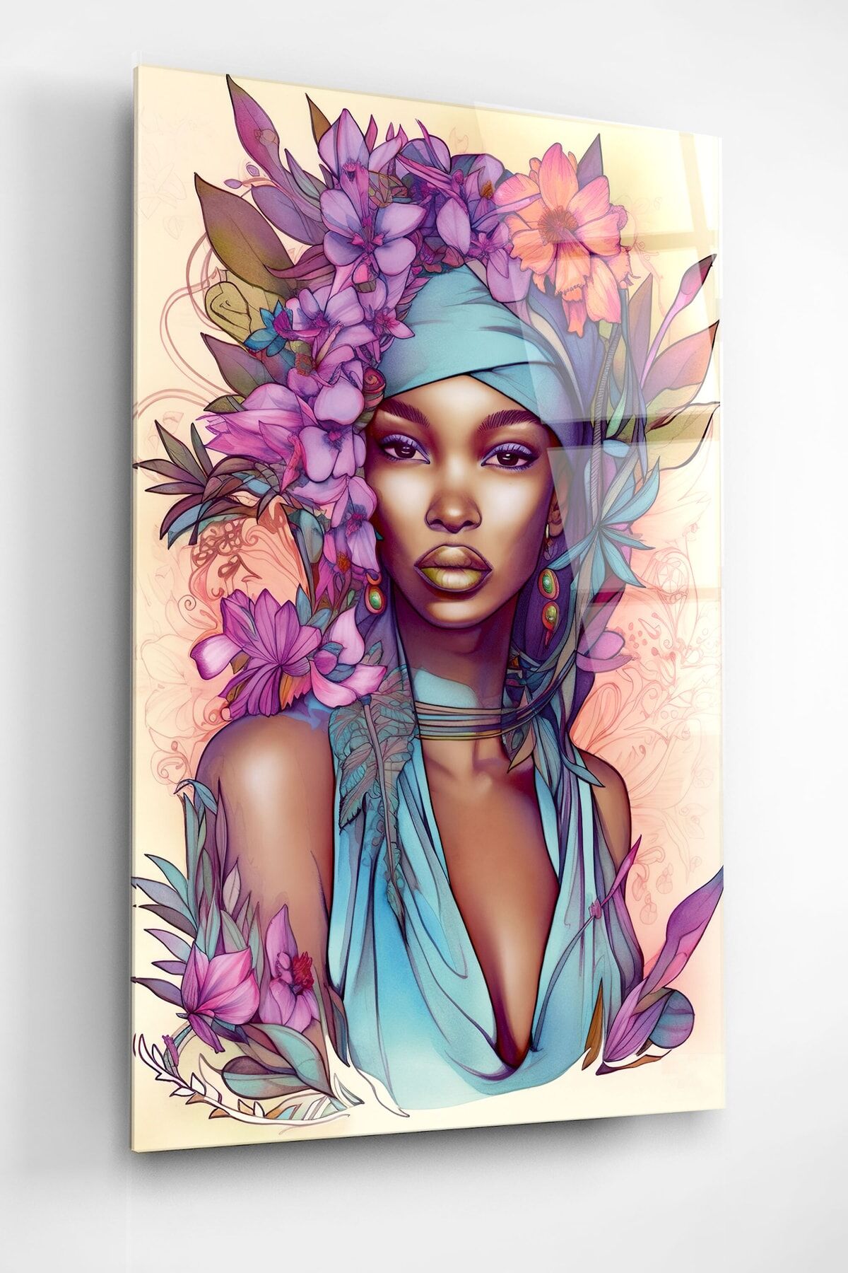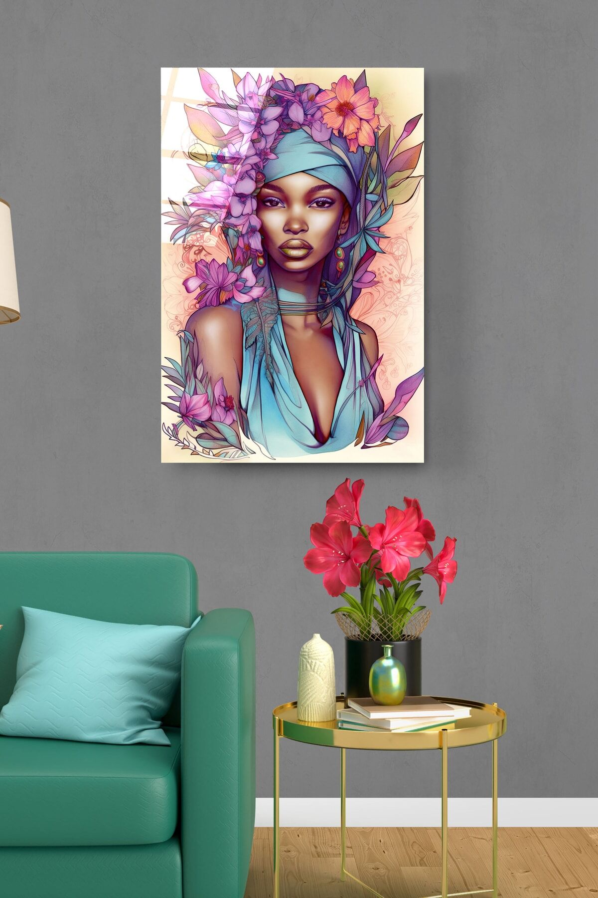 Afrikalı Kadın Cam Tablo, Dekoratif Cam Tablo