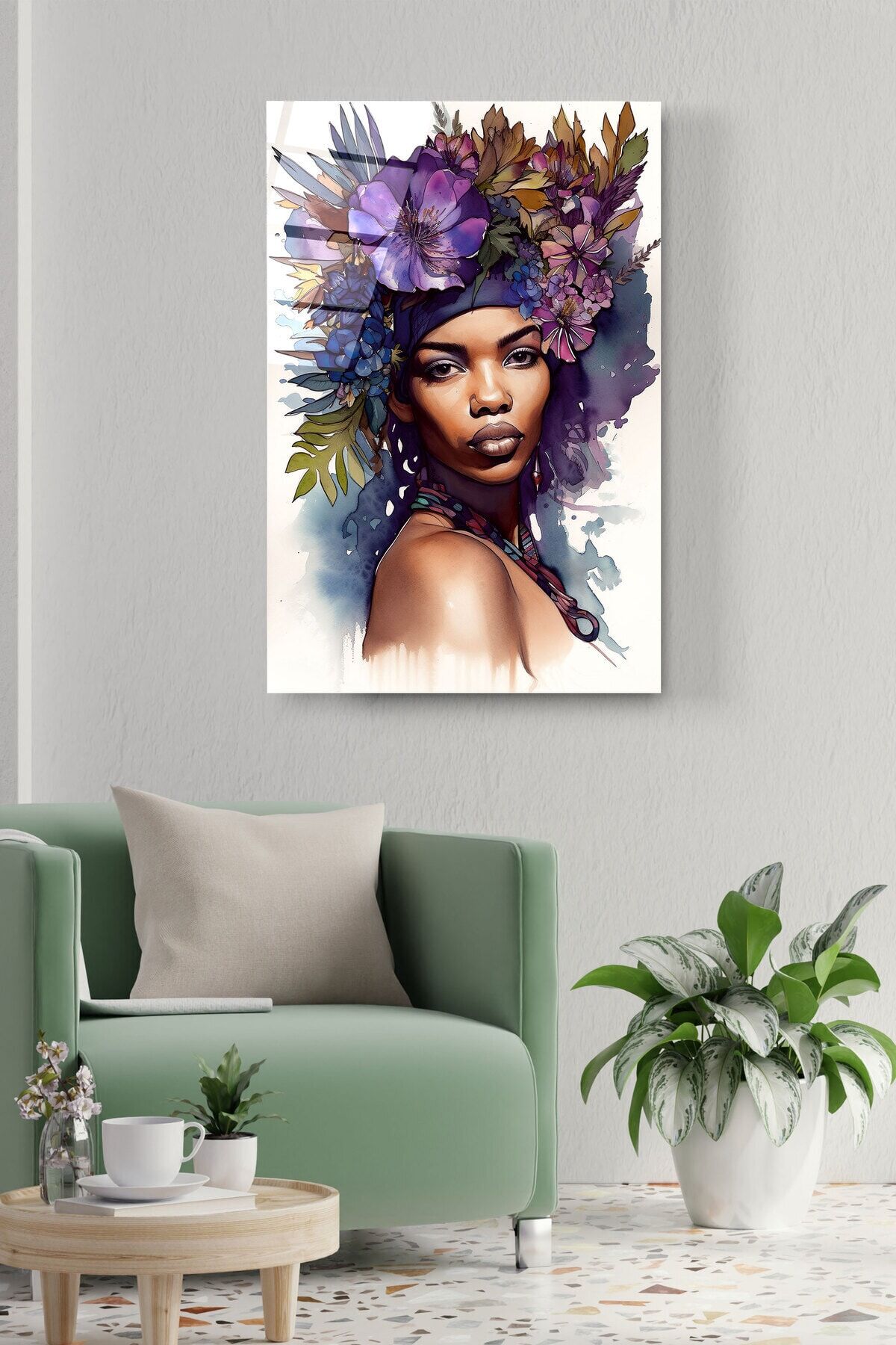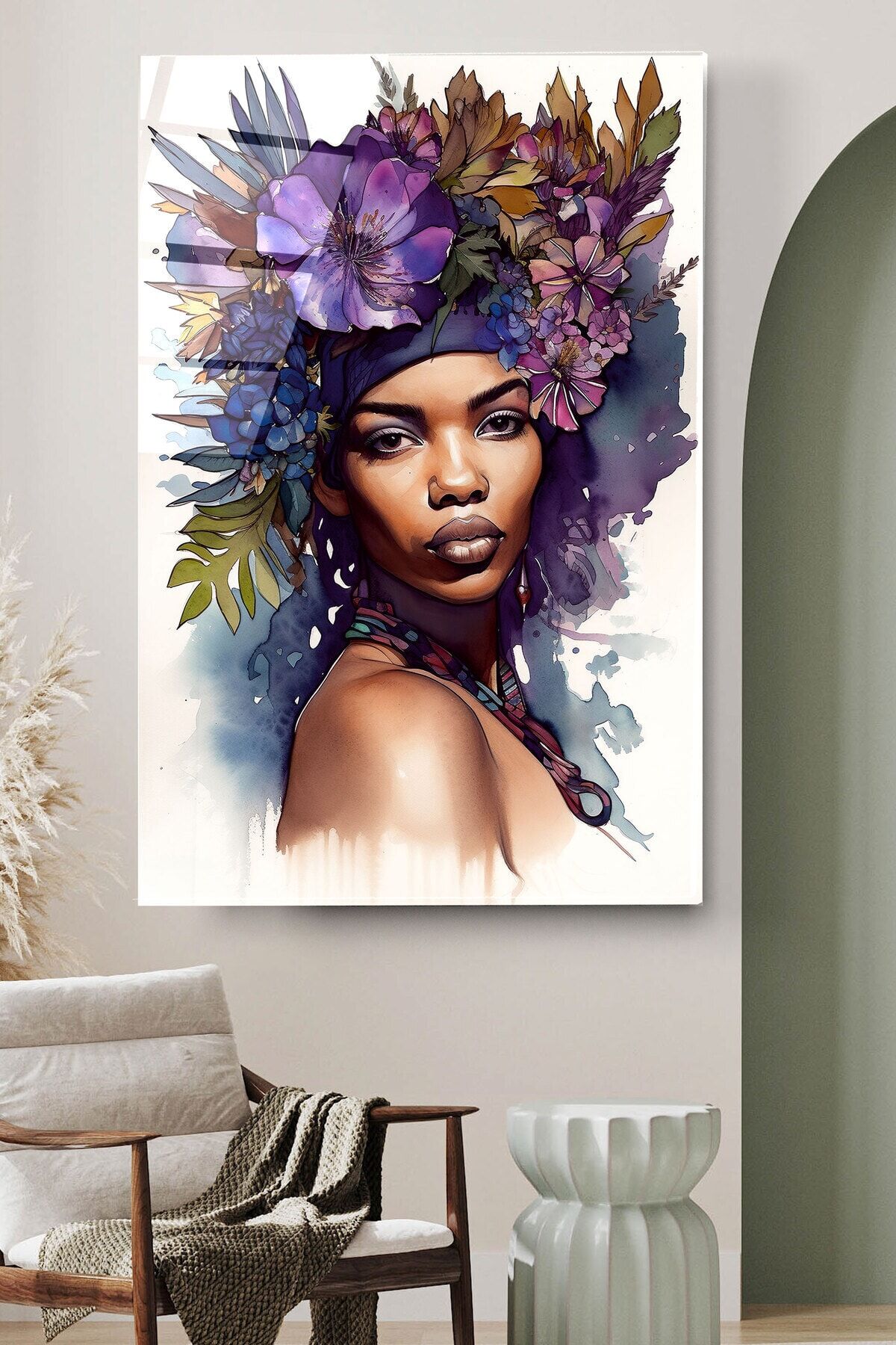 Afrikalı Kadın Cam Tablo, Dekoratif Cam Tablo