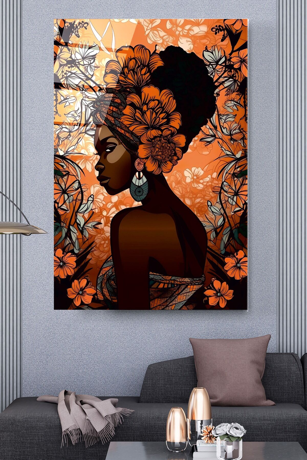 Afrikalı Kadın Cam Tablo, Dekoratif Cam Tablo