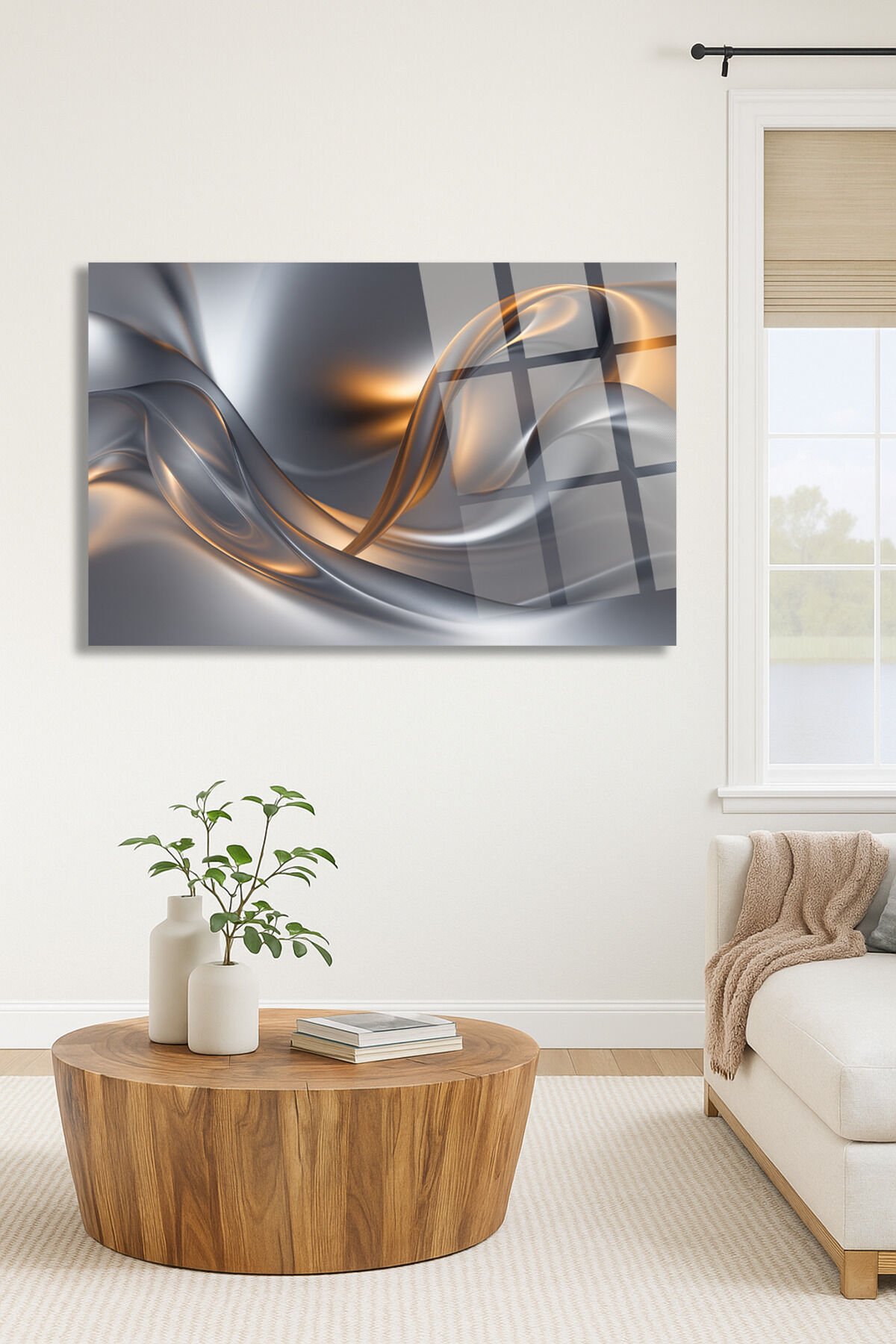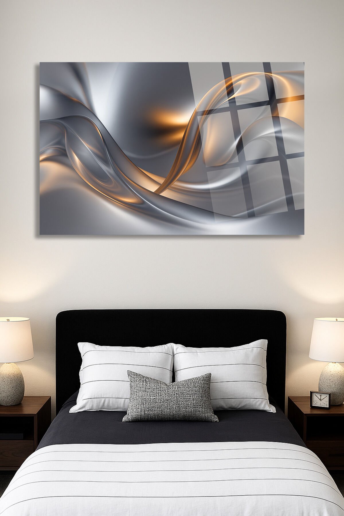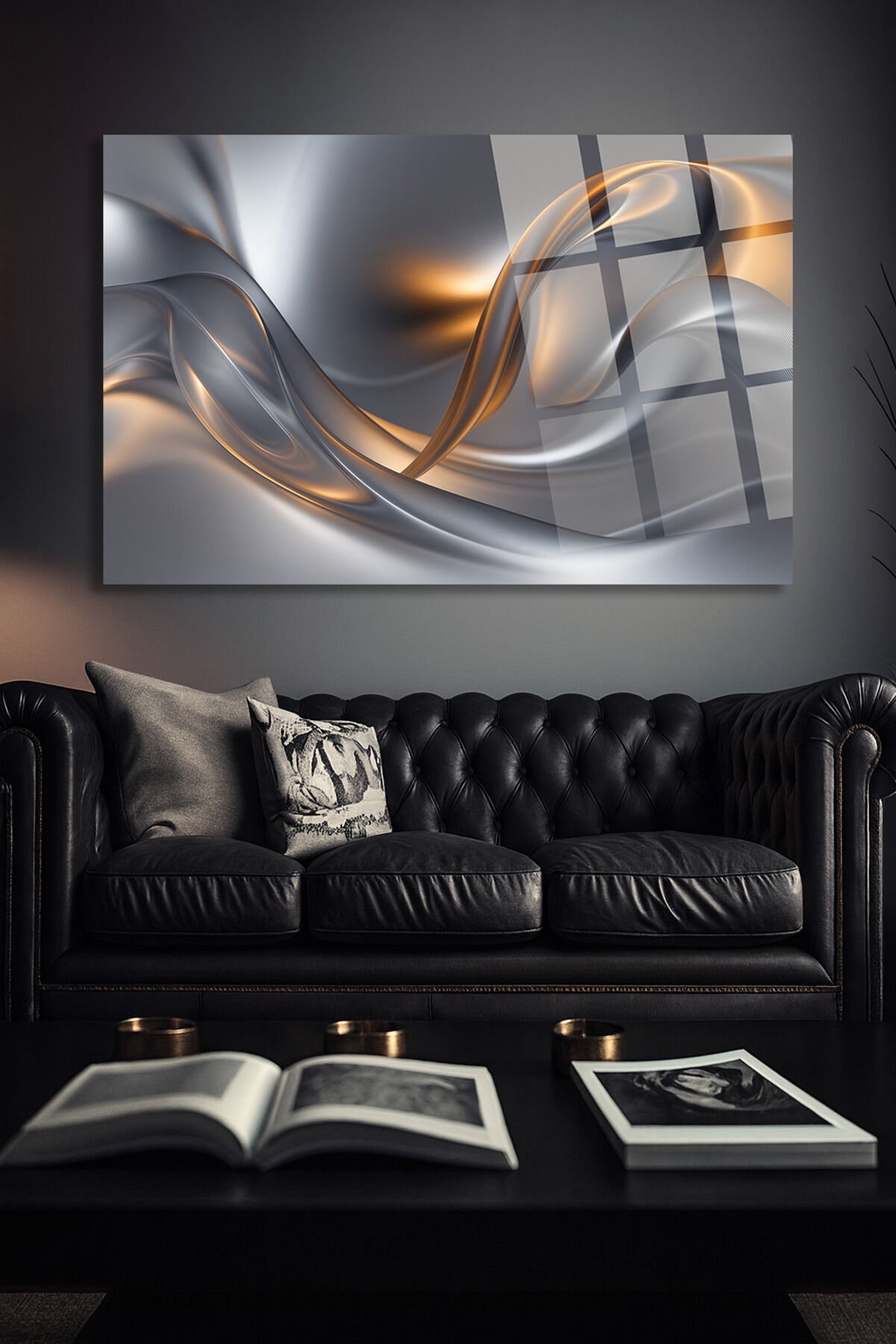 AKIŞKAN METALİK DALGA DESENLİ ŞIK EV HEDİYESİ TABLO ULTRA CANLI IŞIK EFEKTLI KIRILMAZ LÜKS CAM TABLO Metalik