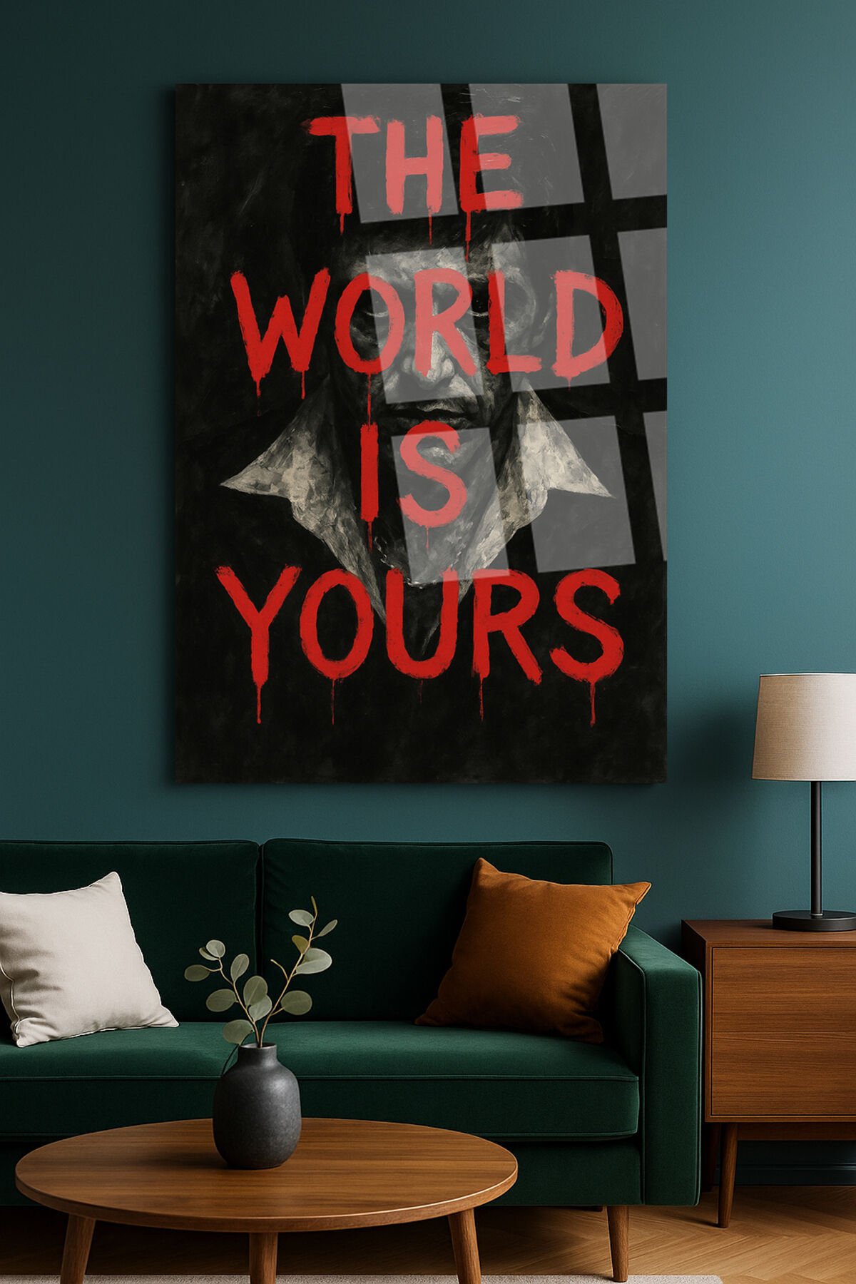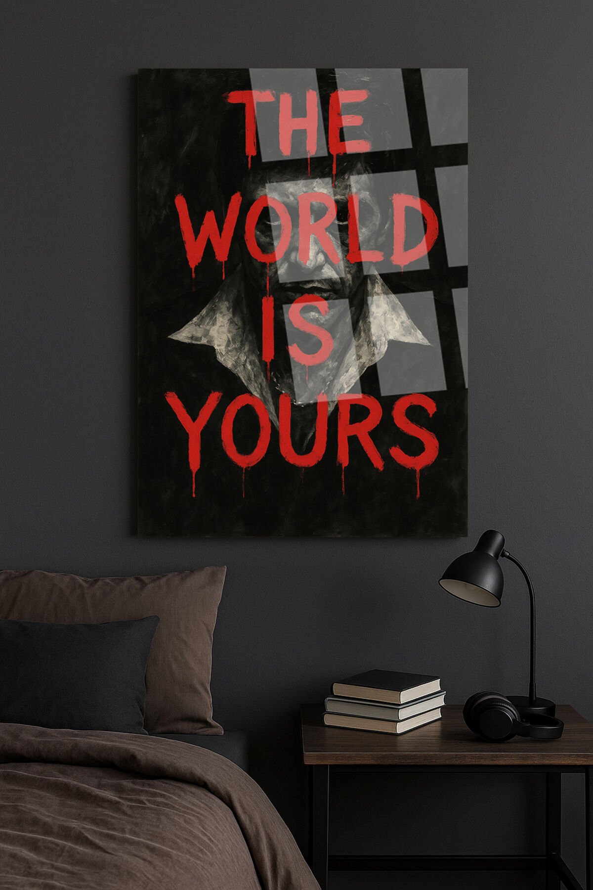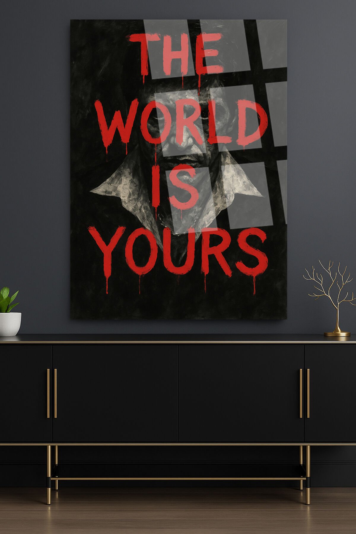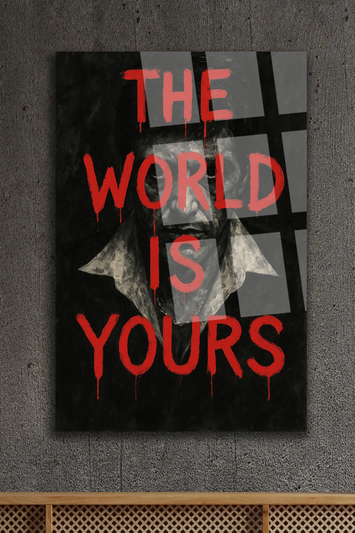 AL PACİNO ''DÜNYA SENİN'' SCARFACE CAM TABLO EV HEDİYESİ ULTRA CANLI RENKLER Siyah