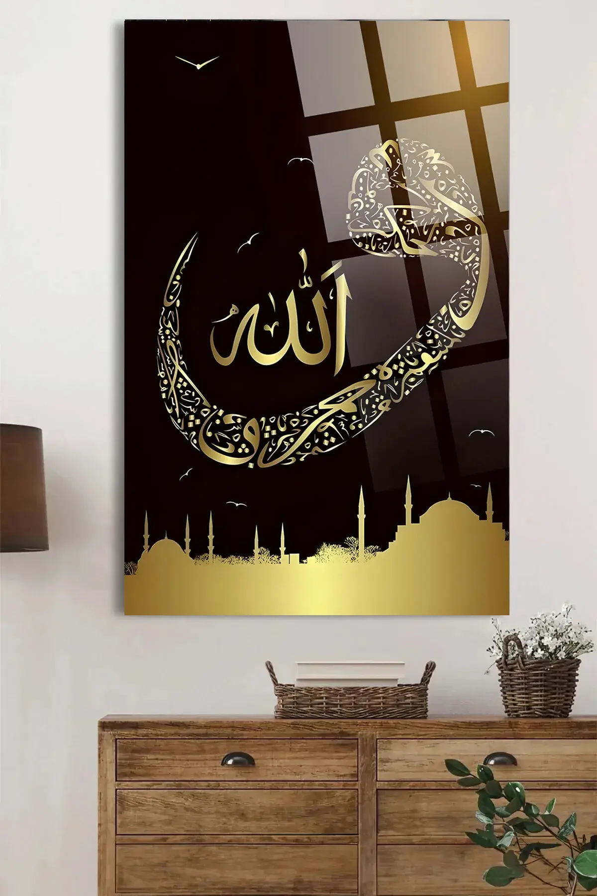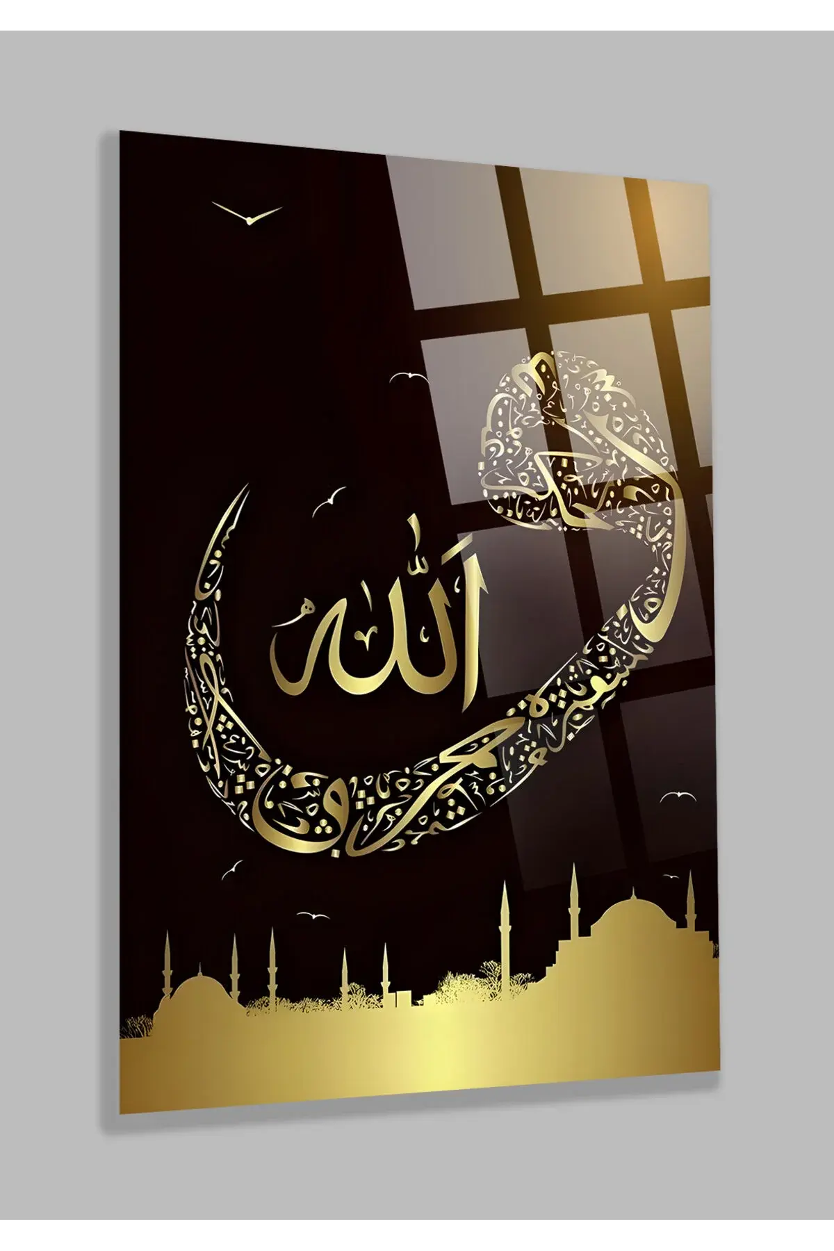 ALLAH VAV YAZILI KIRILMAZ LÜKS CAM TABLO EV HEDİYESİ İŞ YERİ HEDİYESİ DİNİ İSLAMİ CAM TABLO Siyah