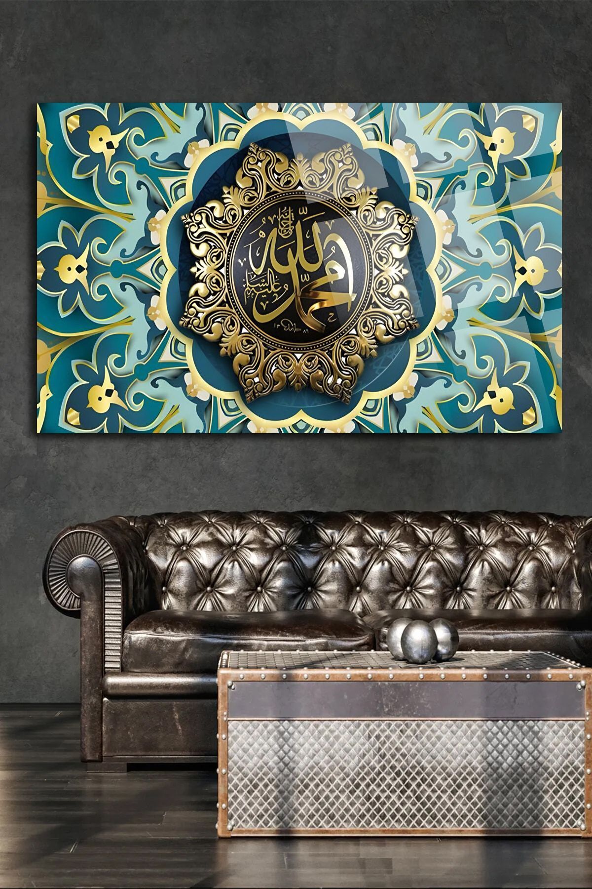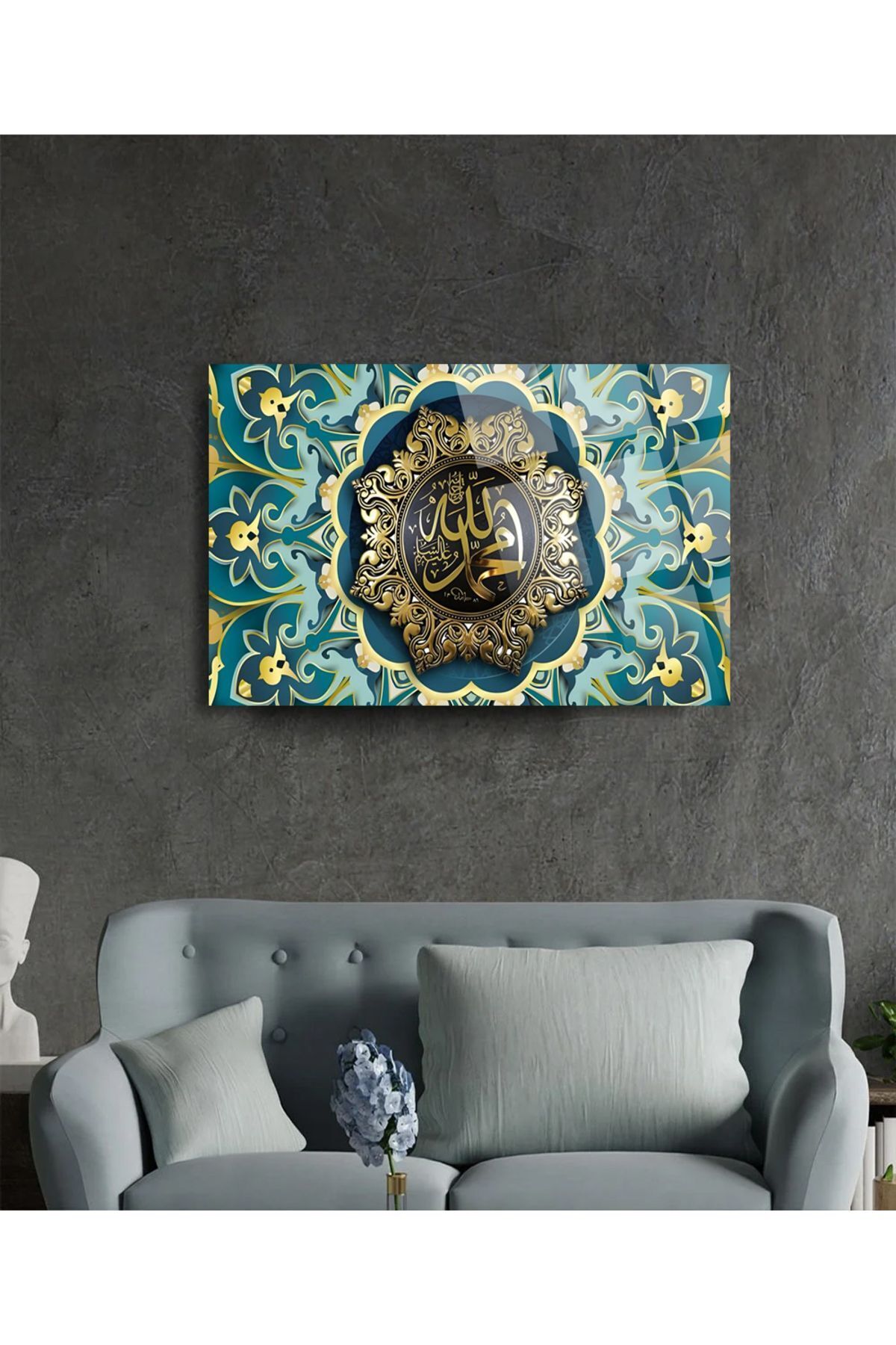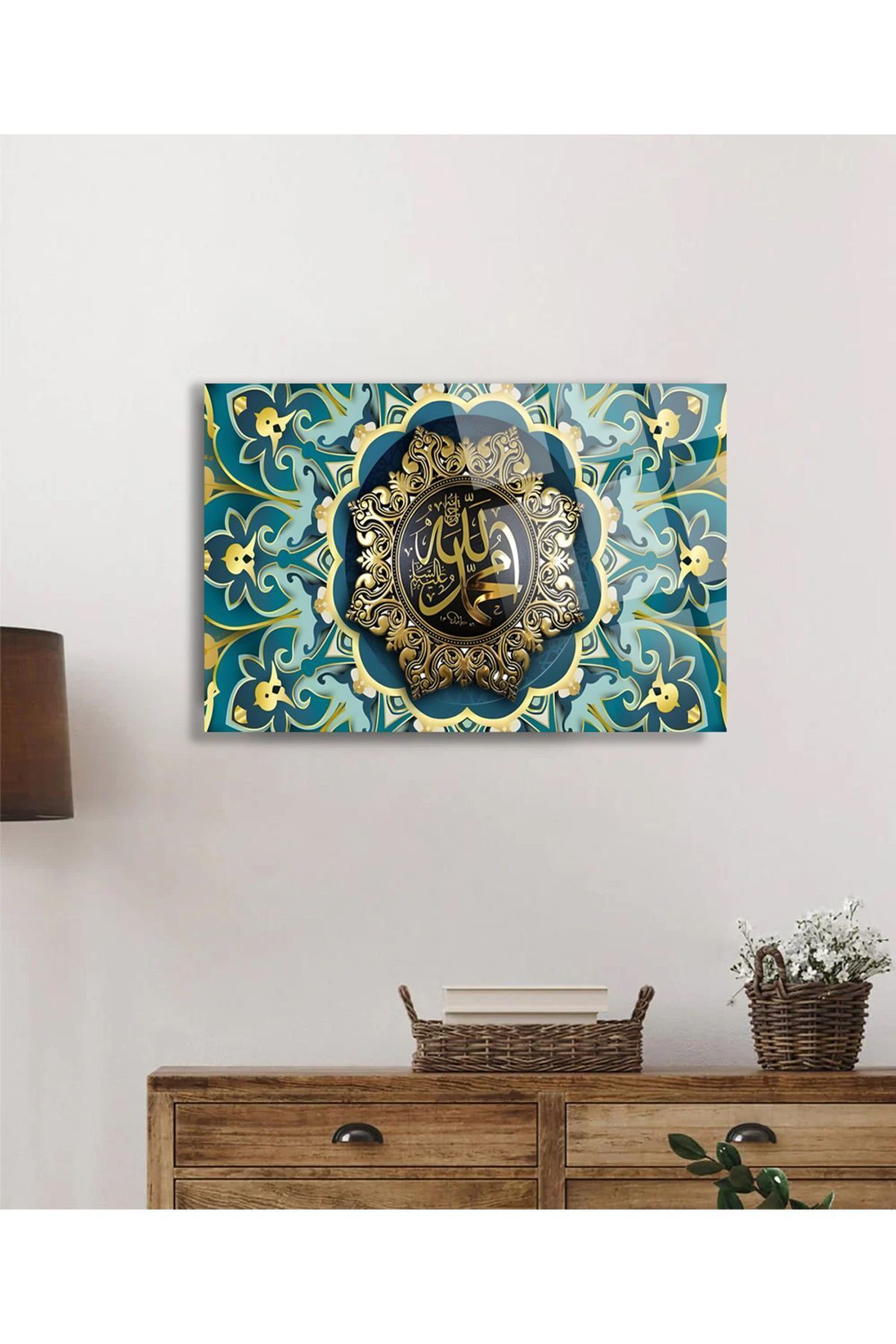 Allah ve Muhammed Yazılı Dini İslami Kırılmaz Cam Tablo, Ev Ofis Hediyesi Yüksek Çözünürlüklü 4mm yeşil 67