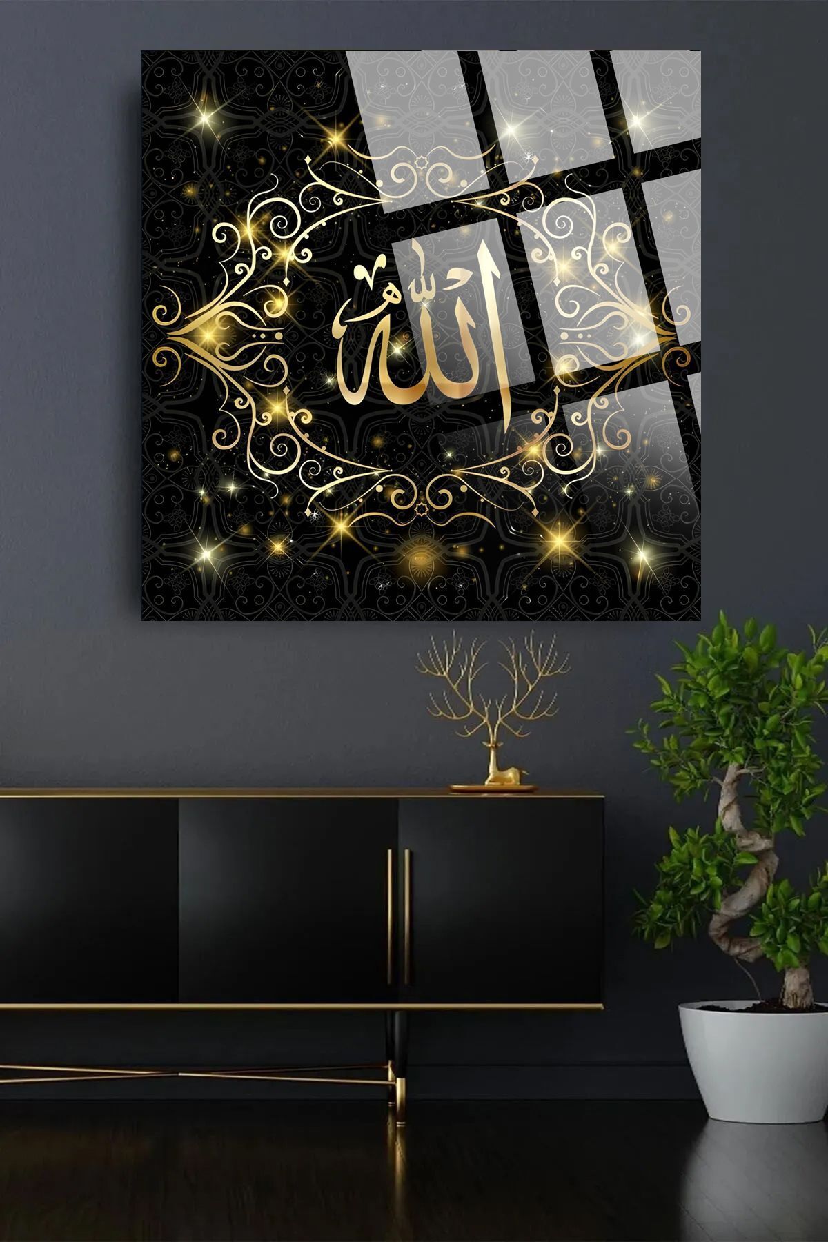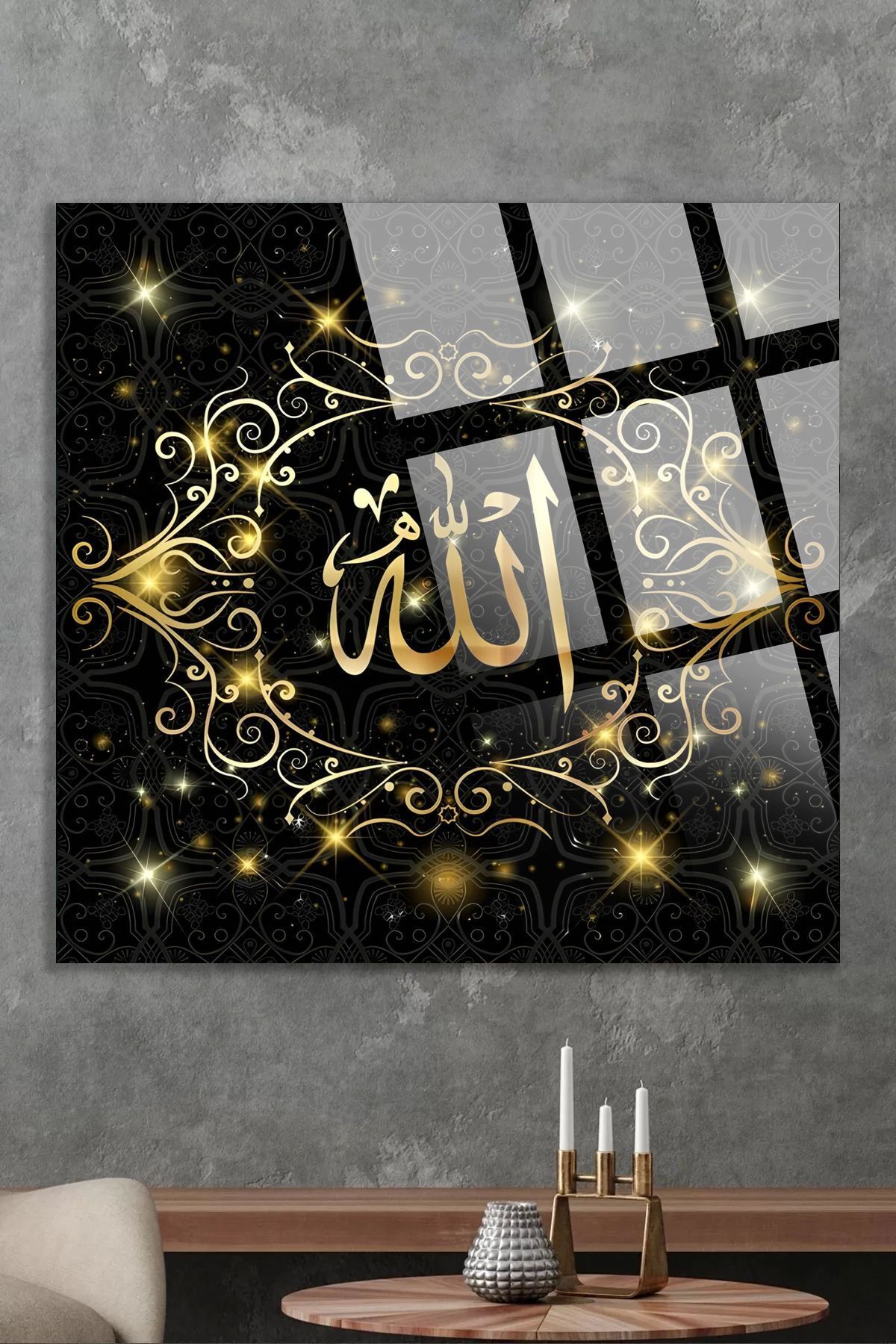 Allah Yazılı Dini İslami Kırılmaz Cam Tablo, Ev Ofis Hediyesi Yüksek Çözünürlüklü 4mm Siyah 53