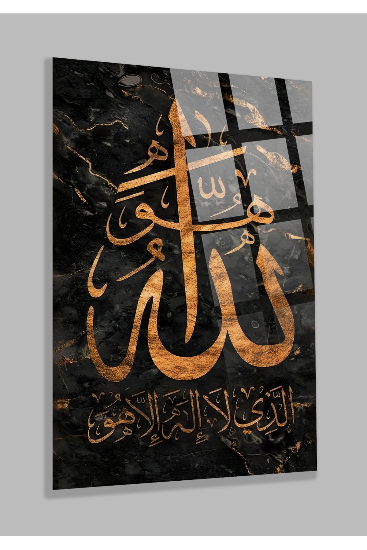ALLAH YAZILI MERMER GÖRÜNÜM DİNİ İSLAMİ KIRILMAZ LÜKS CAM TABLO EV, İŞ YERİ, OFİS HEDİYESİ