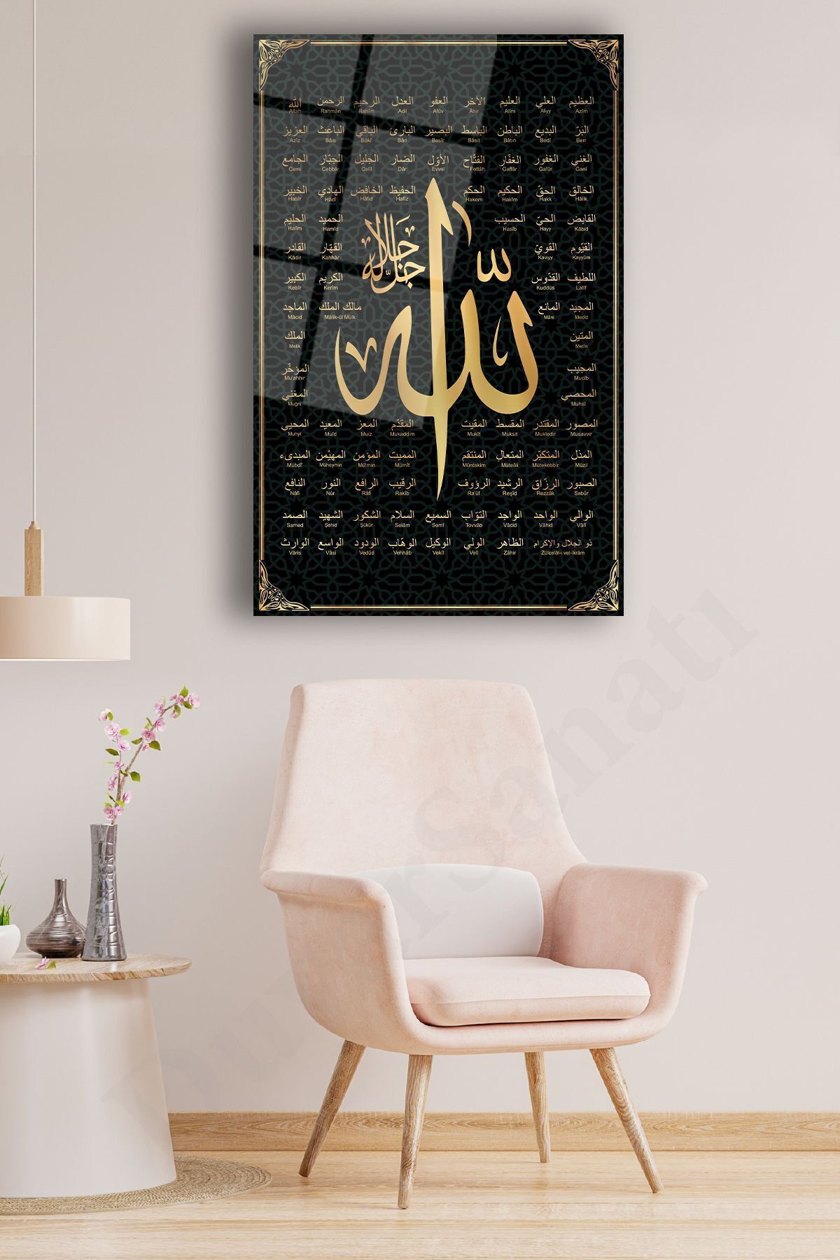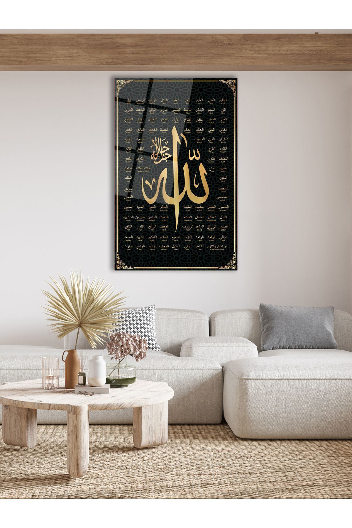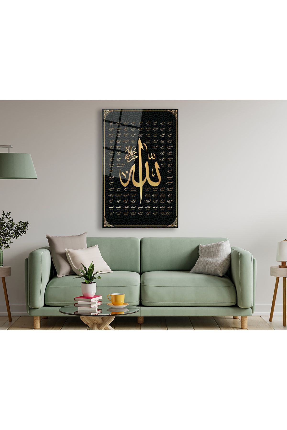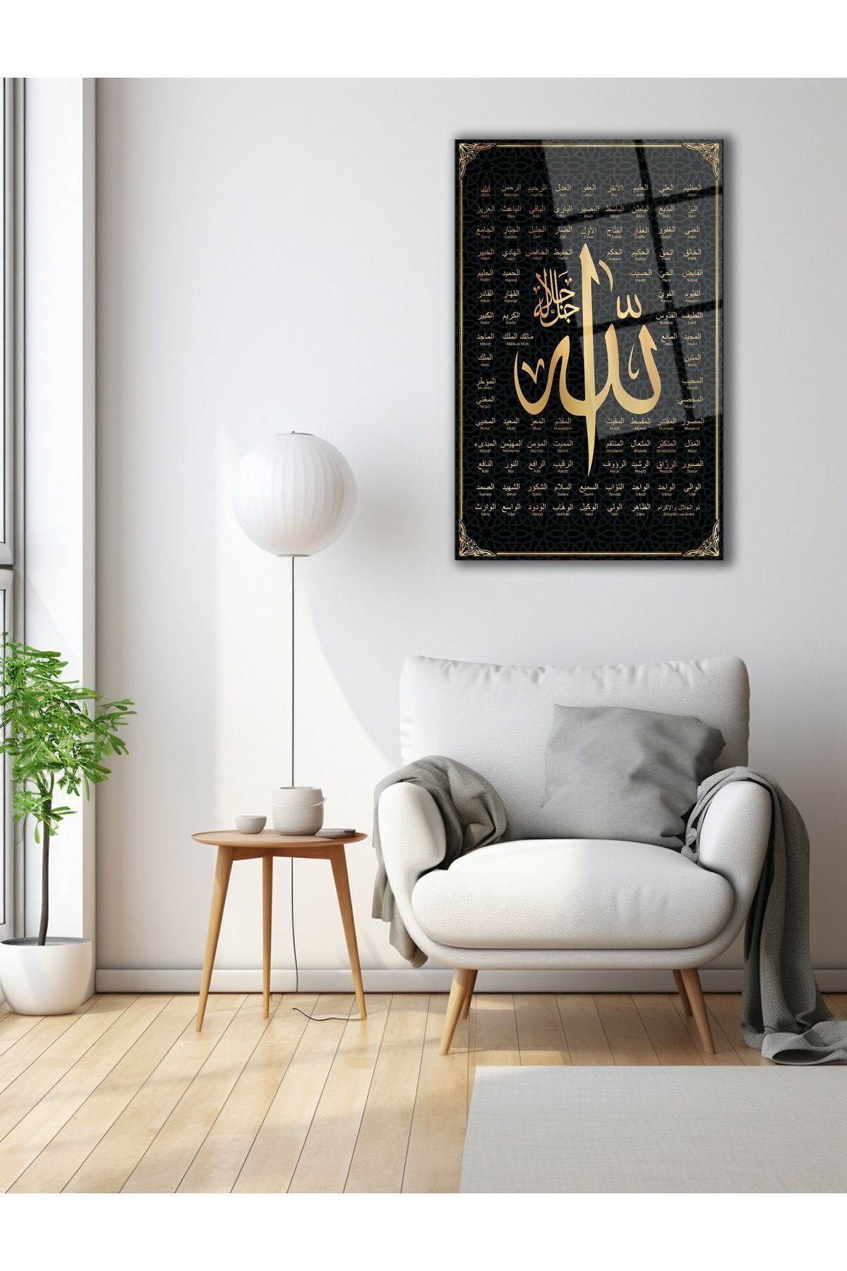 Allah'ın 99 ismi Esmaül Hüsna Cam Tablo, Dini İslami Modern Ev Ofis Salon Duvar Dekoru, Hediyelik Siyah sarı