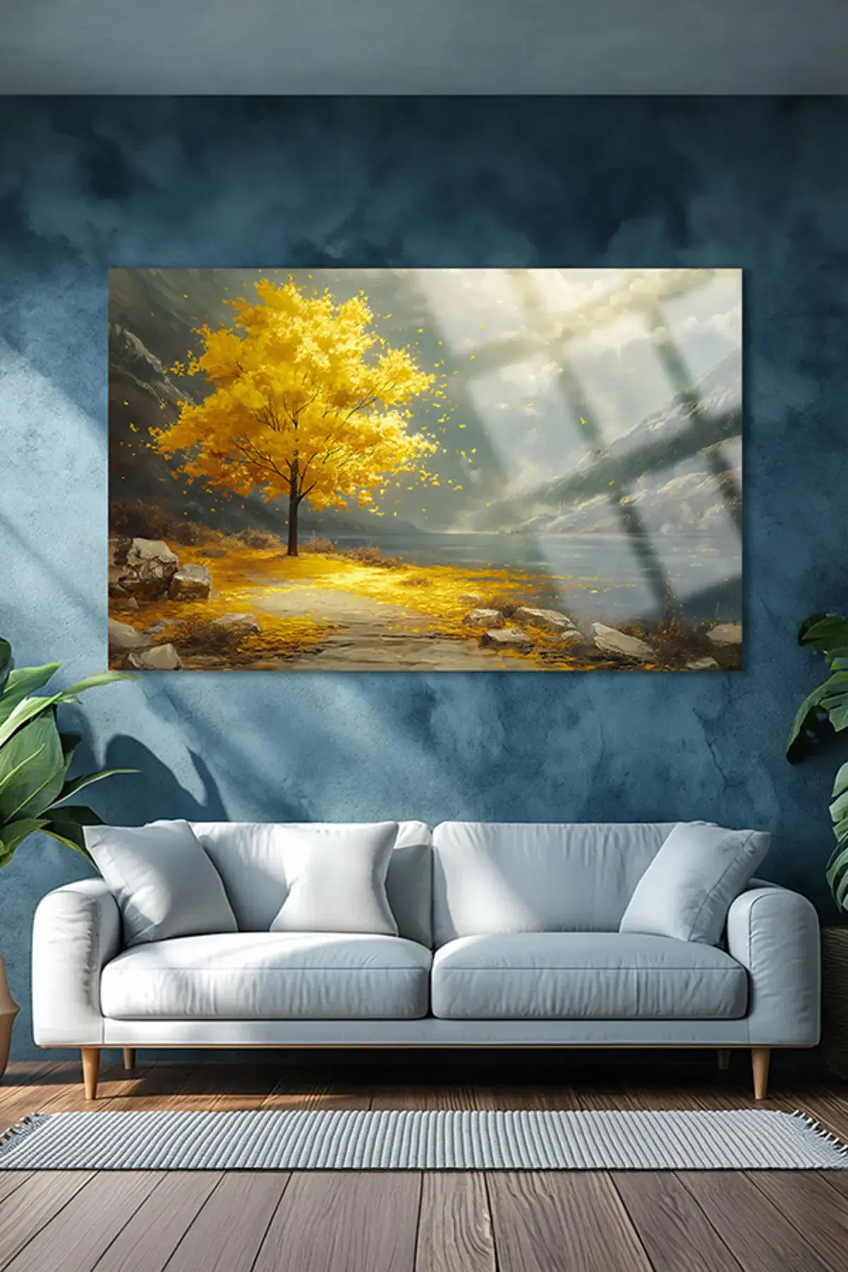 ALTIN AĞAÇ YATAY TABLO CAM TABLO KIRILMAZ LÜKS CAM TABLO EV HEDİYESİ Sarı