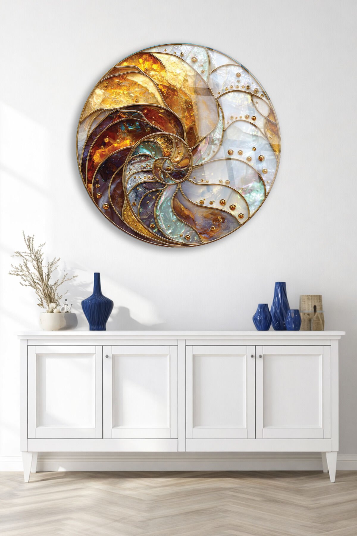 ALTIN BEYAZ SPİRAL SOYUT SANAT LÜKS KIRILMAZ CAM TABLO Altın
