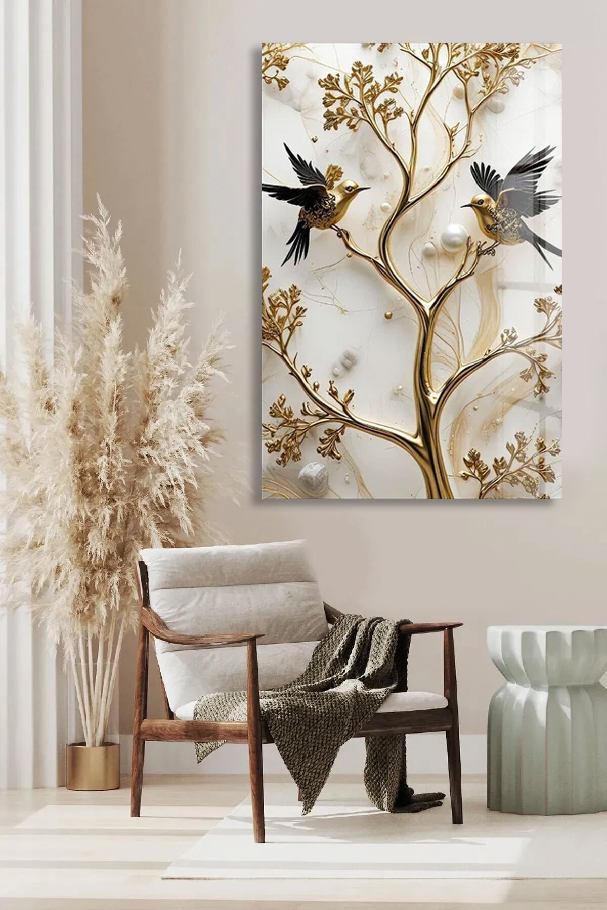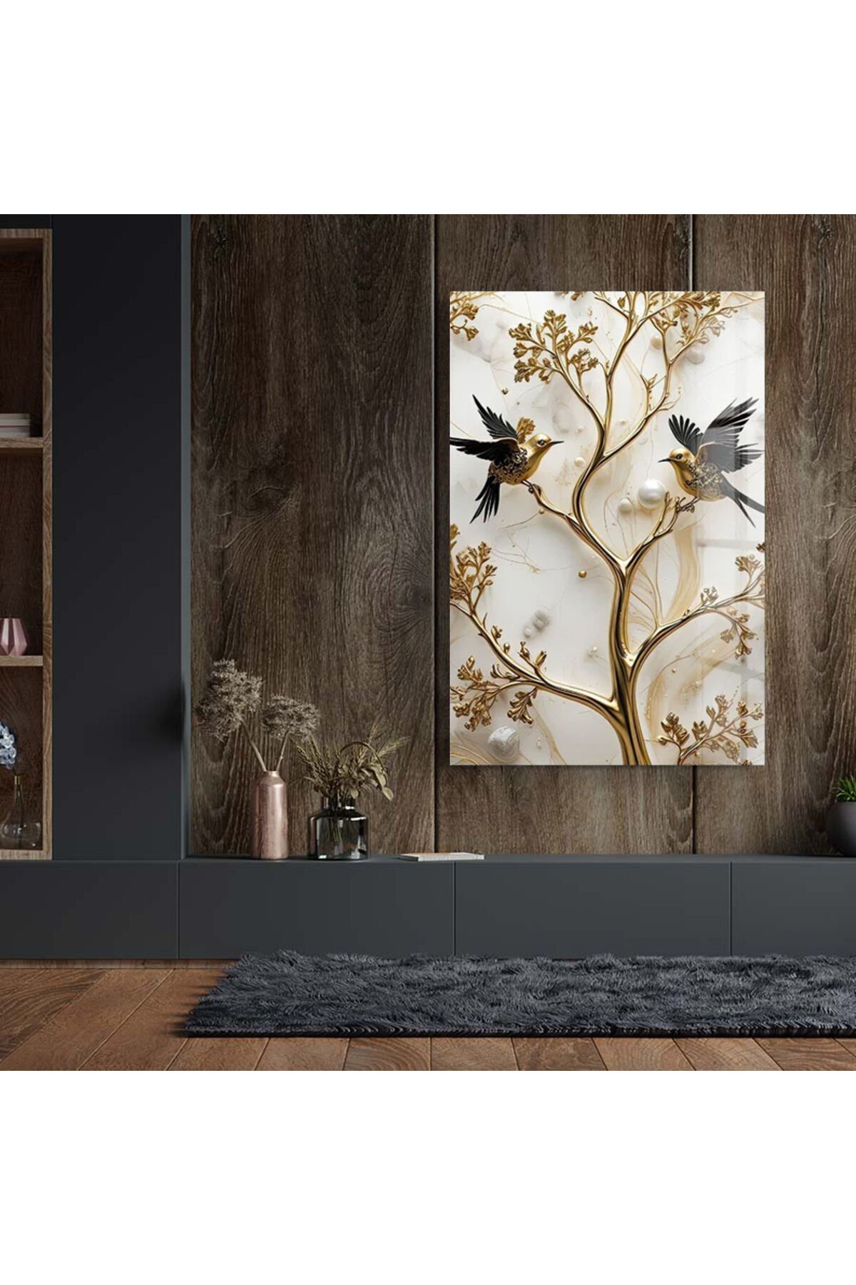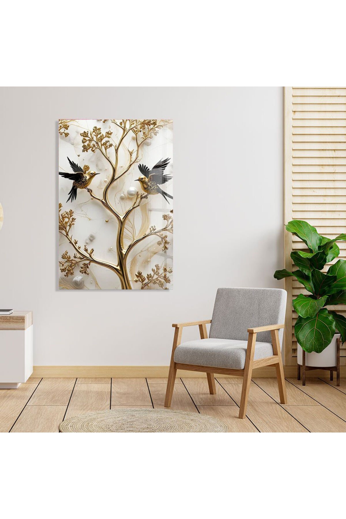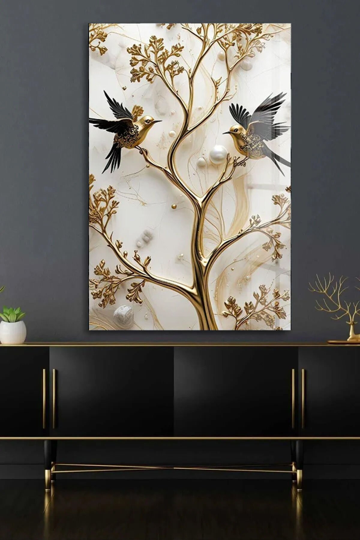 ALTIN DALLI HARİKA AĞAÇ TASARIMI KIRILMAZ CAM TABLO EV HEDİYESİ İŞ YERİ HEDİYESİ LÜKS CAM TABLO