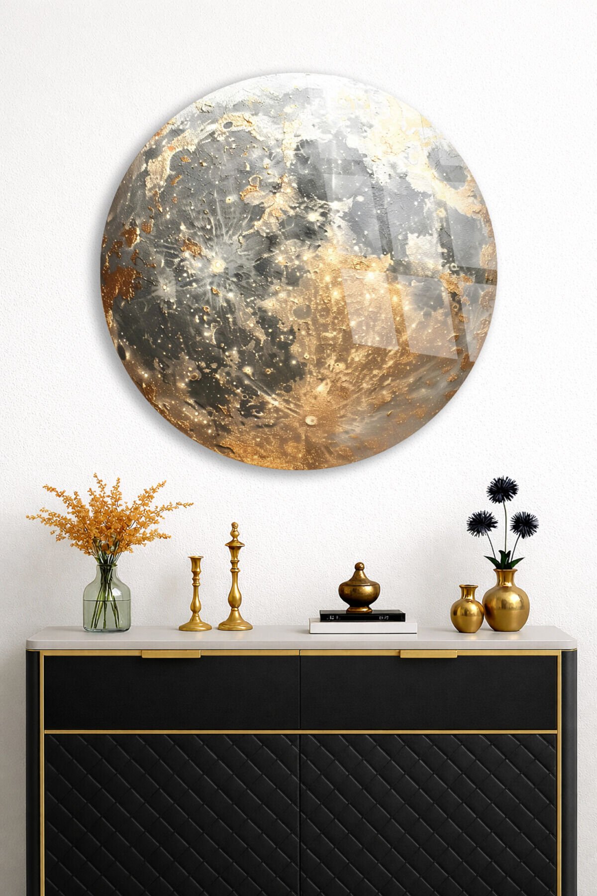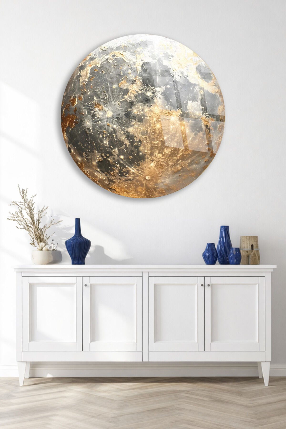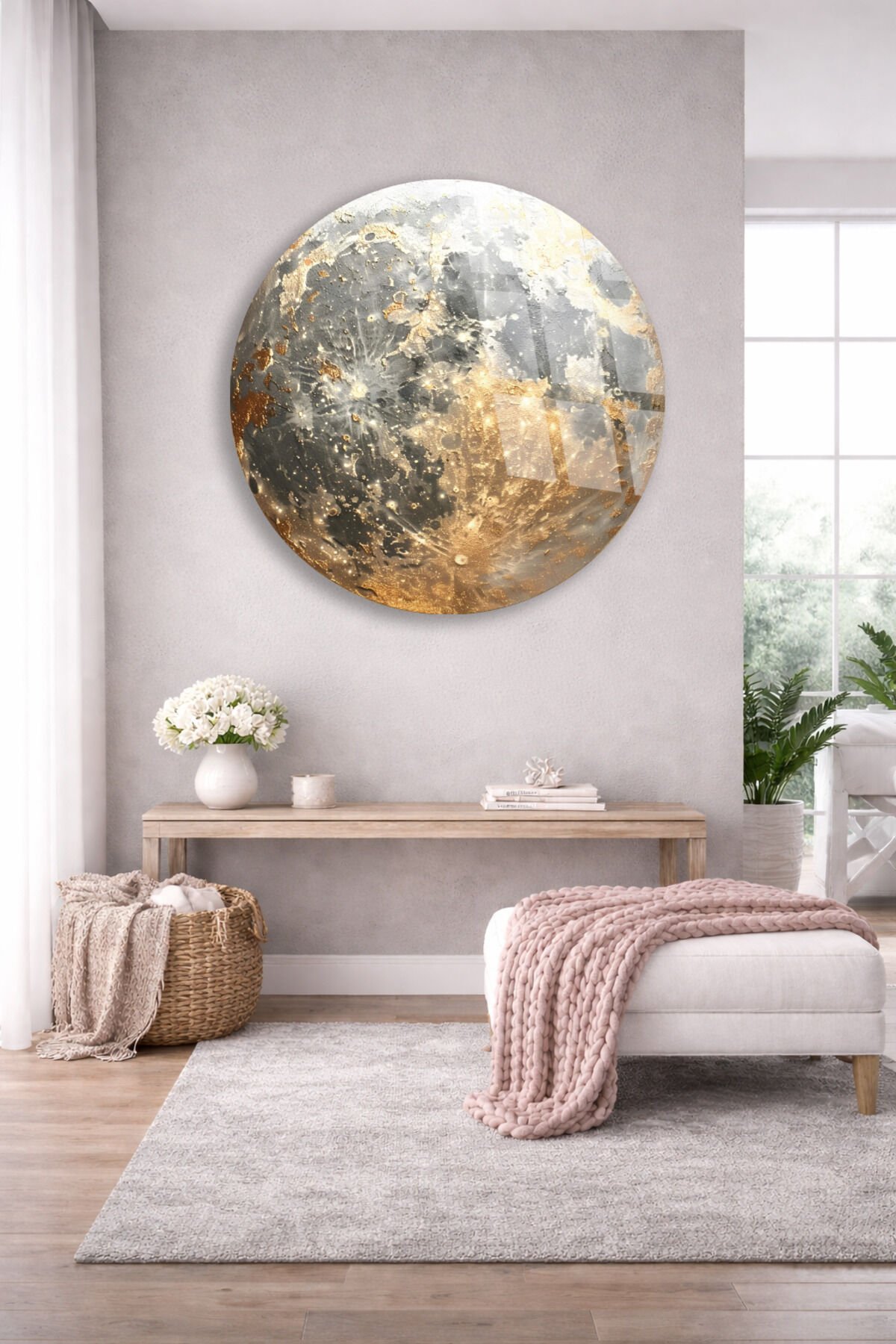 Altın Dokulu Soyut Cam Tablo – Lüks Mermer Efekt Duvar Sanatı Bej