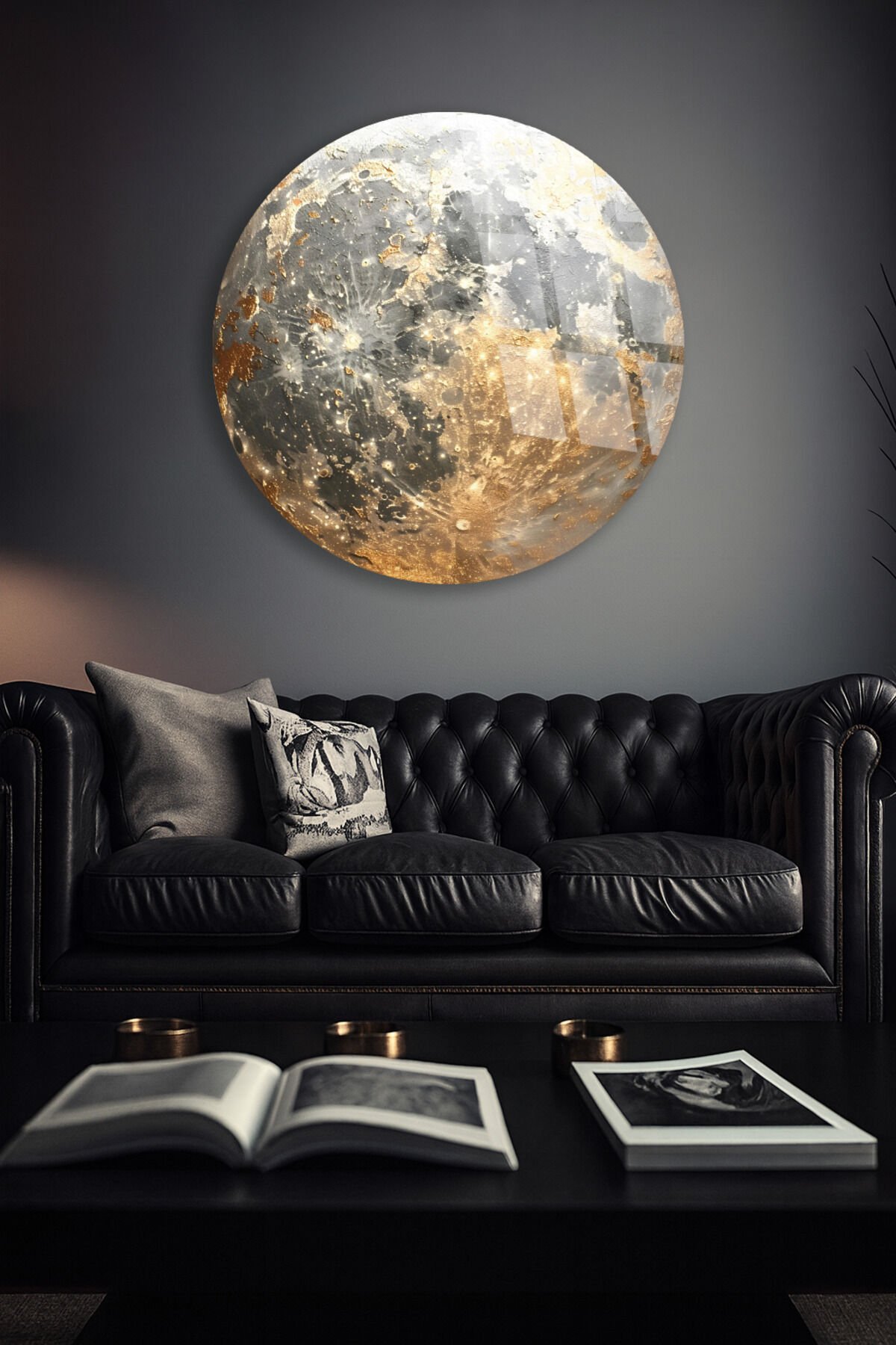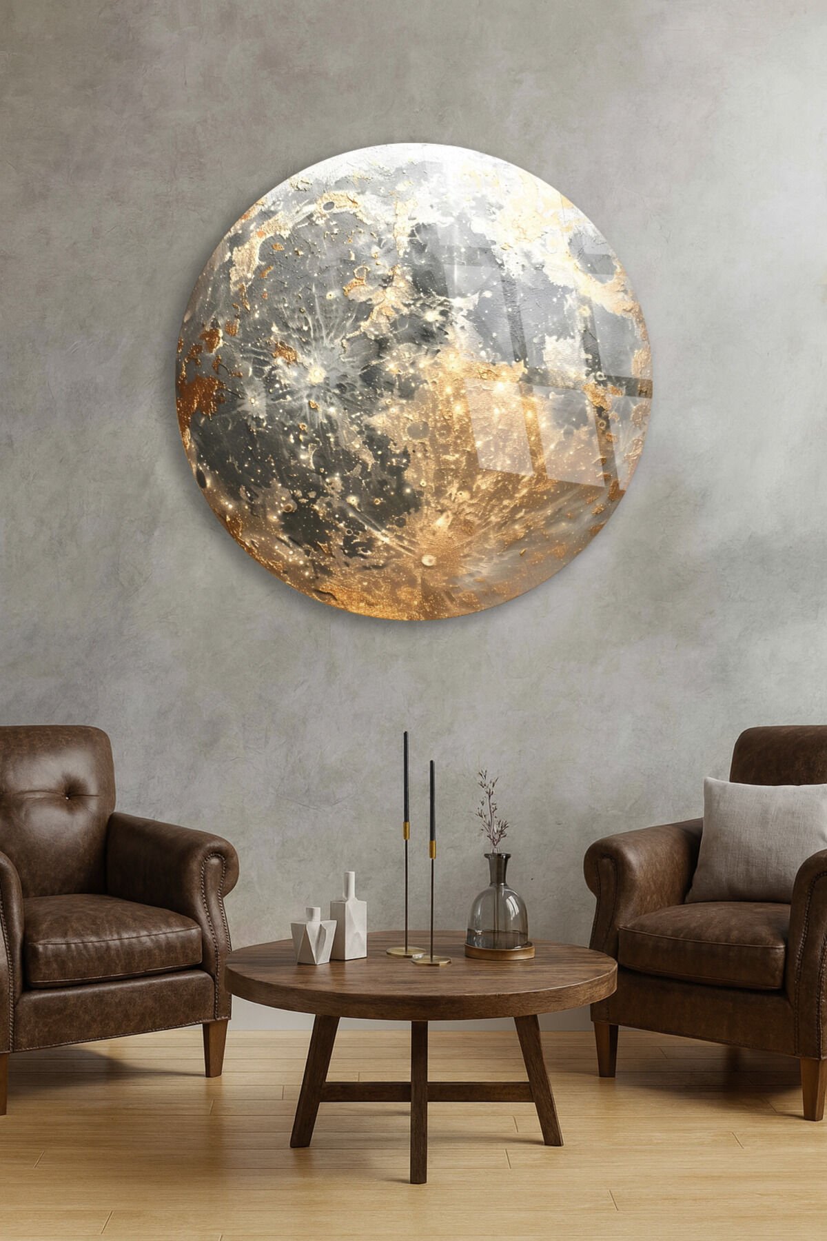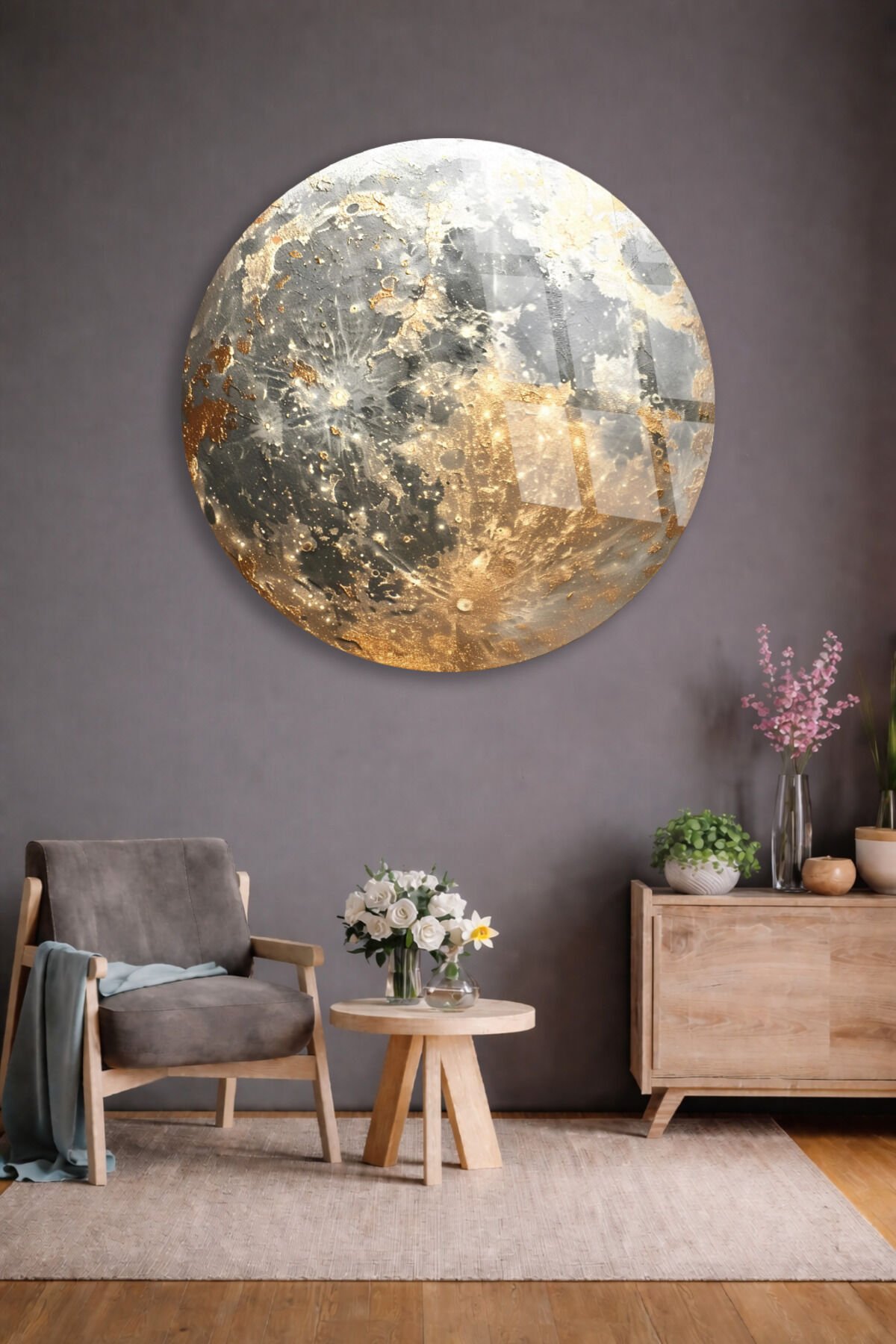Altın Dokulu Soyut Cam Tablo – Lüks Mermer Efekt Duvar Sanatı Bej