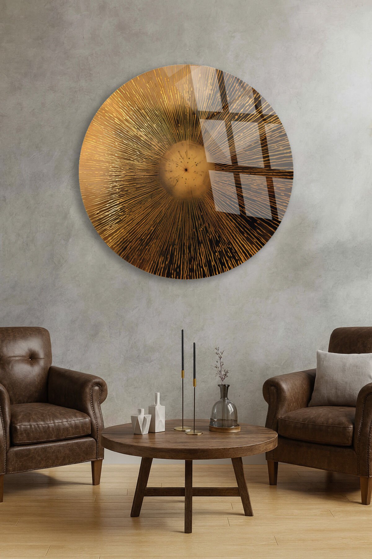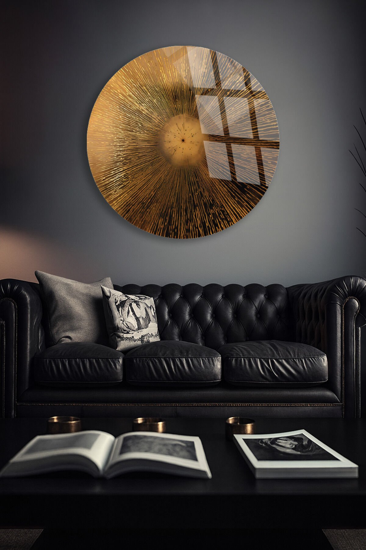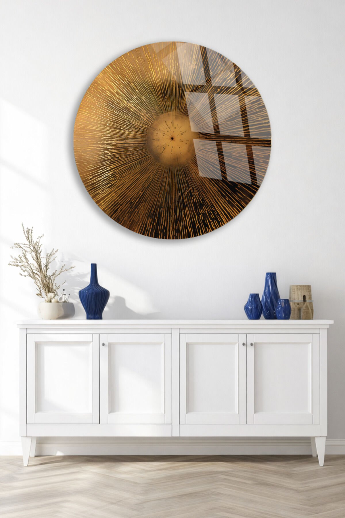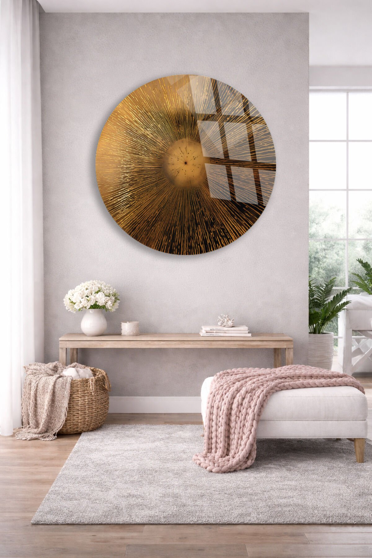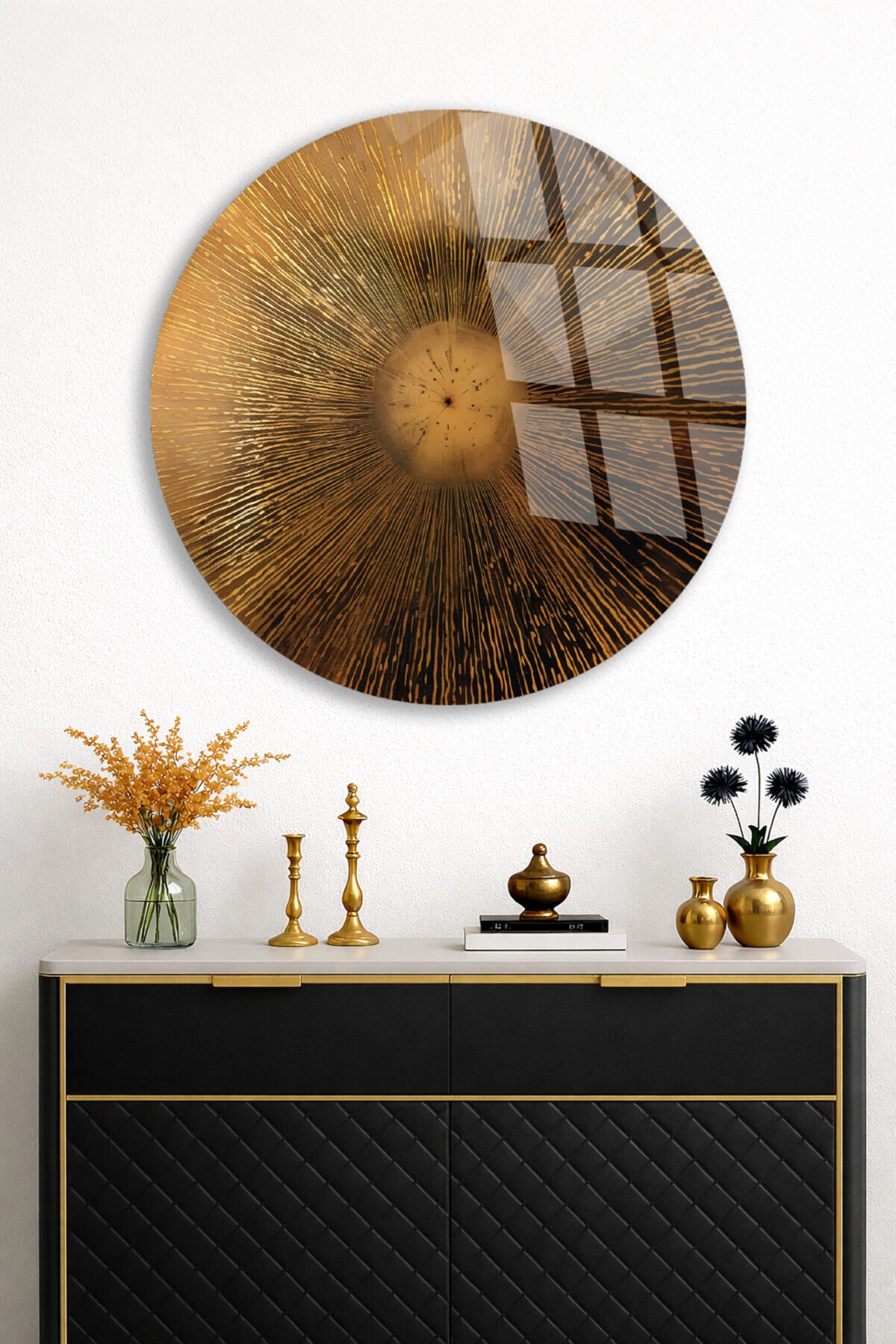 Altın Işın Efektli Cam Tablo – Modern ve Lüks Duvar Dekoru Turuncu
