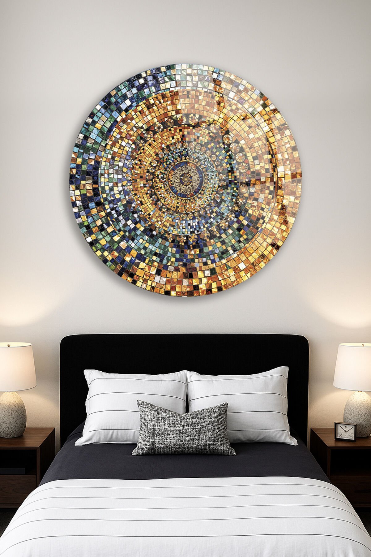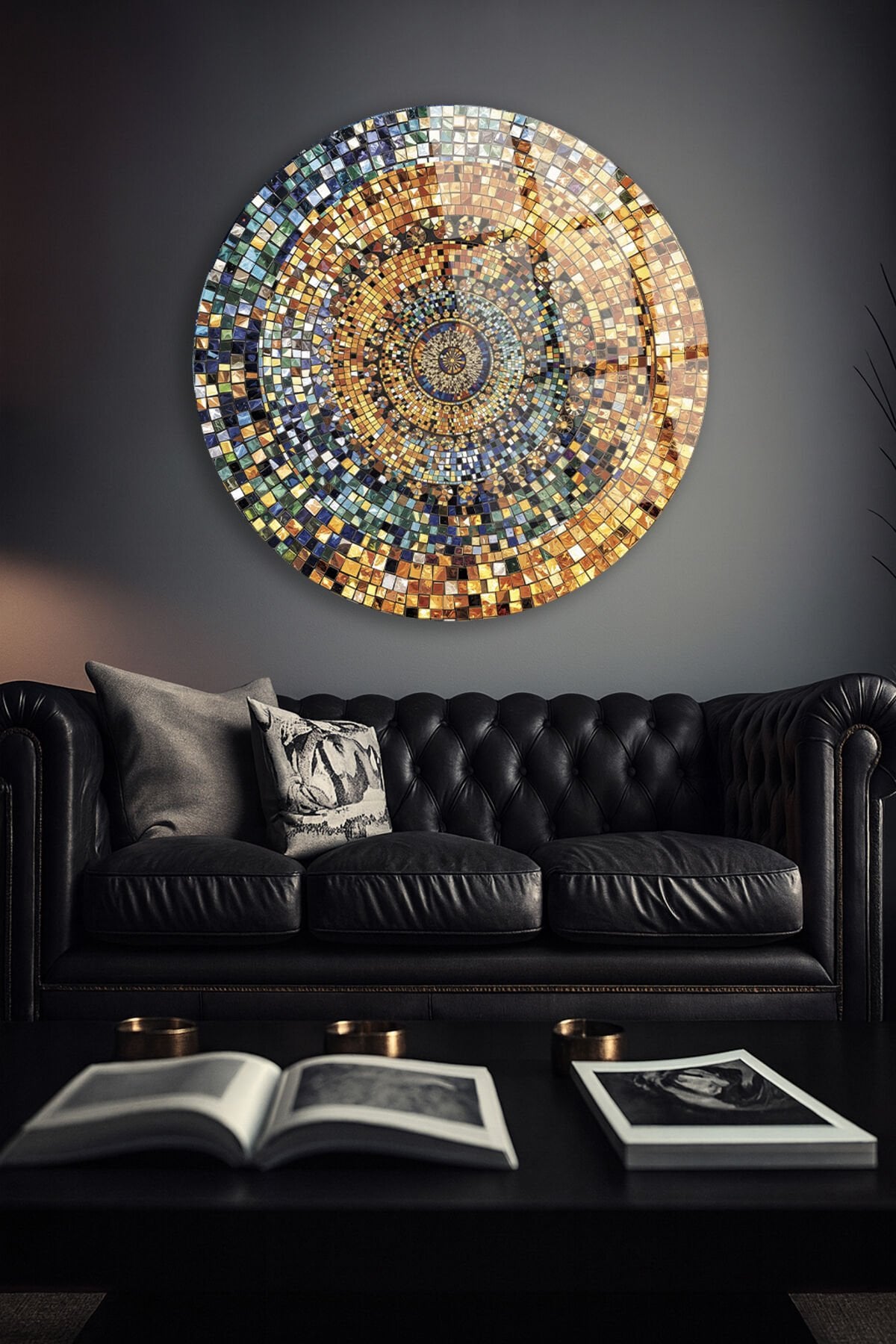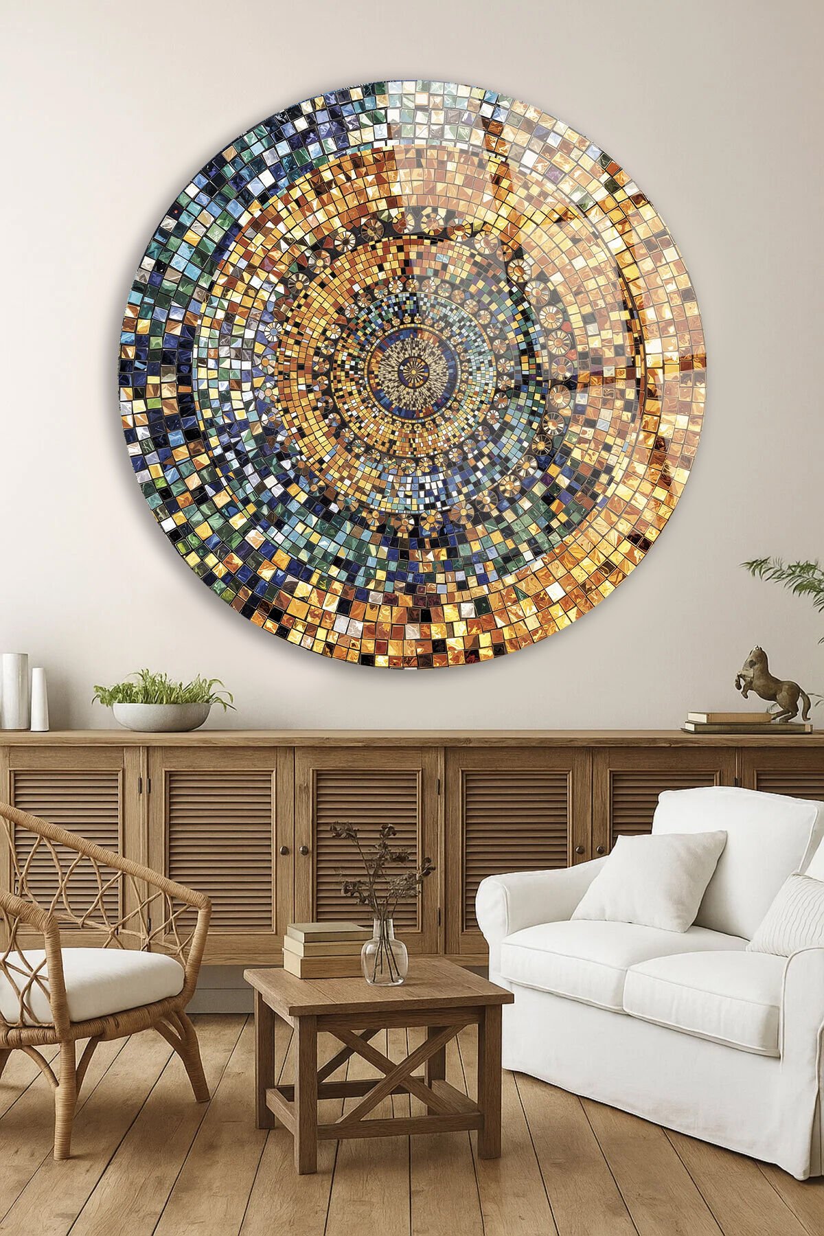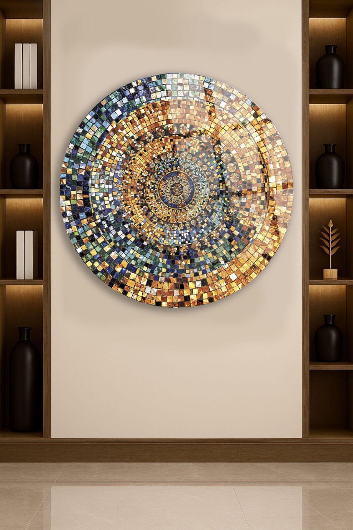 ALTIN MOZAIK MANDALA DAIRE SOYUT TASARIM PARILTILI KIRILMAZ LÜKS CAM TABLO Çok Renkli