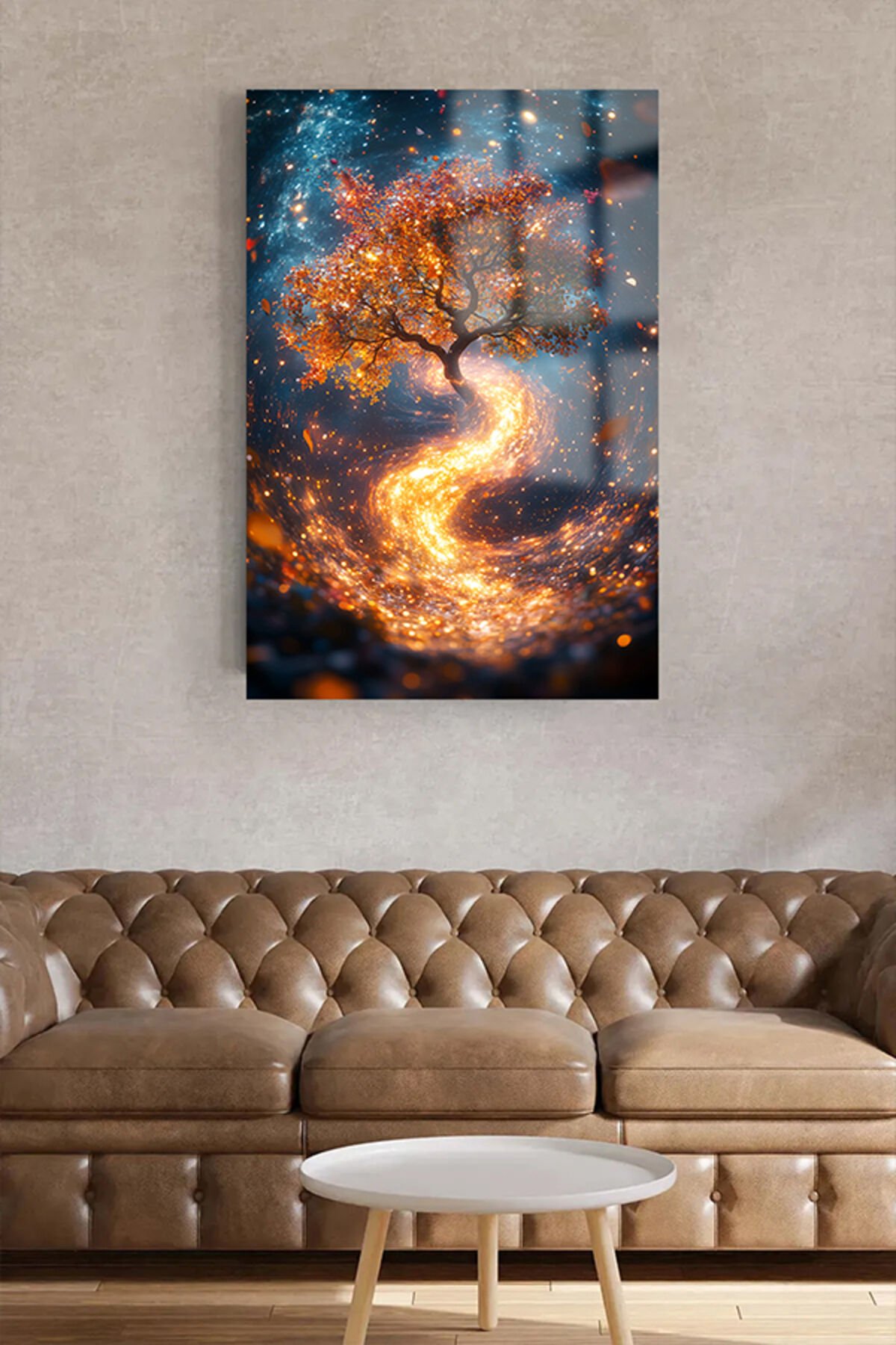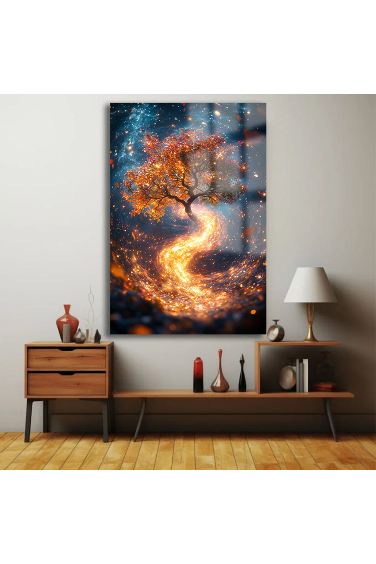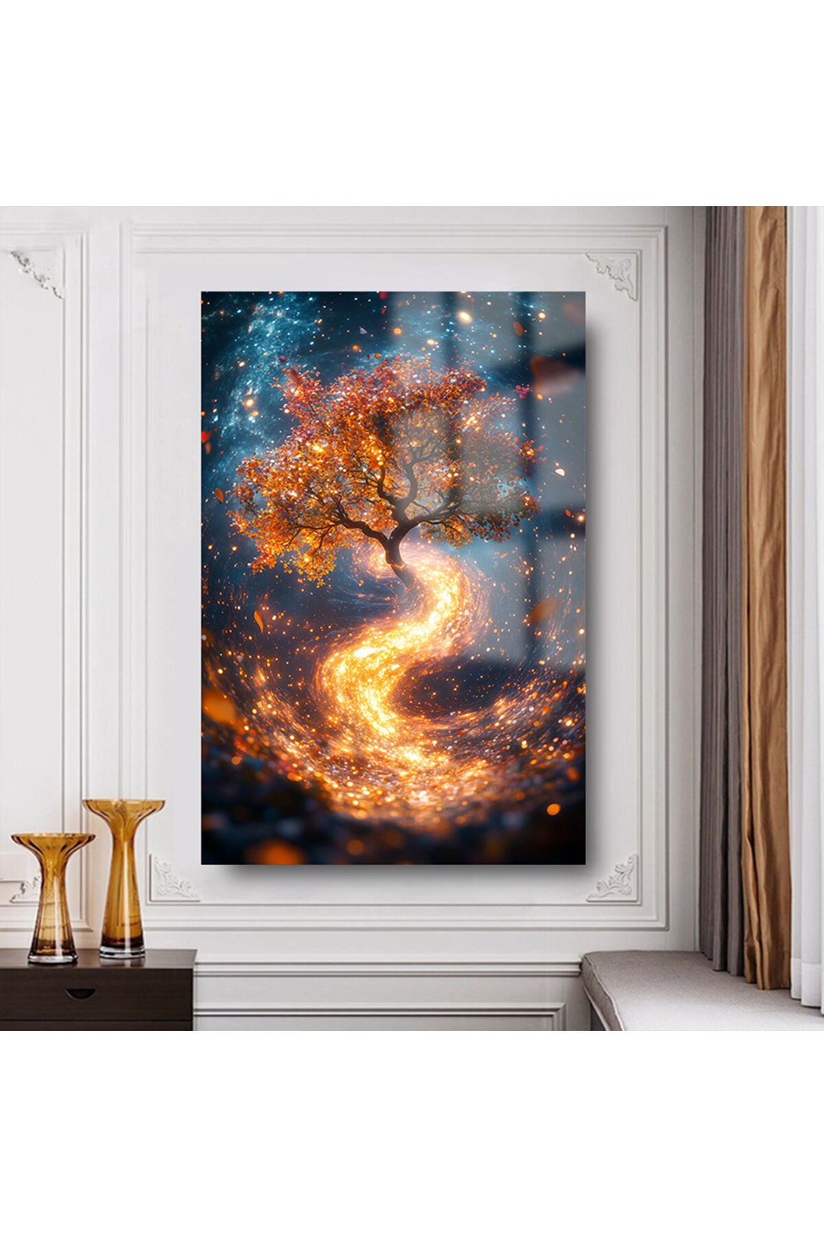 ALTIN SAÇAN IŞILTILI AĞAÇ TASARIMI KIRILMAZ CAM TABLO EV HEDİYESİ İŞ YERİ HEDİYESİ CAM TABLO