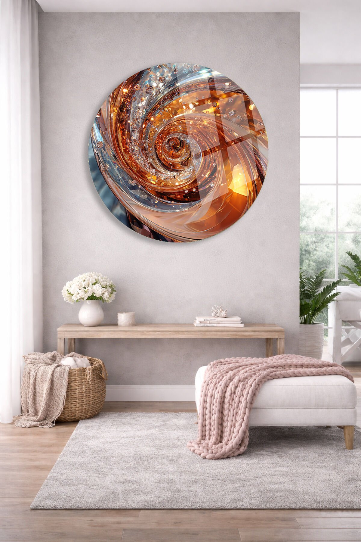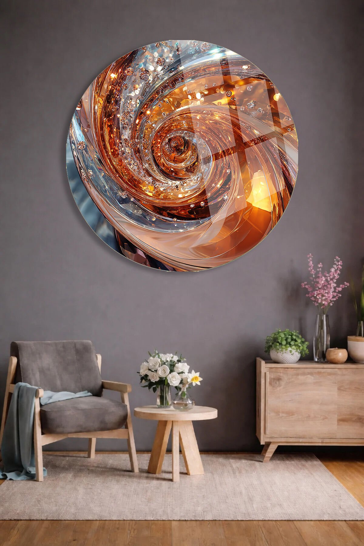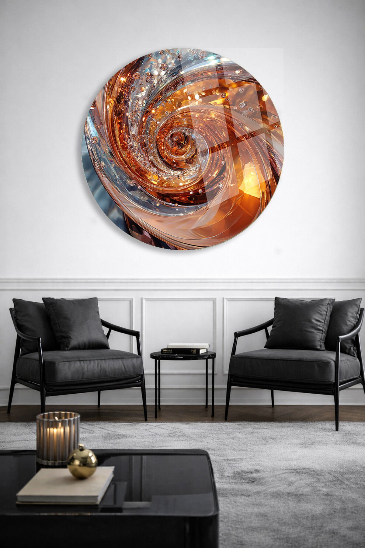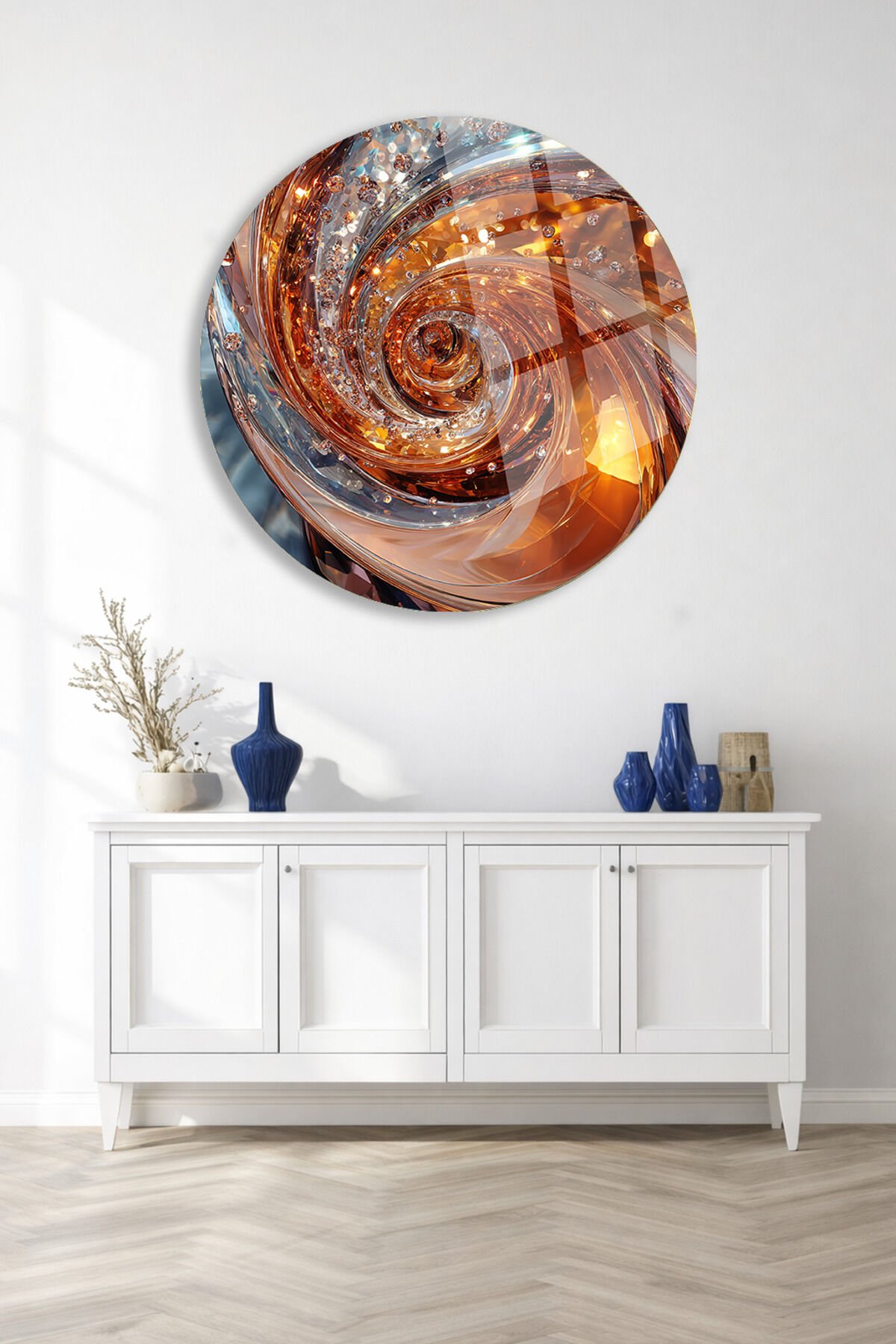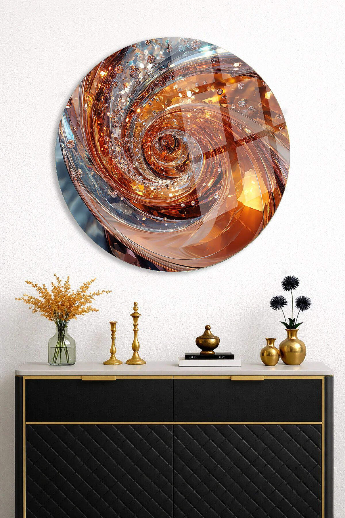 ALTIN VE AMBER TONLARDA SOYUT SPİRAL KIRILMAZ CAM TABLO ULTRA CANLI RENKLER EV OFİS HEDİYESİ Turuncu