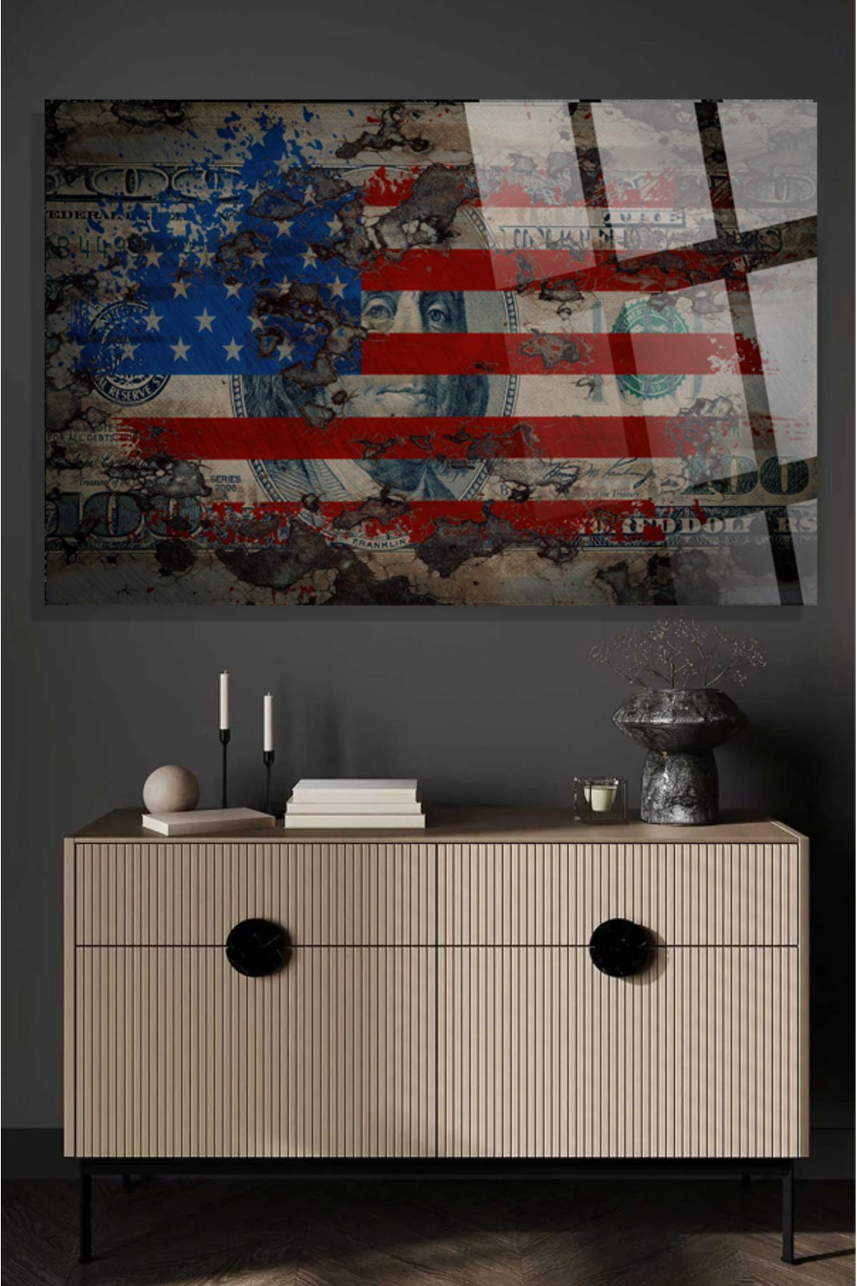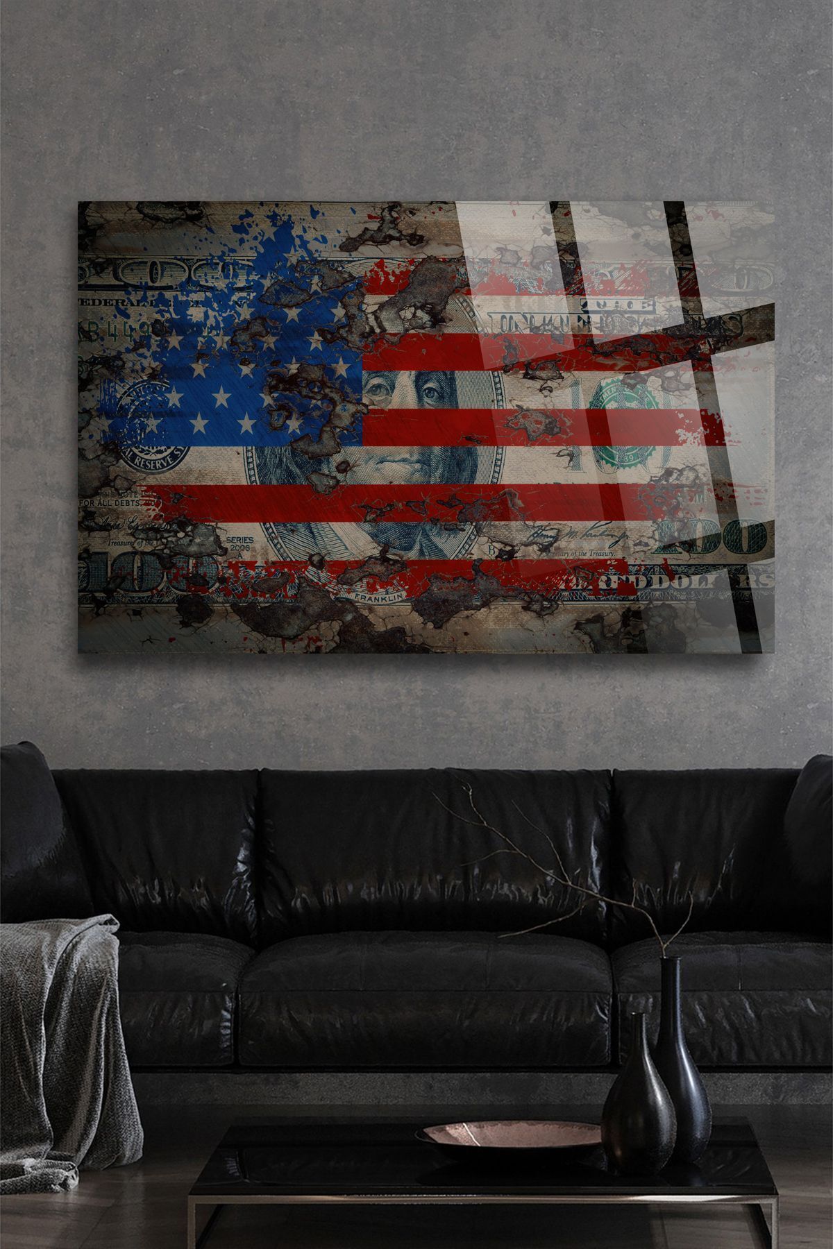 Amerikan Bayrağı Dolar Uv Baskılı Kırılmaz Cam Tablo, Ev Ve Ofis Yüksek Çözünürlüklü 4mm Cam Tablo kırmızı 8