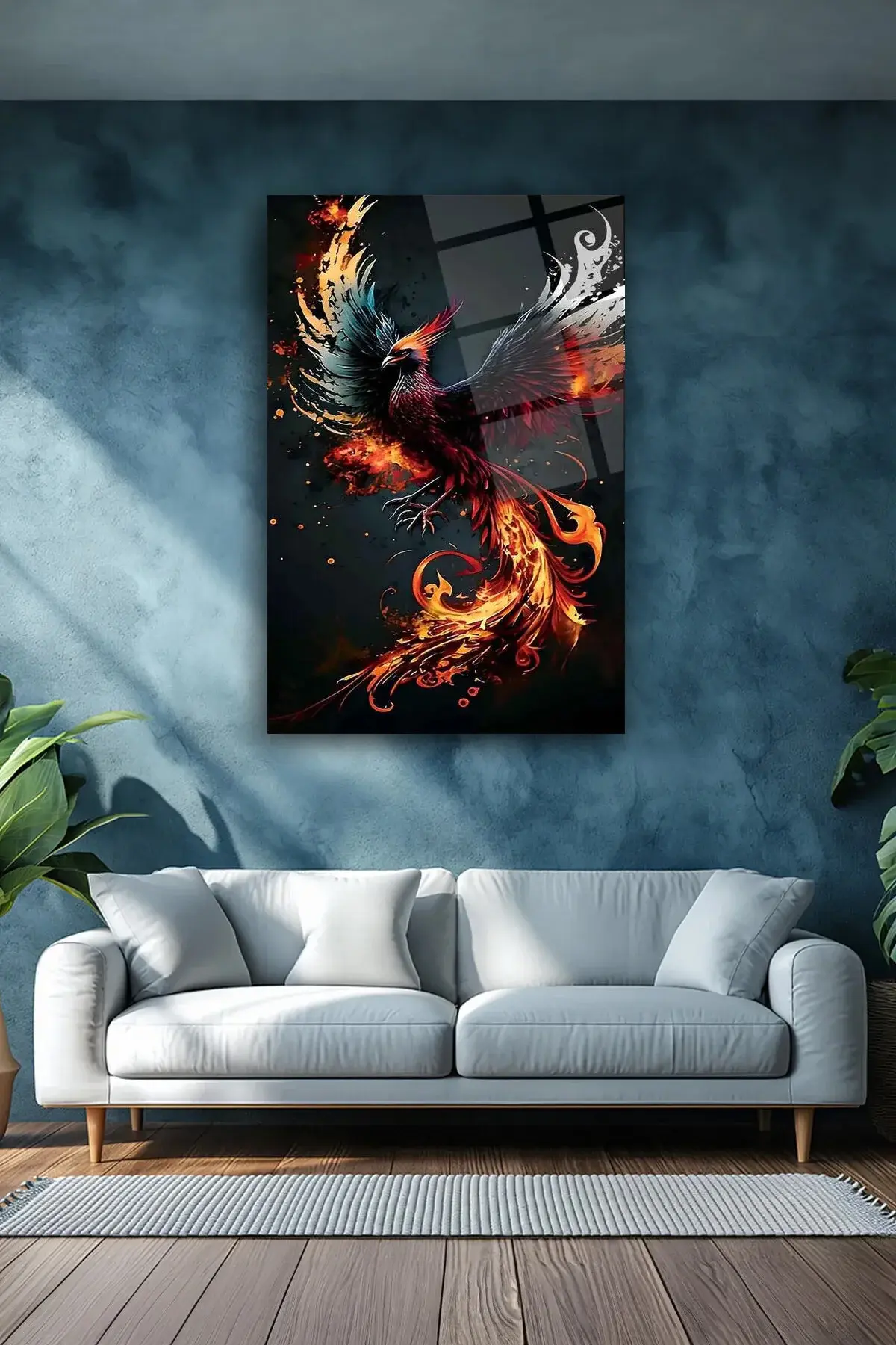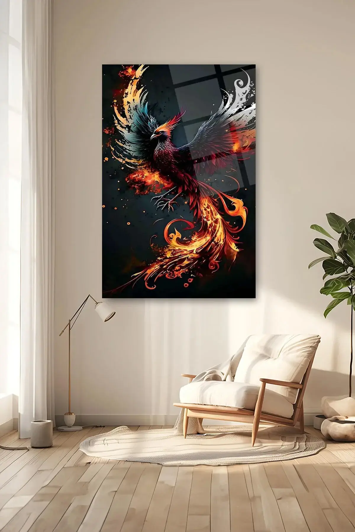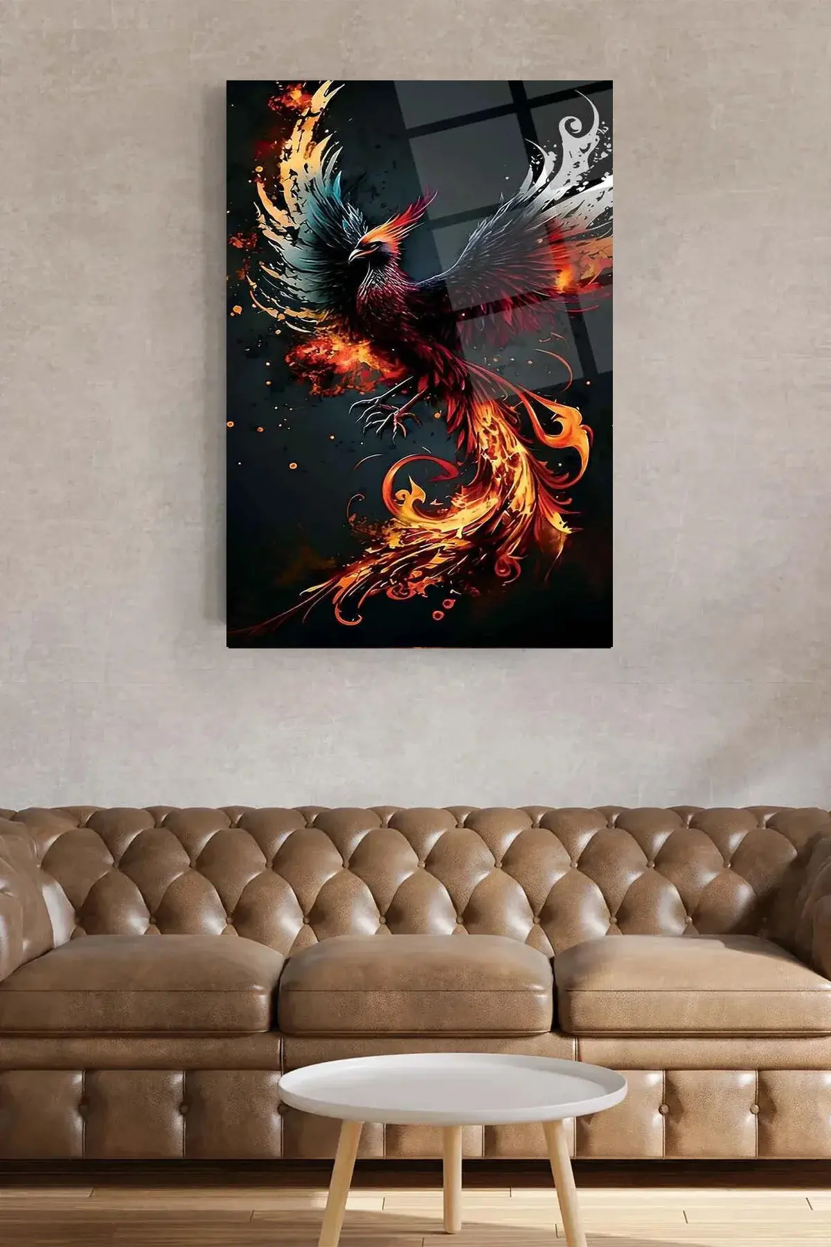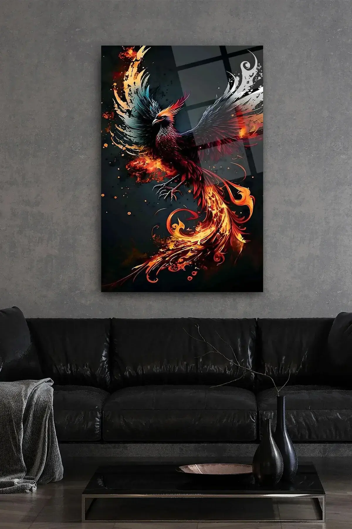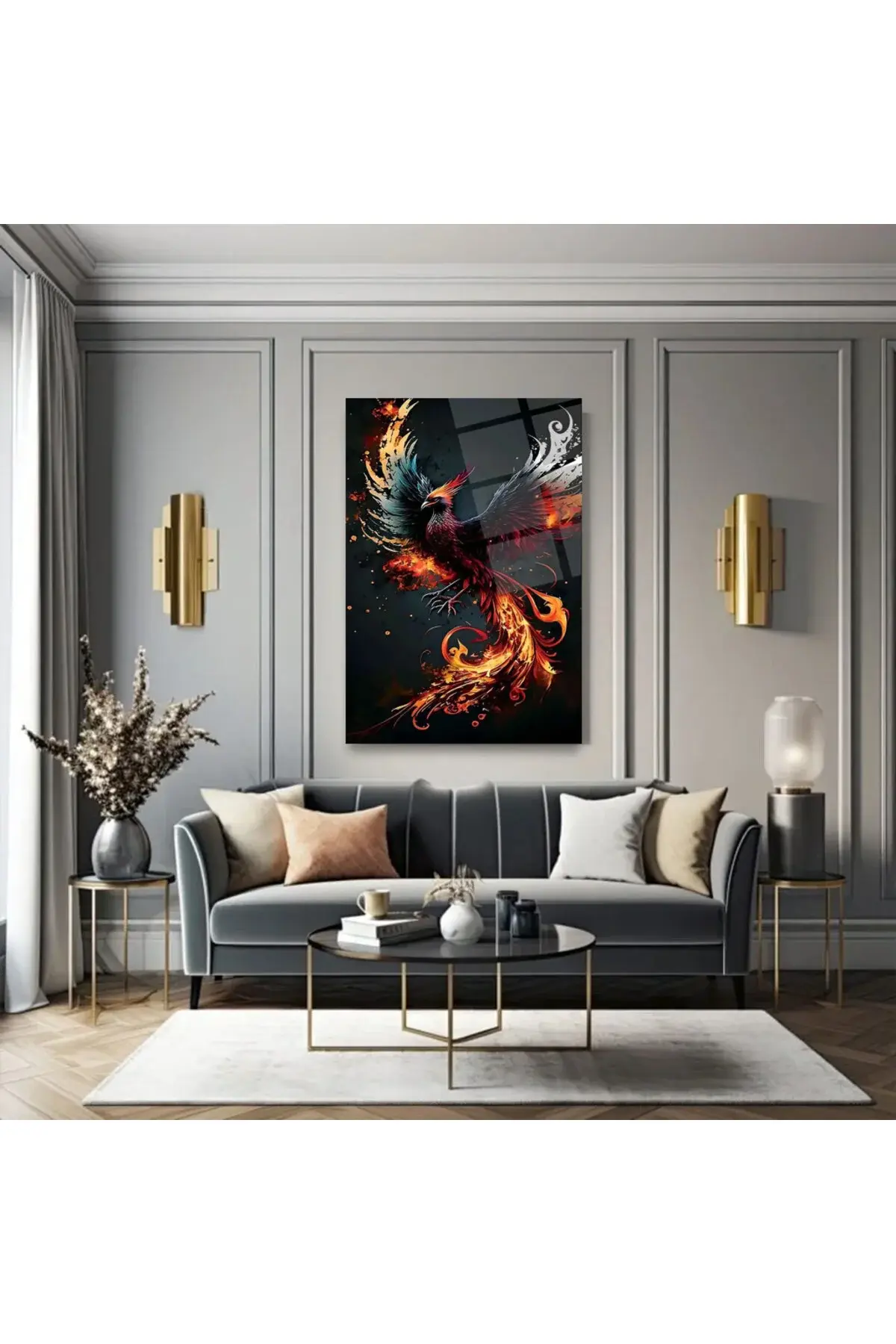 Anka Kuşu KIRILMAZ LÜKS CAM TABLO ULTRA YÜKSEK ÇÖZÜNÜRLÜKLÜ EV HEDİYESİ YENİ NESİL TABLO Kırmızı
