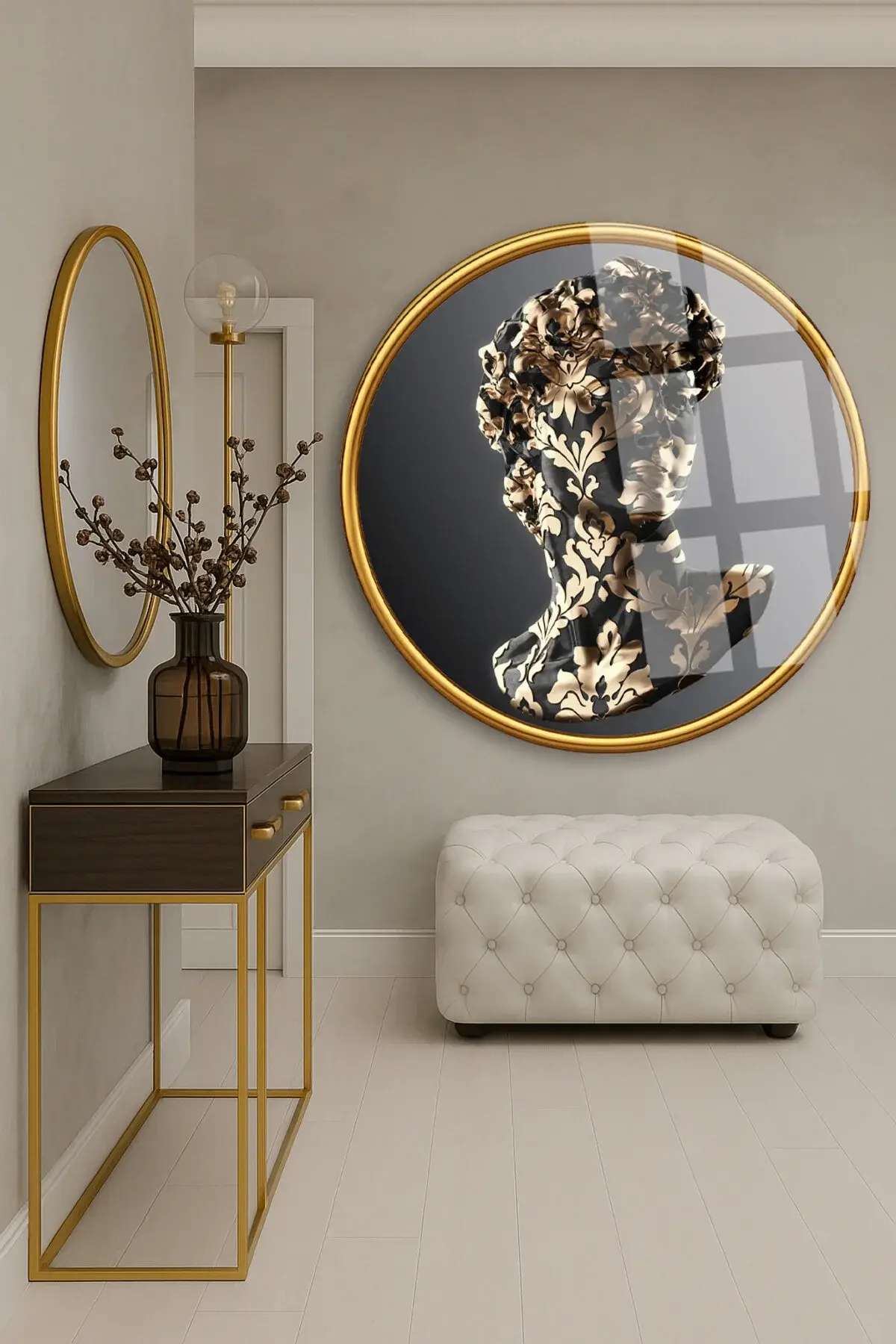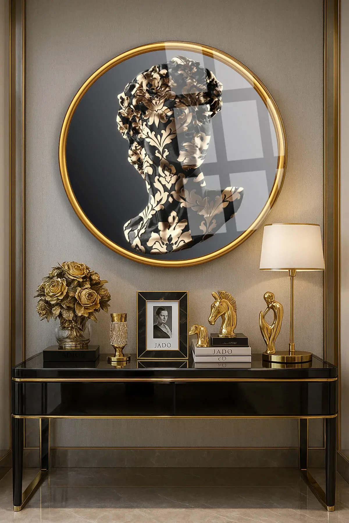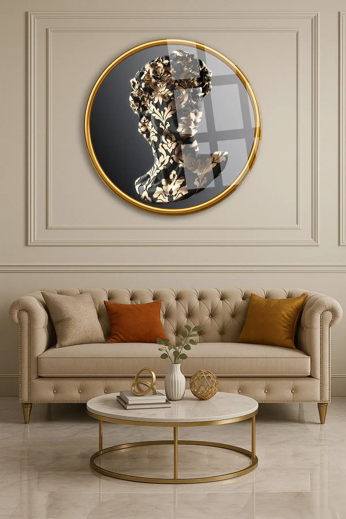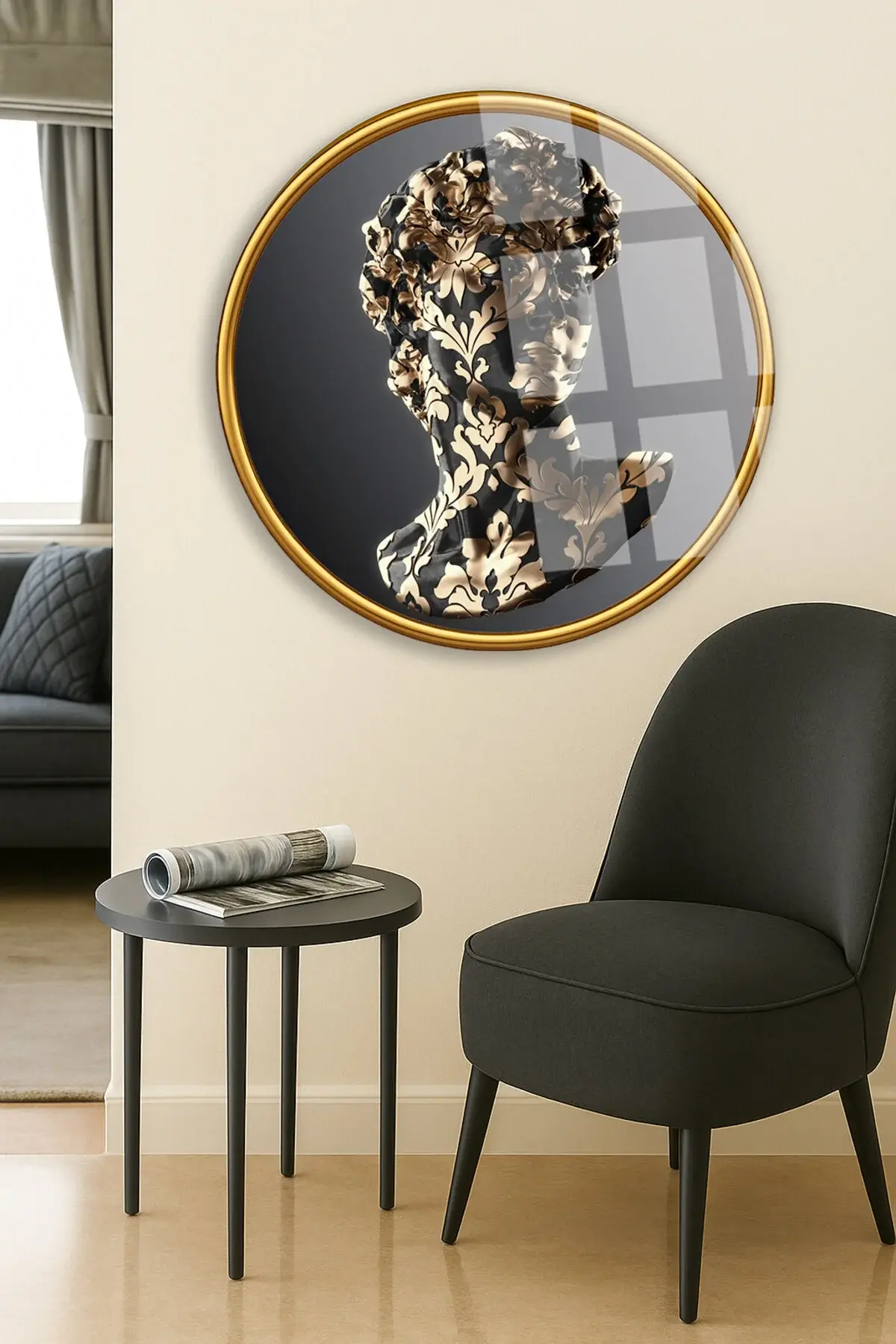ANTİK HEYKEL MODERN TASARIM YUVARLAK KIRILMAZ MODERN CAM TABLO EV HEDİYESİ LÜKS ODA TABLOSU Siyah