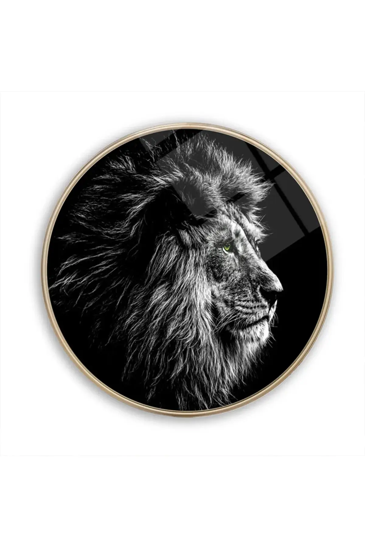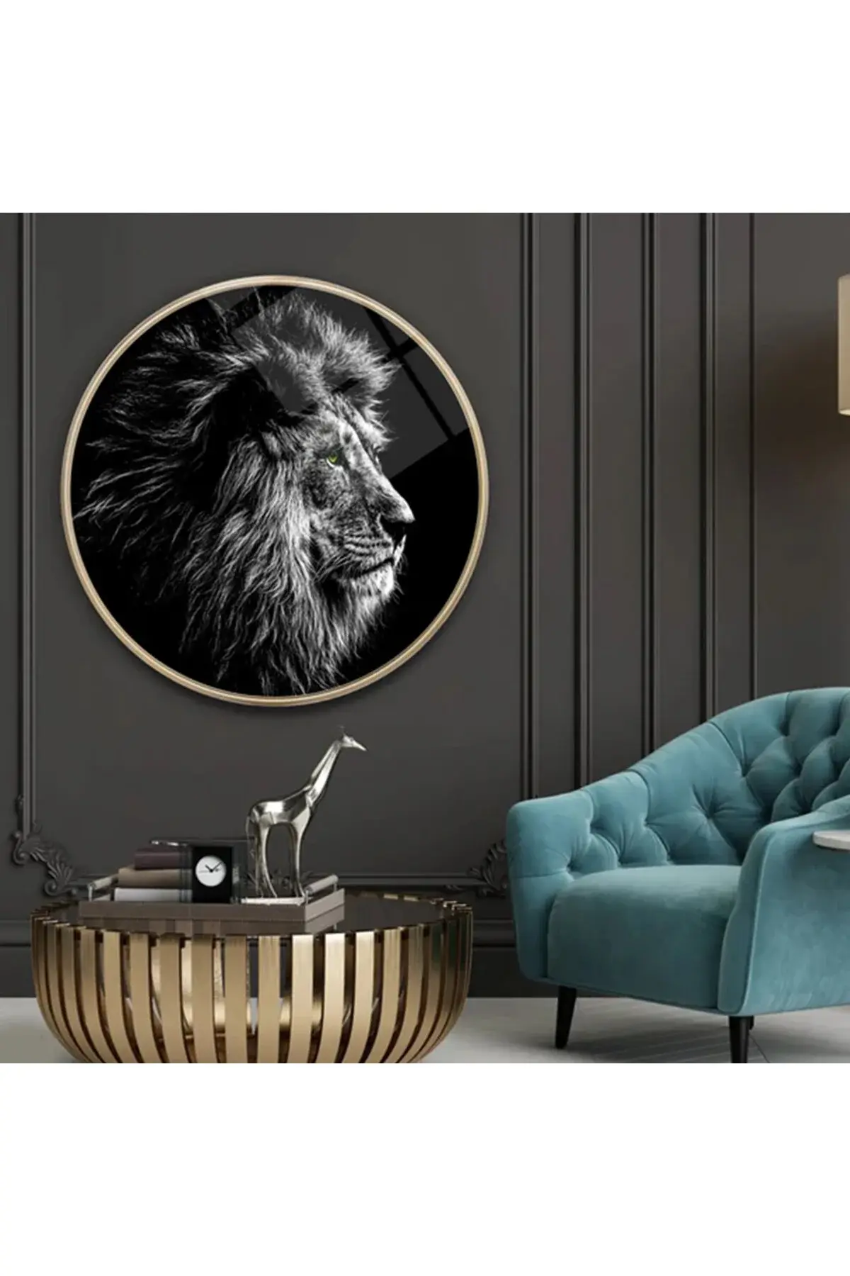 ASİL ASLAN GÖRKEMLİ MODERN KIRILMAZ LÜKS YUVARLAK CAM TABLO MODERN HEDİYE TABLO Siyah