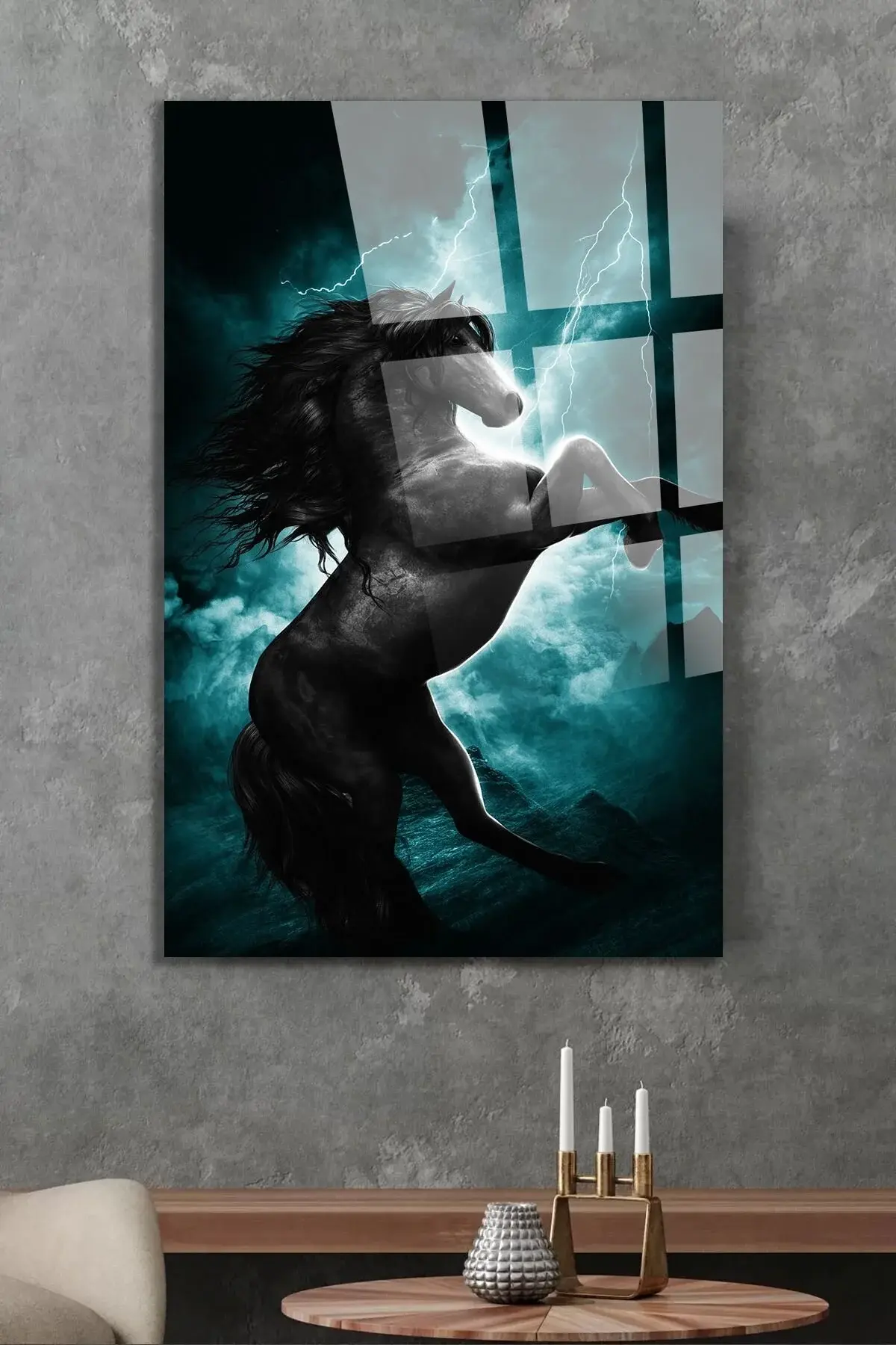 Asil At Şimşek Kırılmaz Cam Tablo, Ev Ve Ofis Hediyesi Yüksek Çözünürlüklü 4mm Cam Tablo